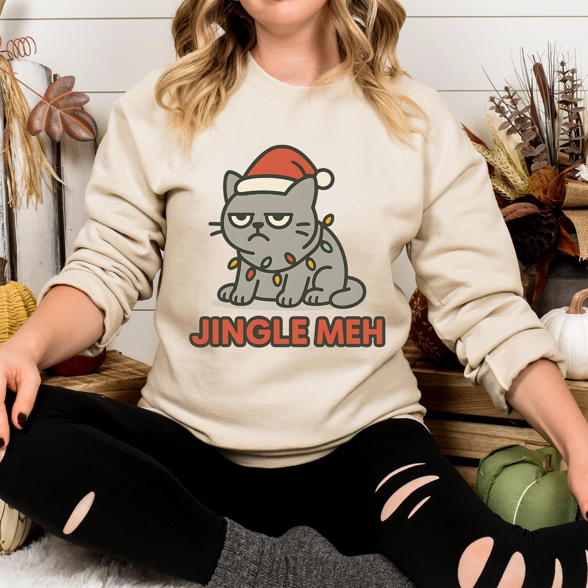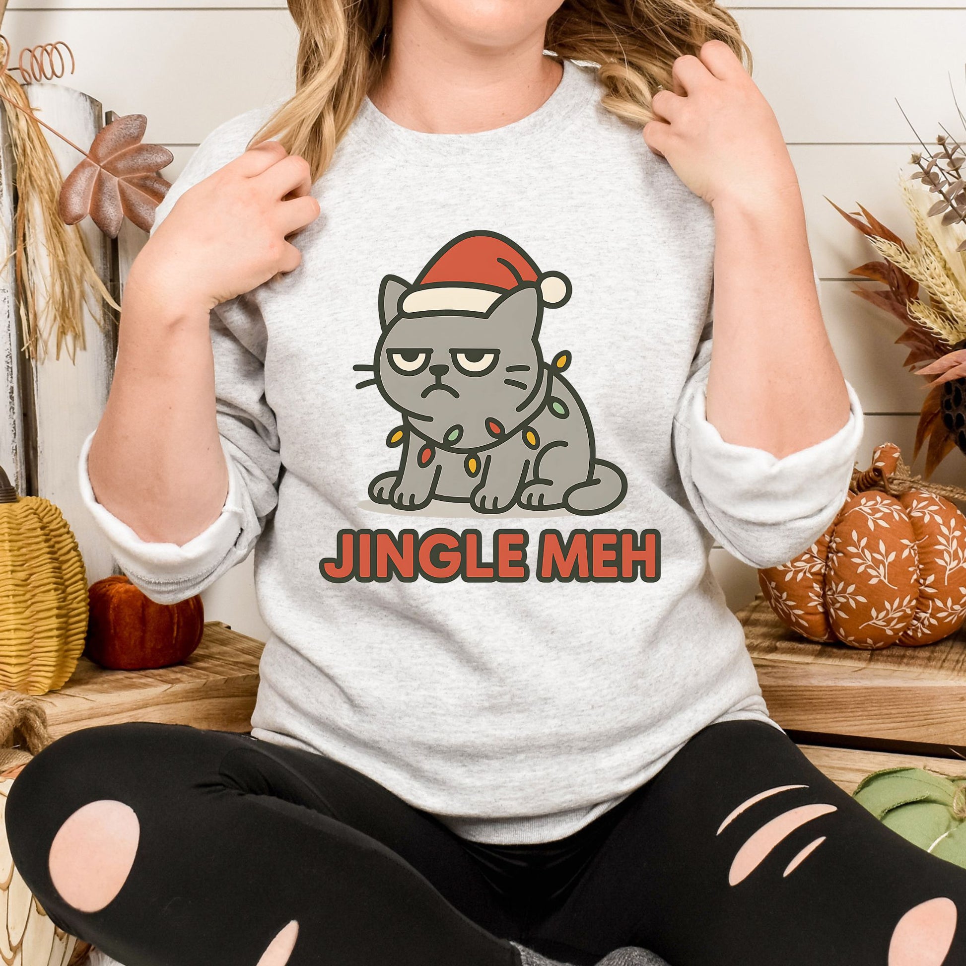 Jingle Meh Grumpy Cat Christmas Sweatshirt – Funny Holiday Crew Neck Pullover