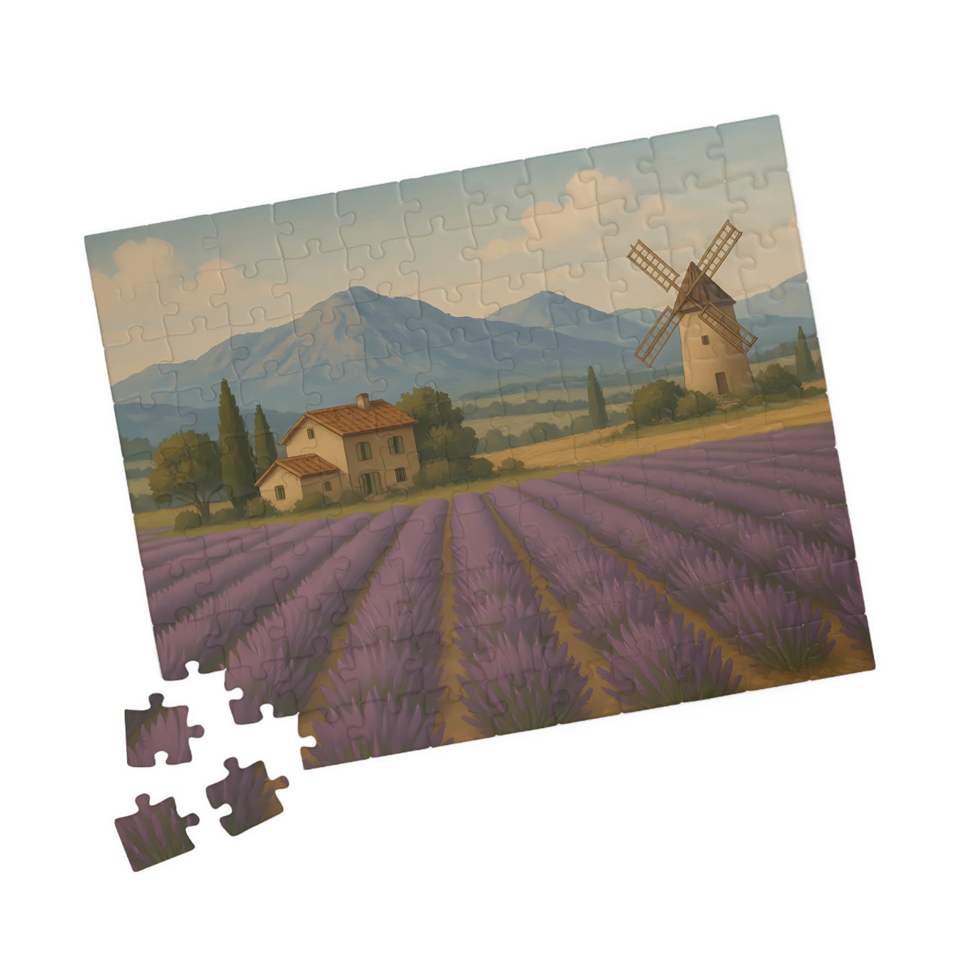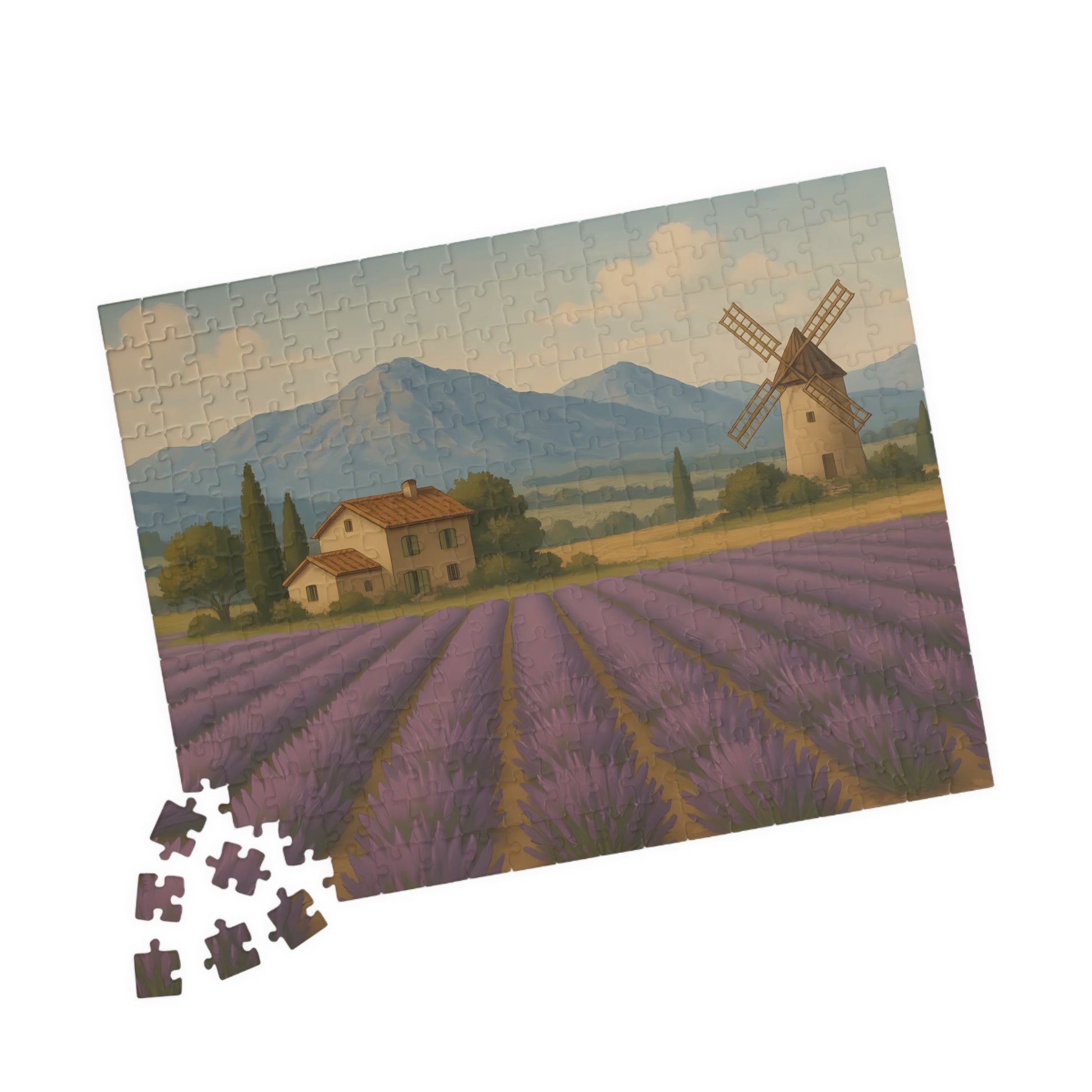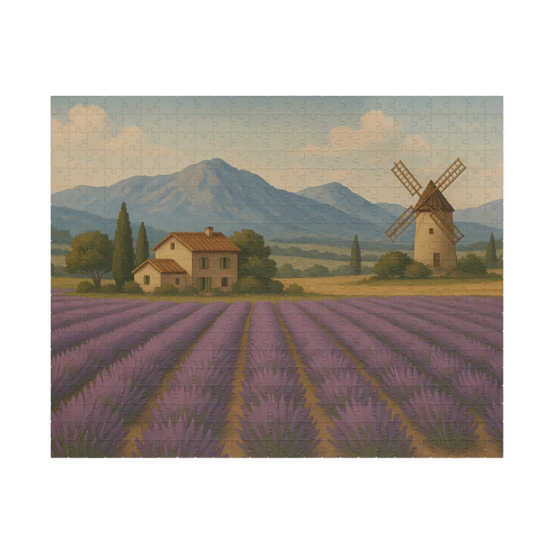 Lavender Fields & Windmill Jigsaw Puzzle – Countryside Farmhouse Scene.