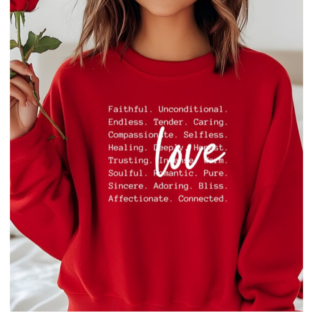 Wrap yourself in comfort and charm with the Love Words Graphic Crewneck Sweatshirt.