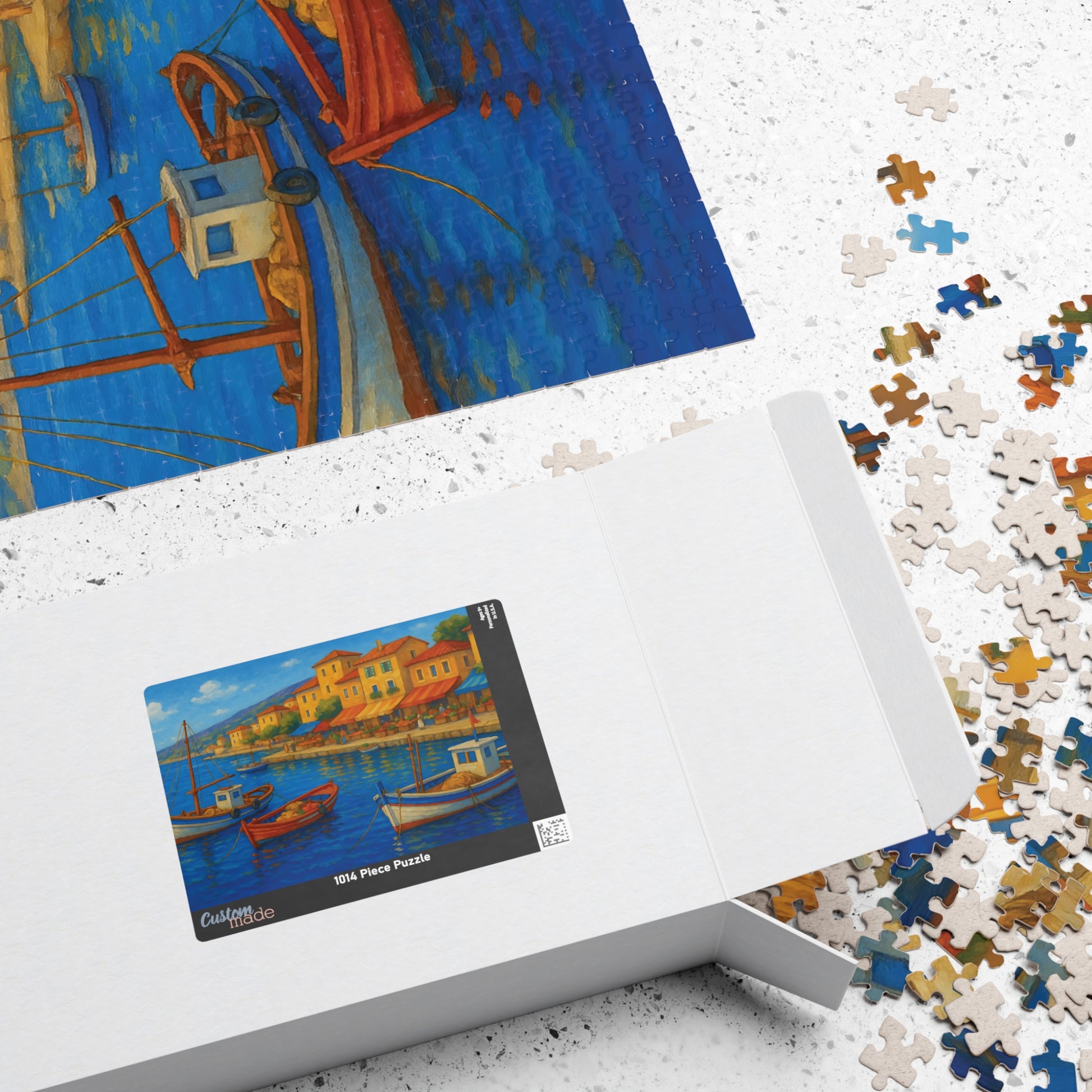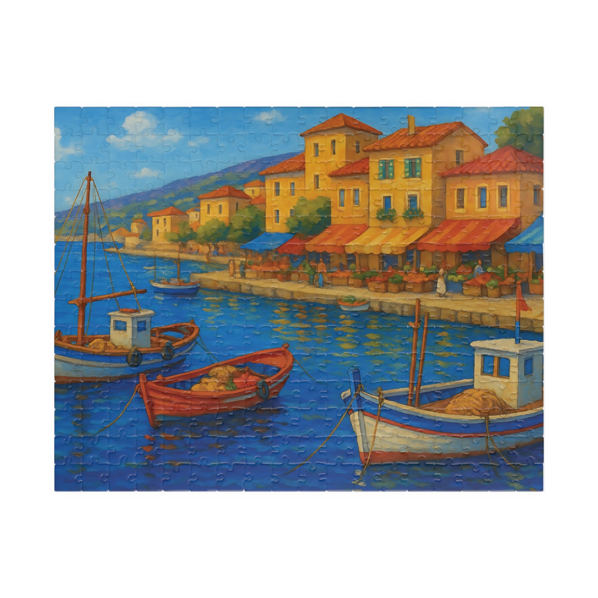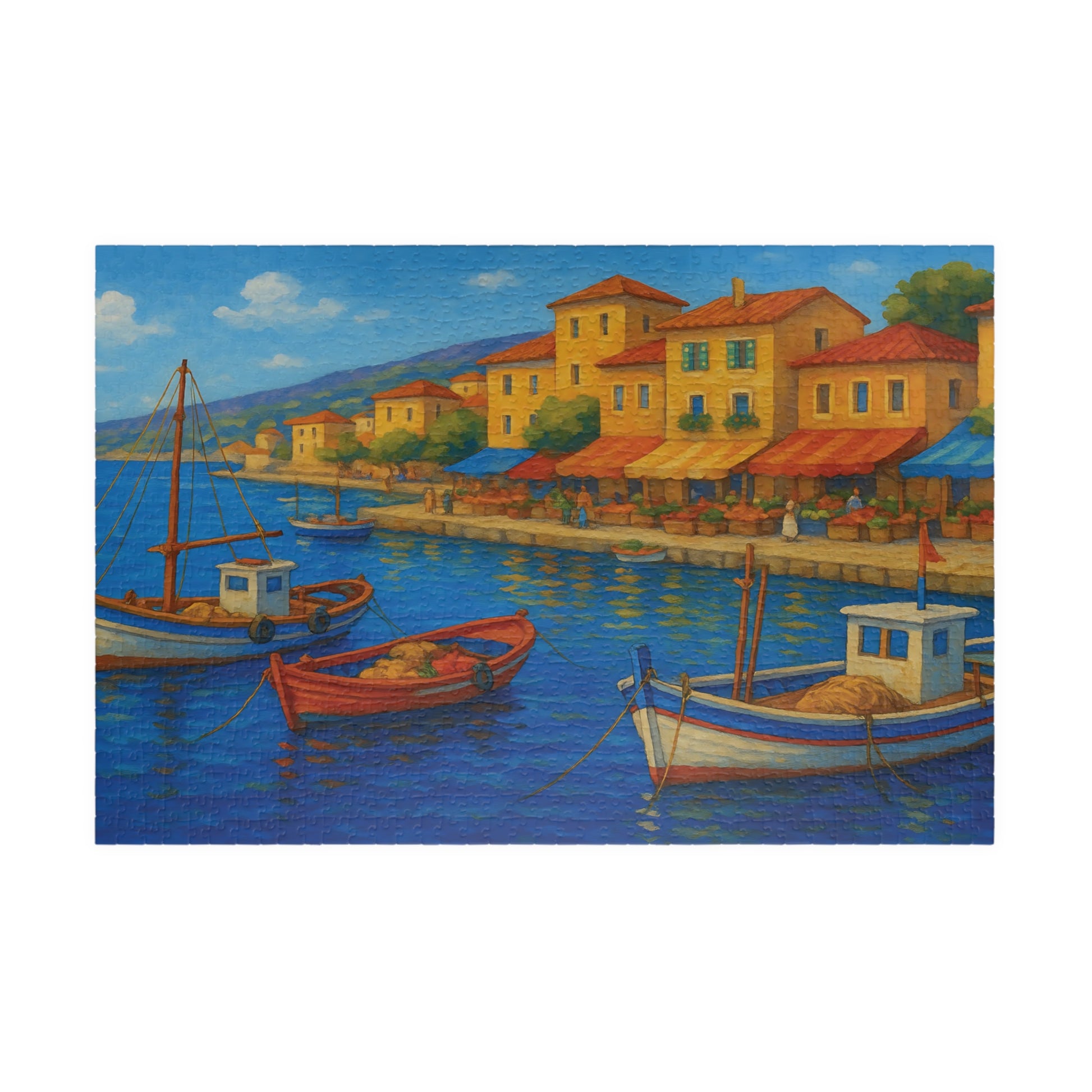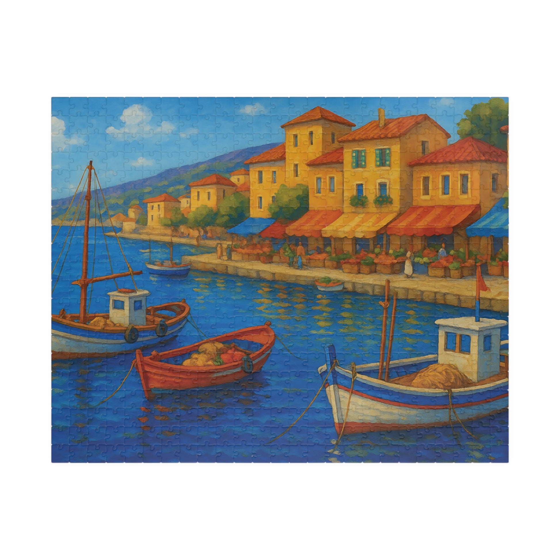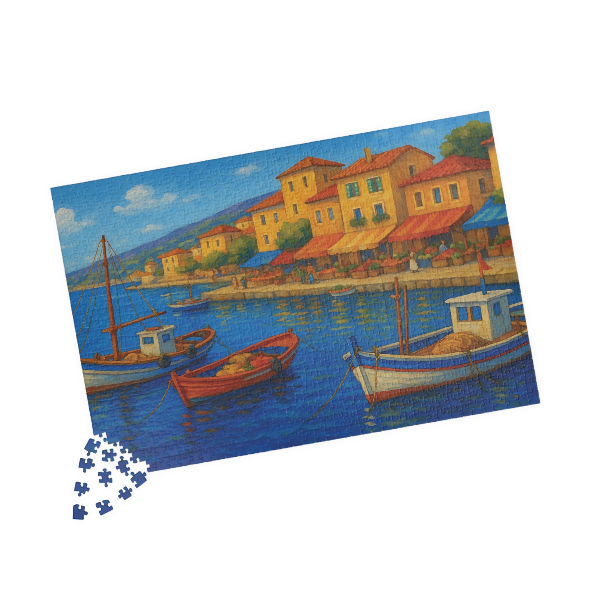 Mediterranean Harbor Jigsaw Puzzle – Colorful Coastal Village with Fishing Boats
