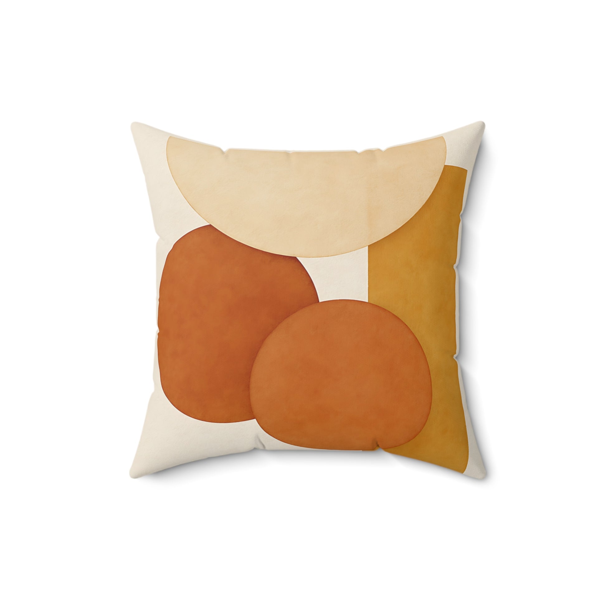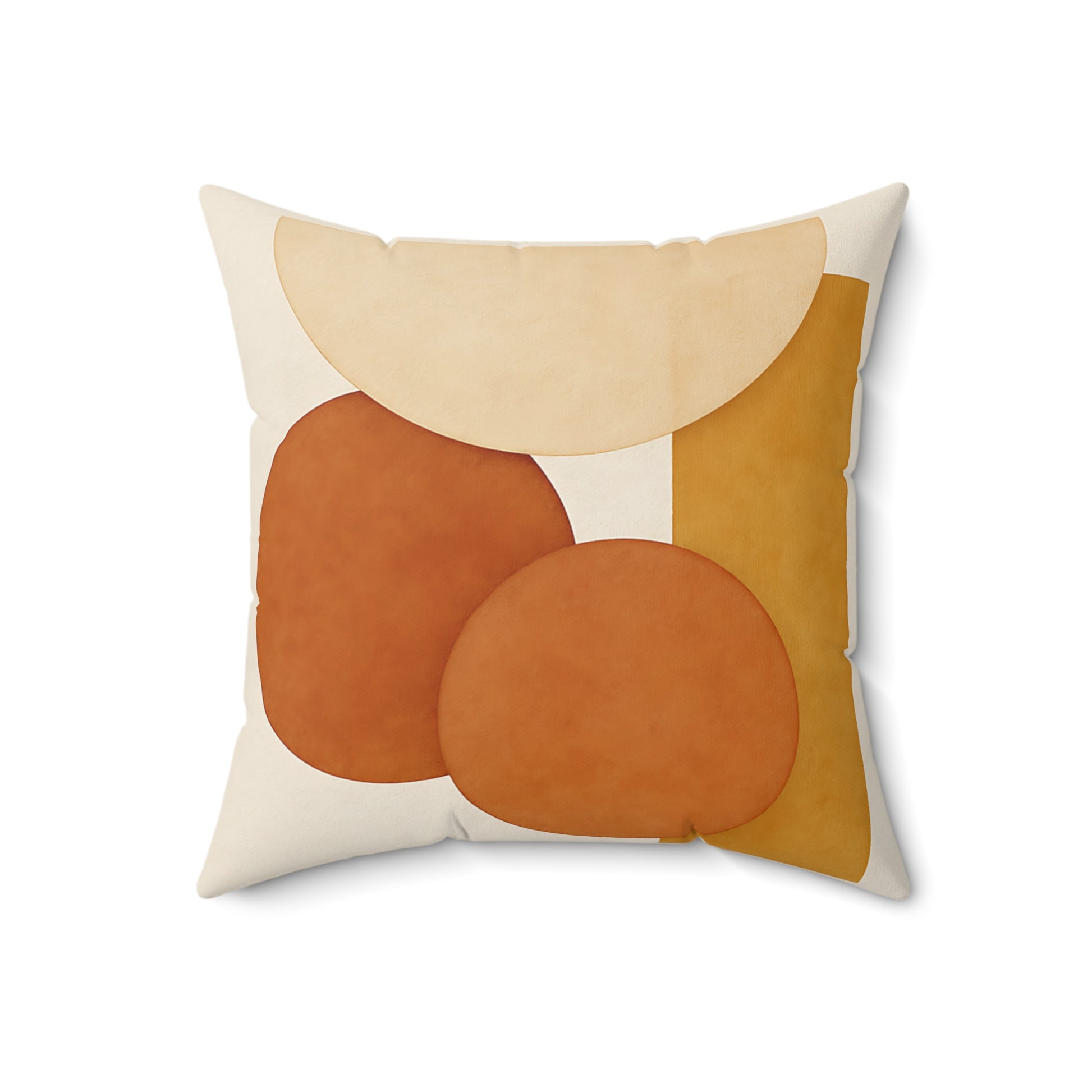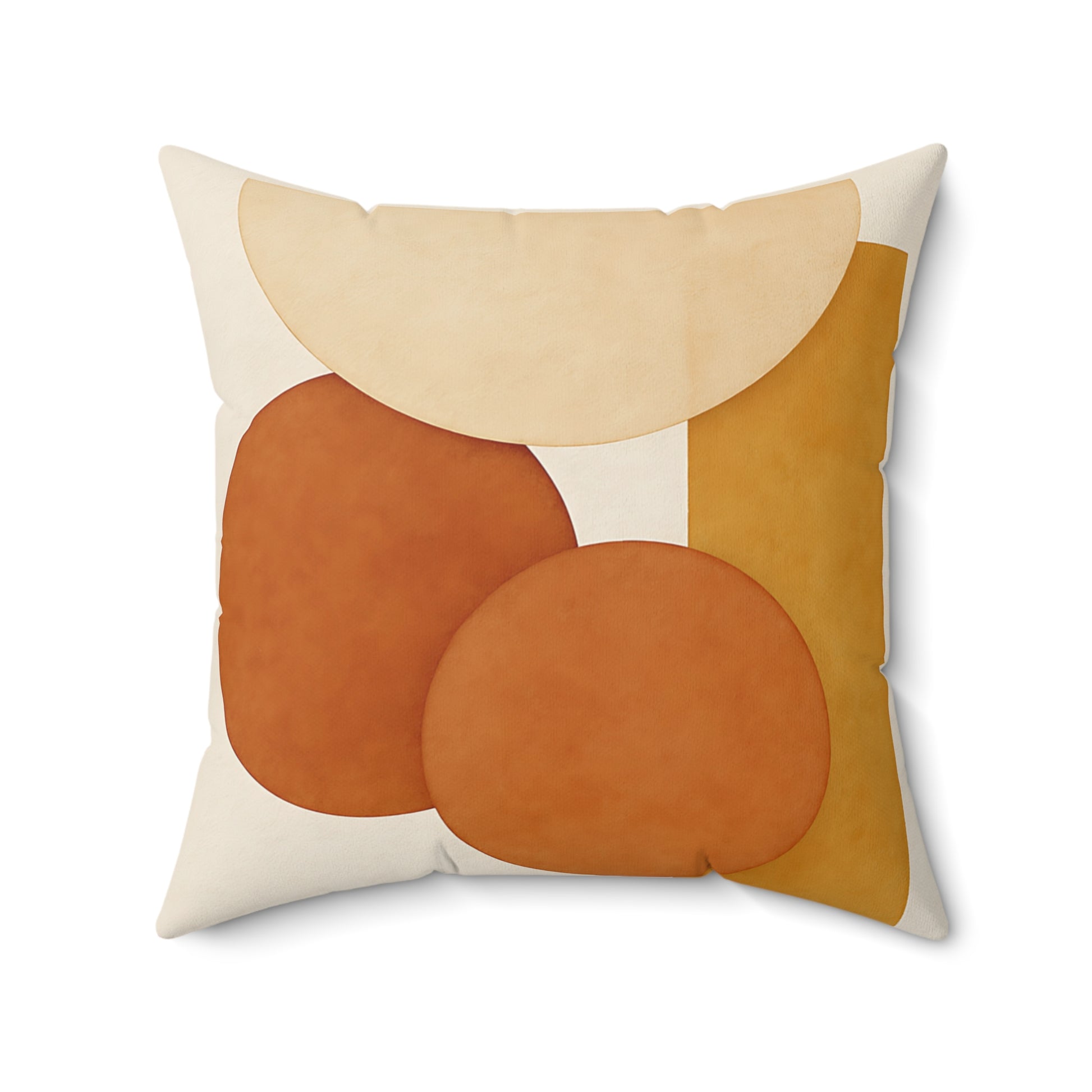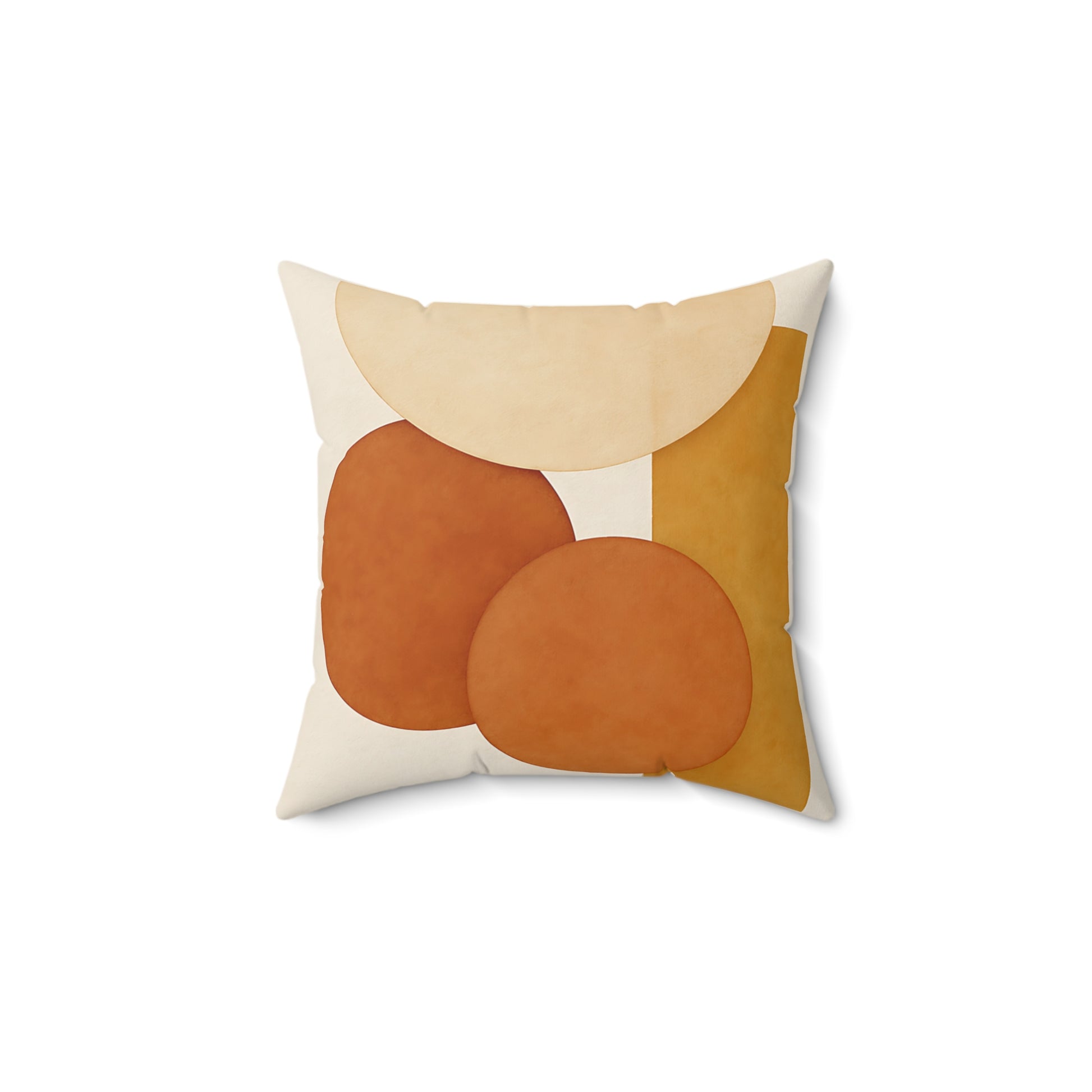 Featuring a striking design of overlapping organic shapes in warm earthy hues like terracotta, ochre, and cream, this pillow brings a clean yet cozy aesthetic to any room, from contemporary living spaces to boho-inspired bedrooms.