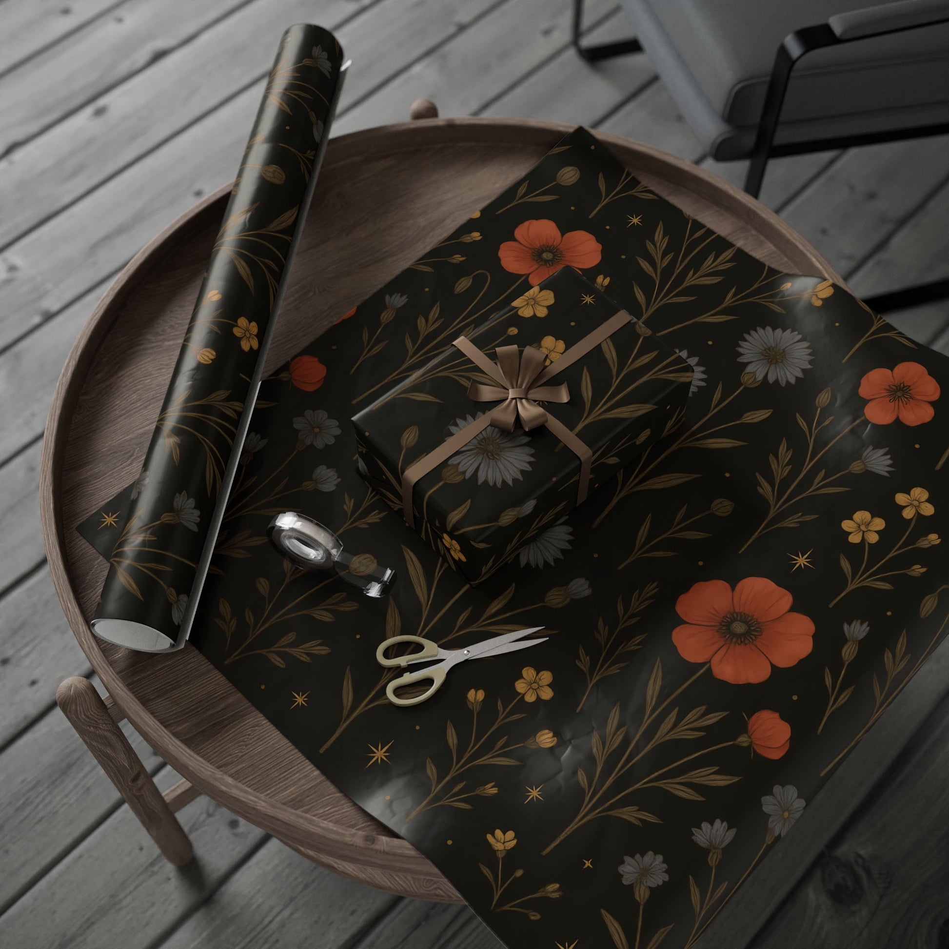 The dramatic contrast and vintage botanical aesthetic make this wrap perfect for fall celebrations, birthdays, weddings, and stylish holiday gifting.