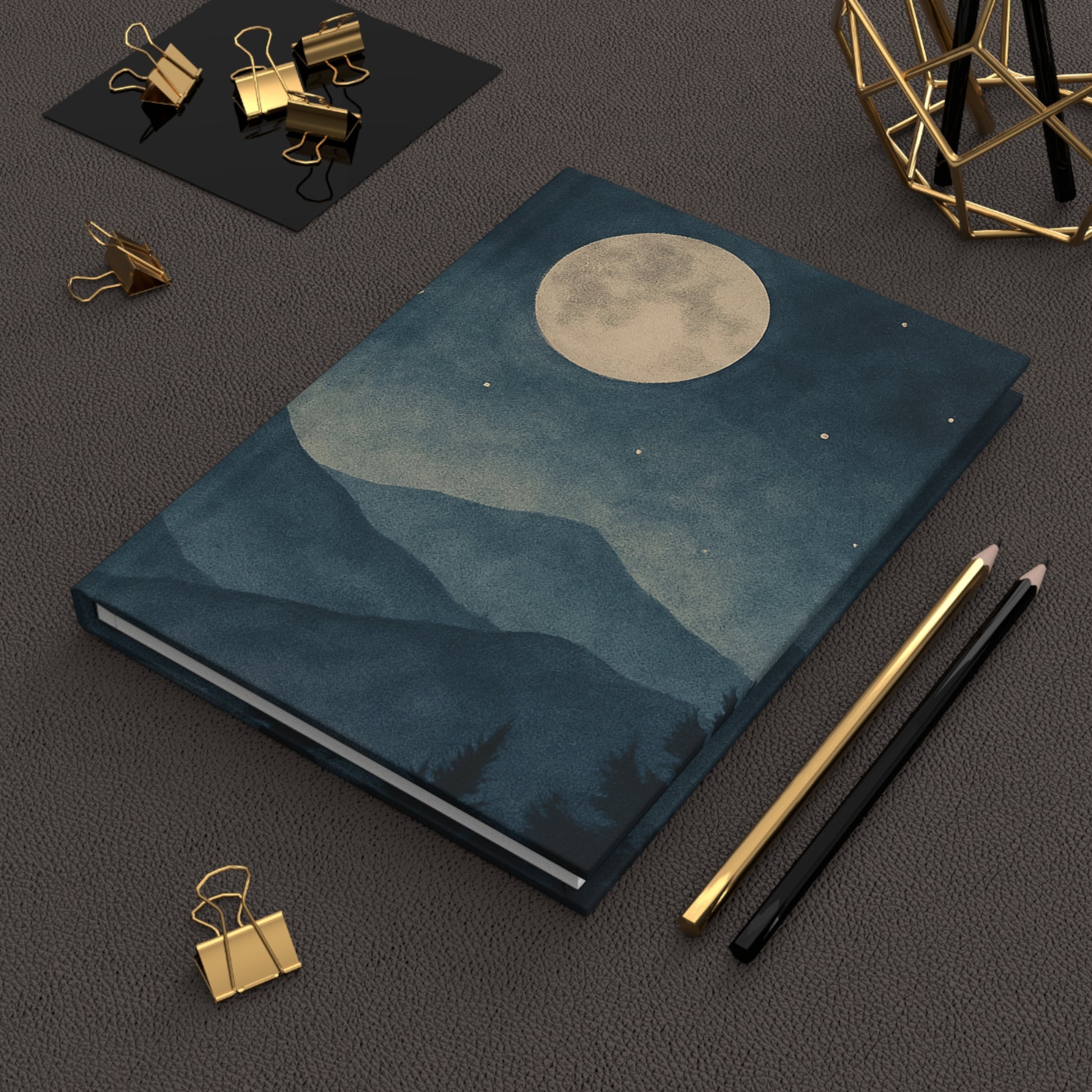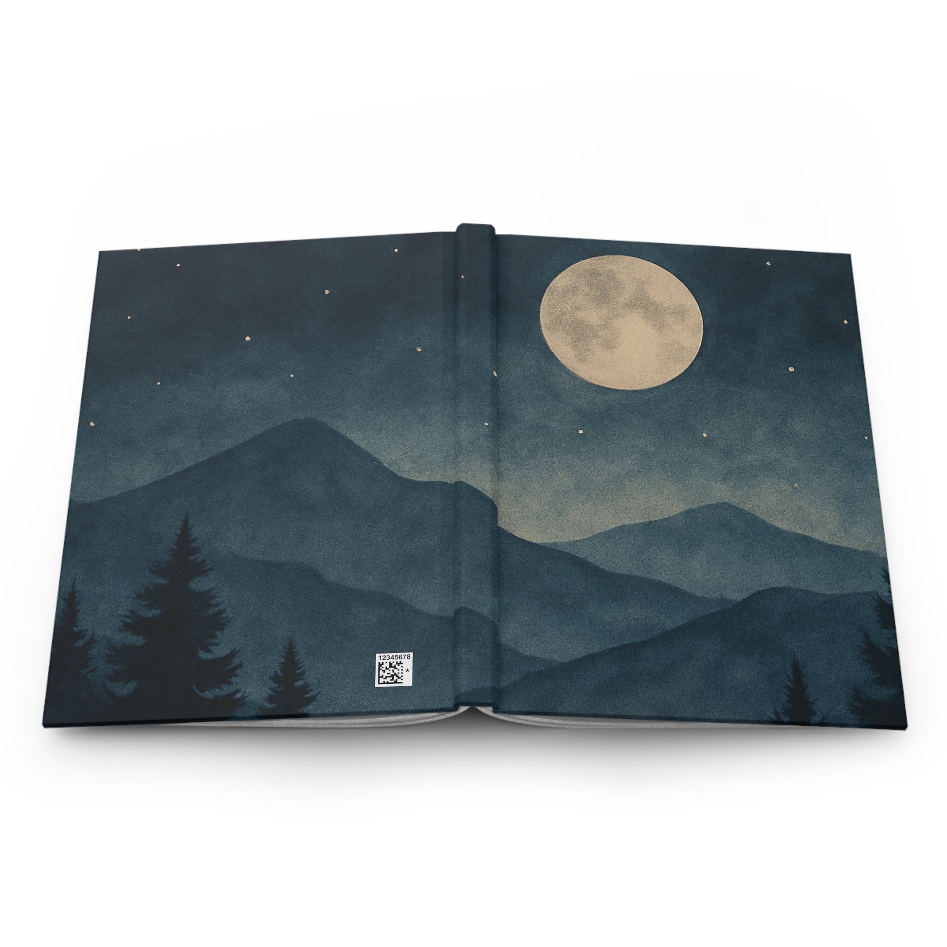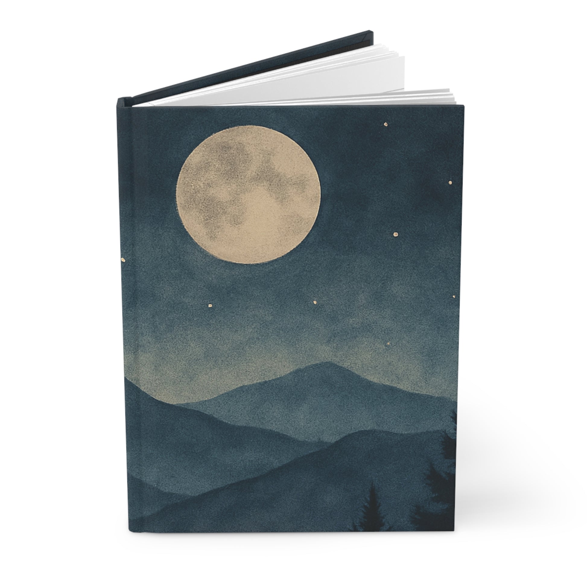 Capture your thoughts under a moonlit sky with our Moonlit Mountains Hardcover Journal.
