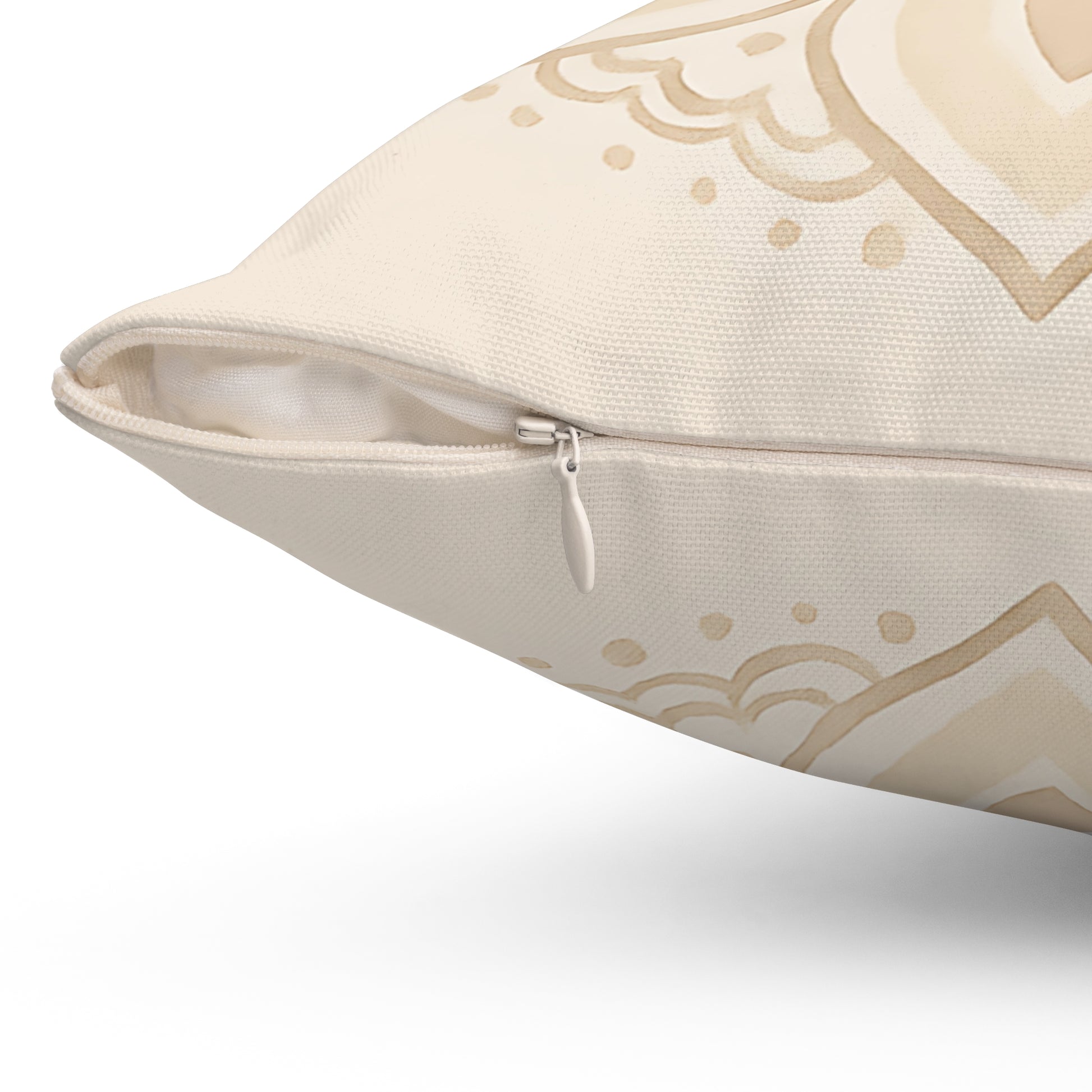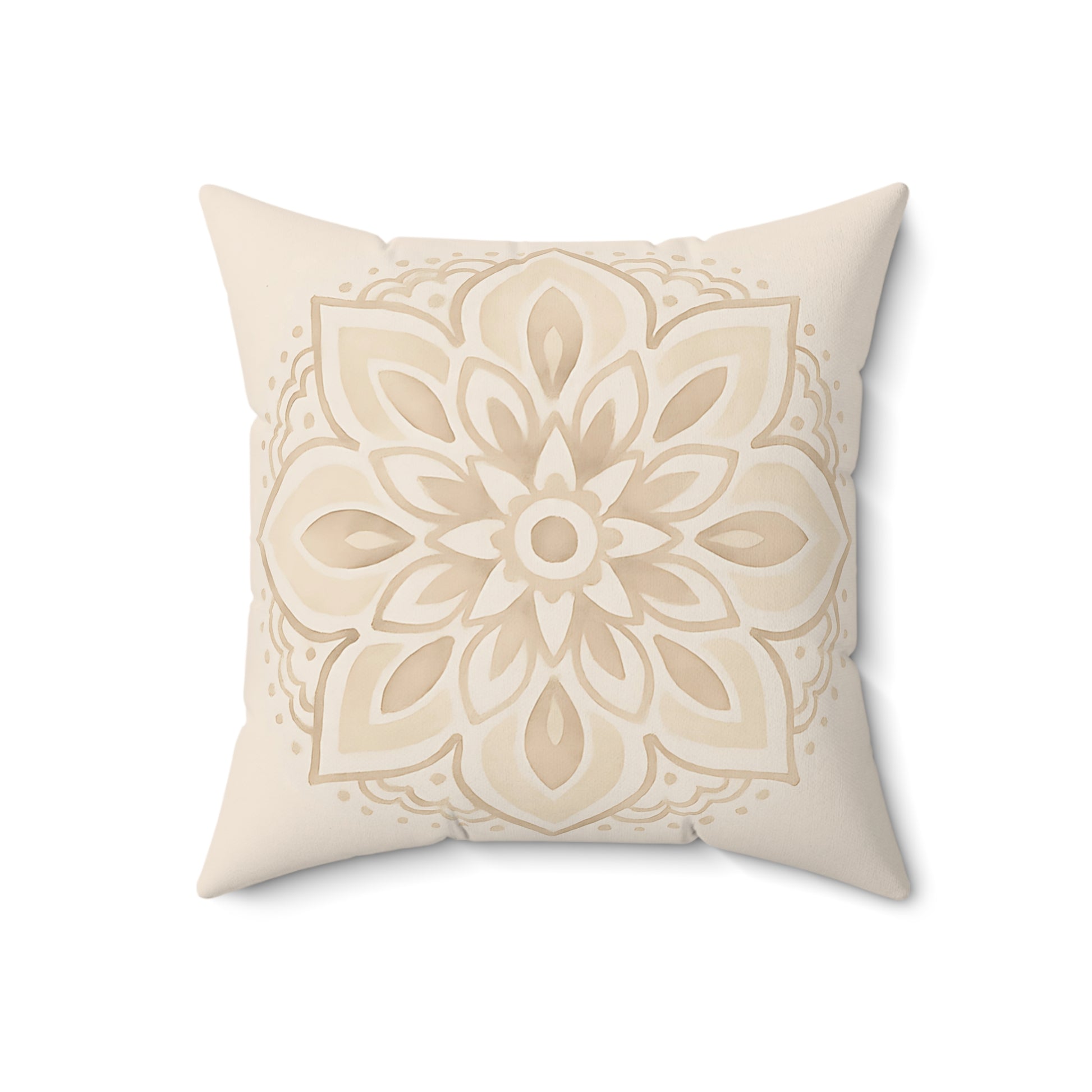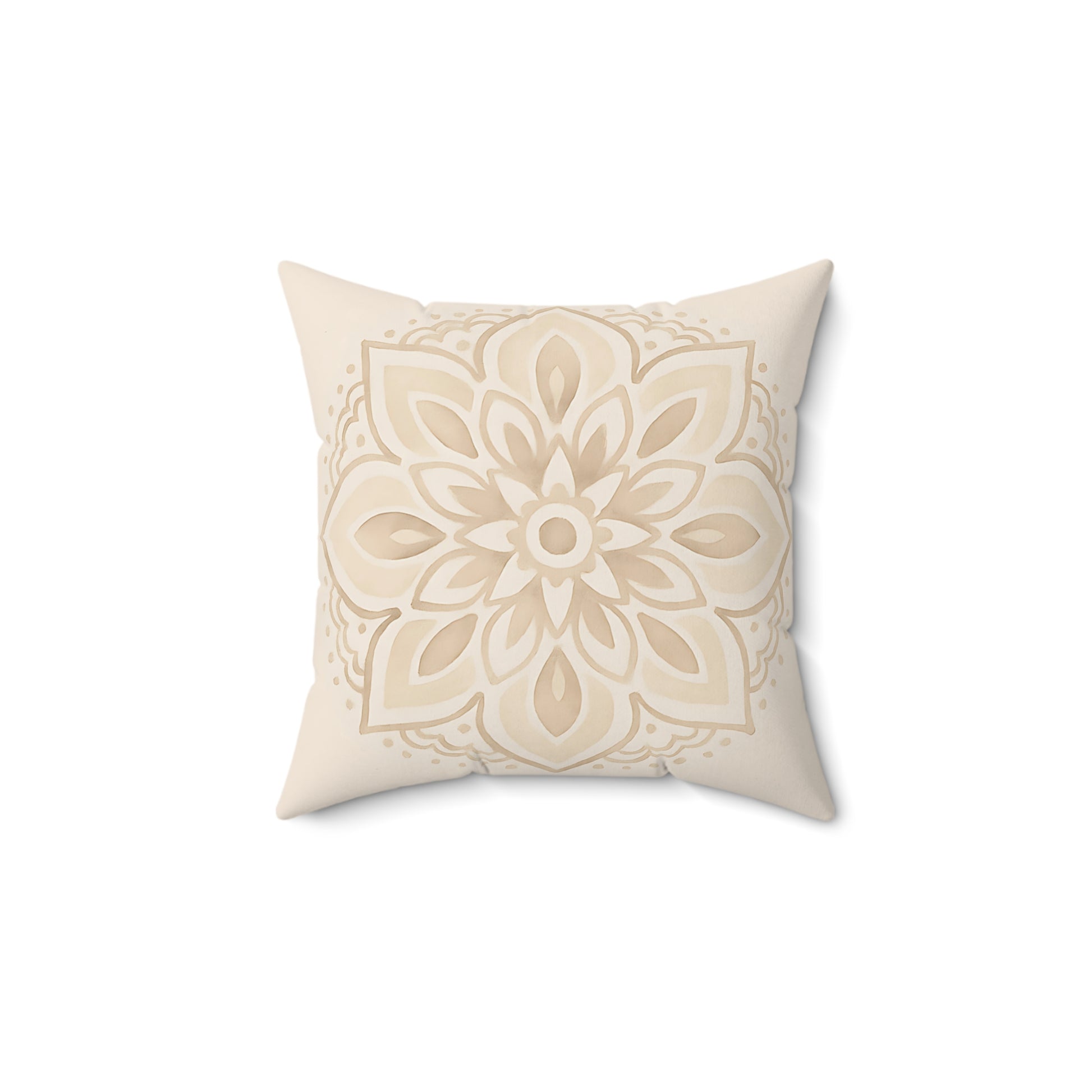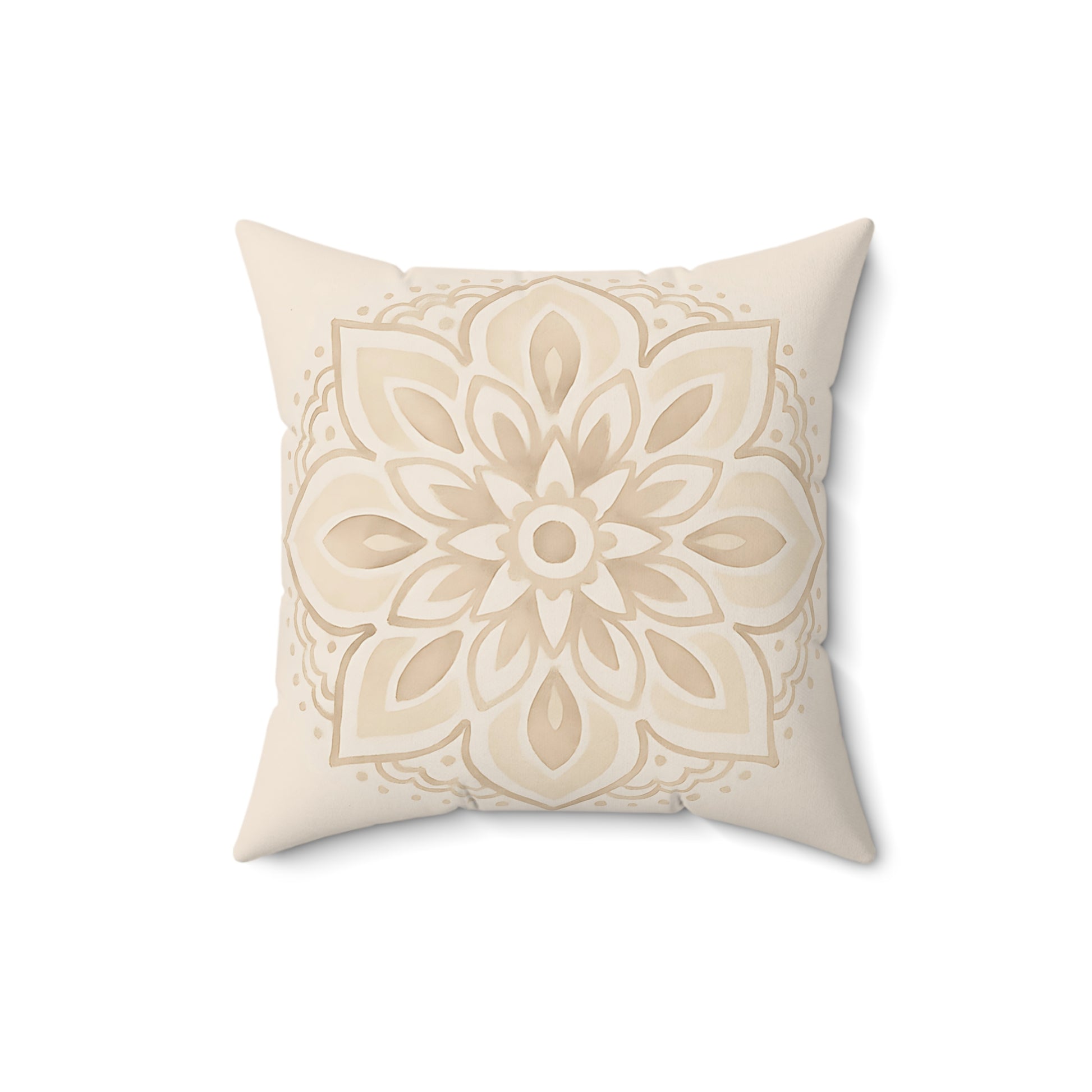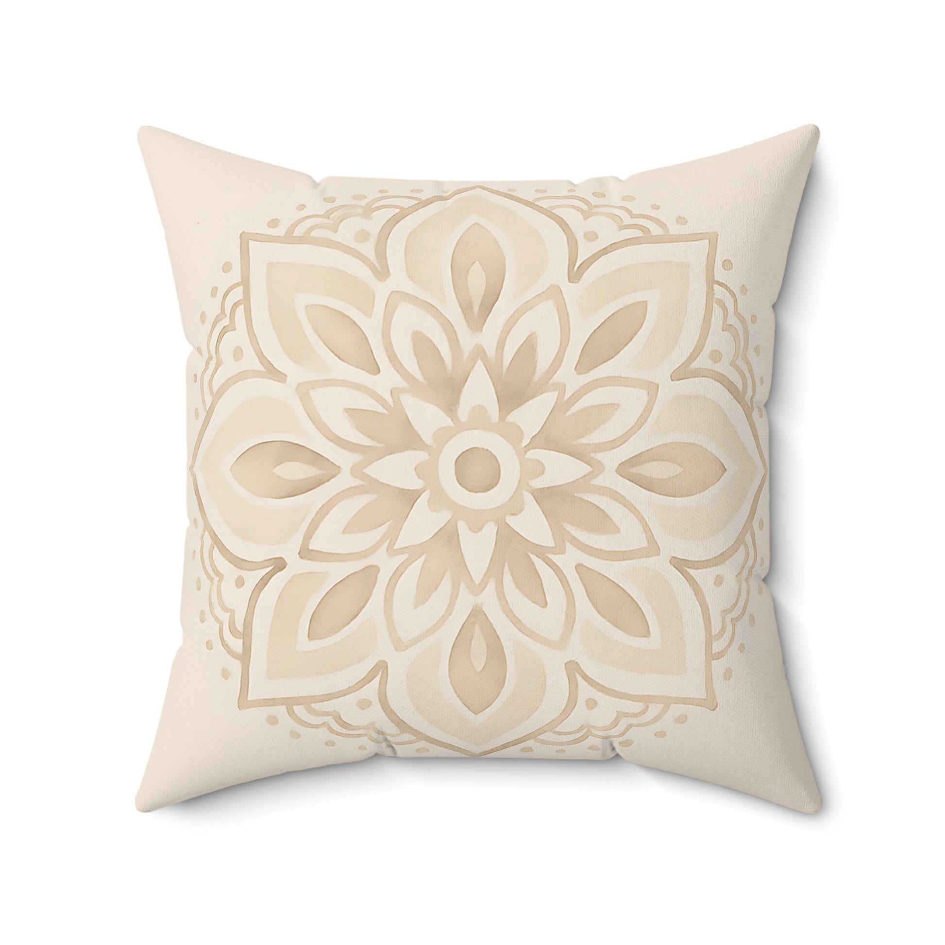 Neutral Mandala Throw Pillow – Boho Decorative Cushion with Cream Floral Medallion & Double-Sided Print