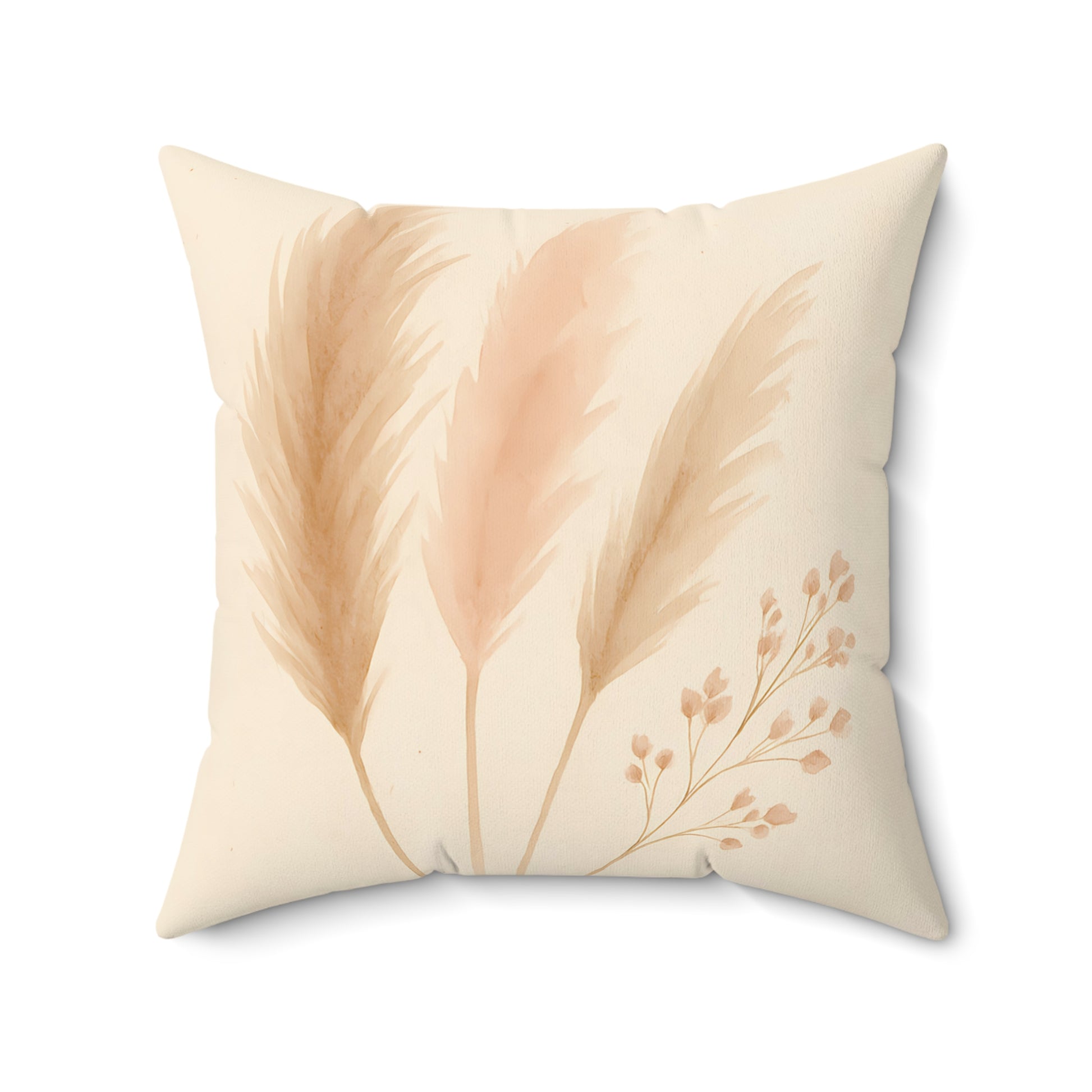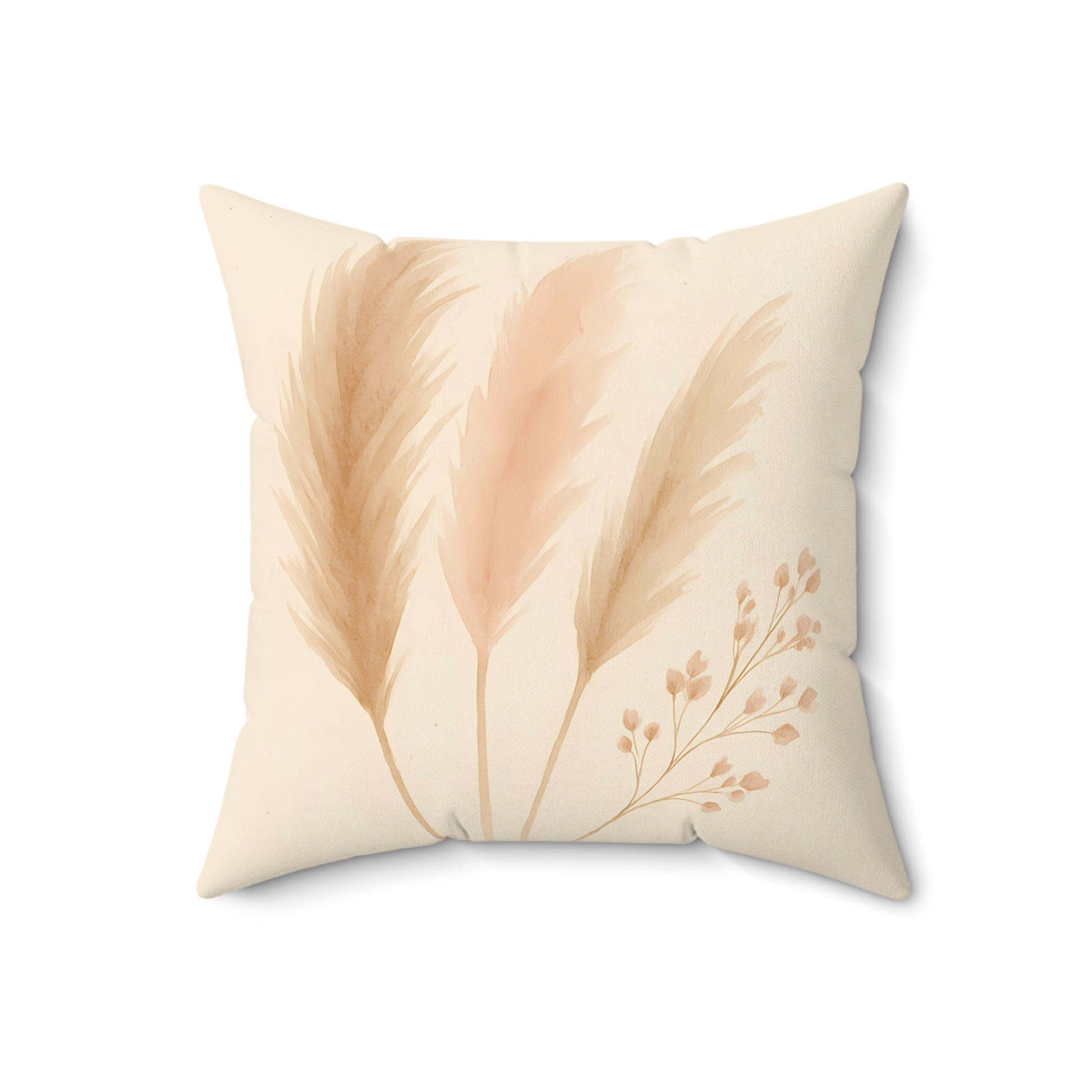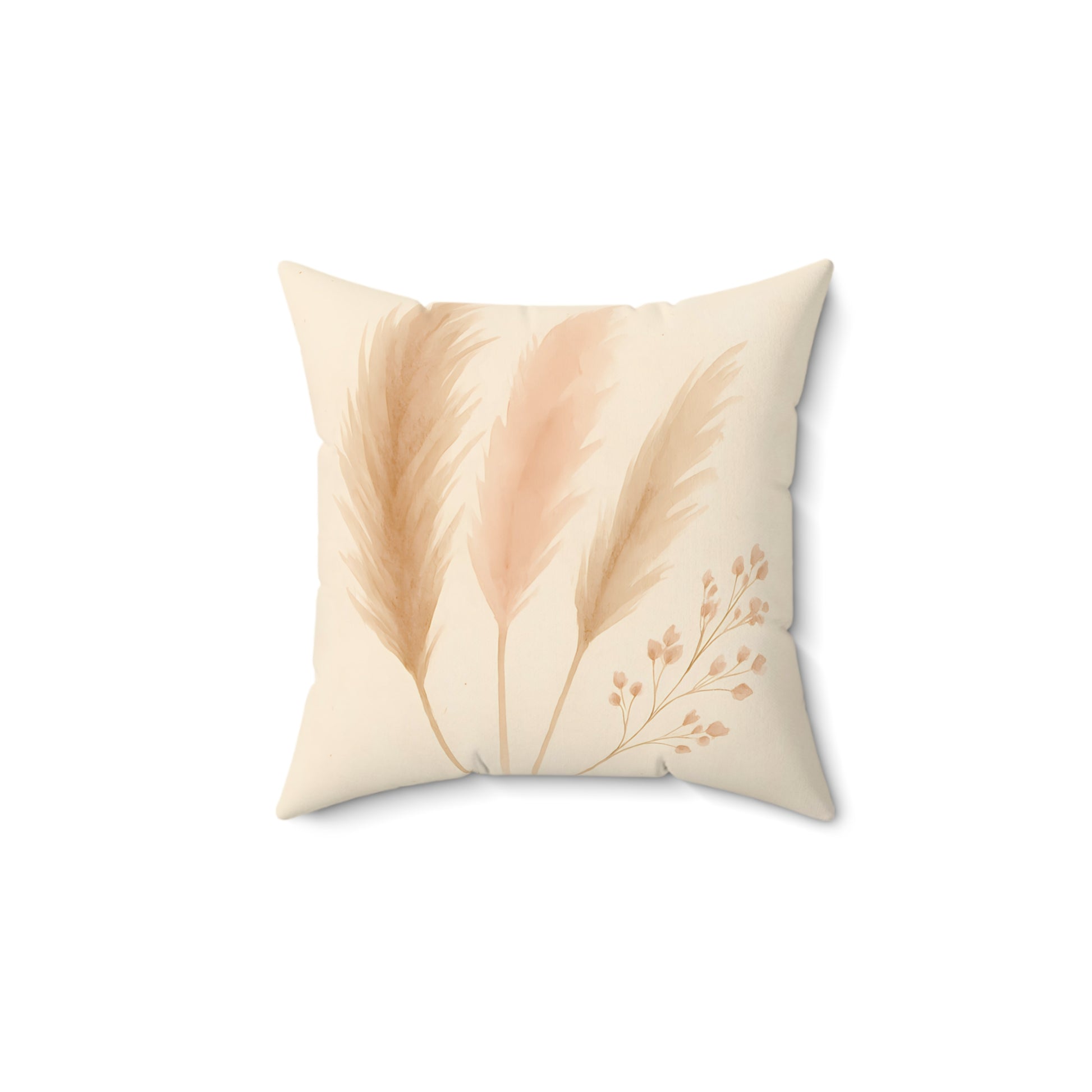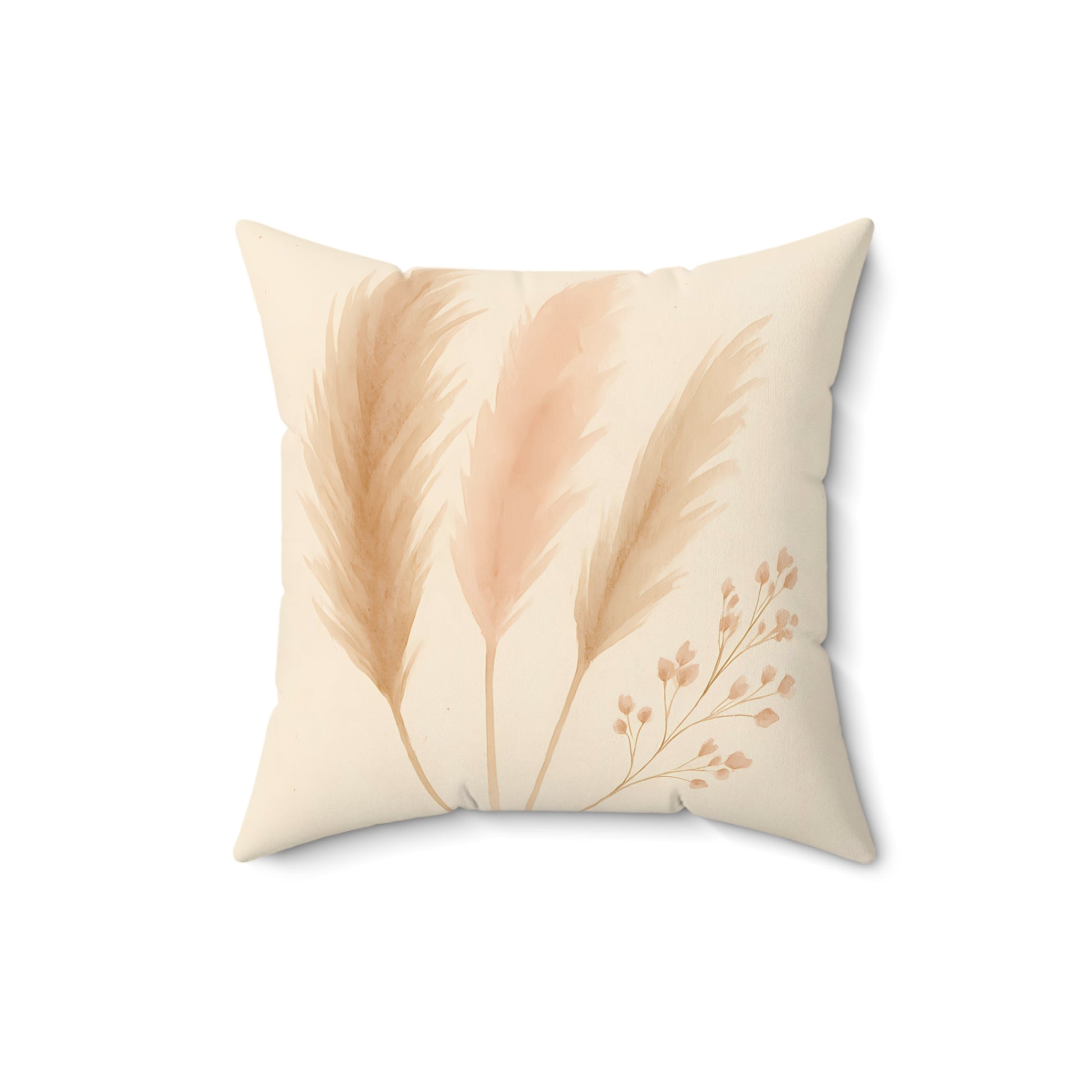 Neutral Pampas Grass Throw Pillow - Minimalist Boho Decorative Cushion with Double-Sided Print.