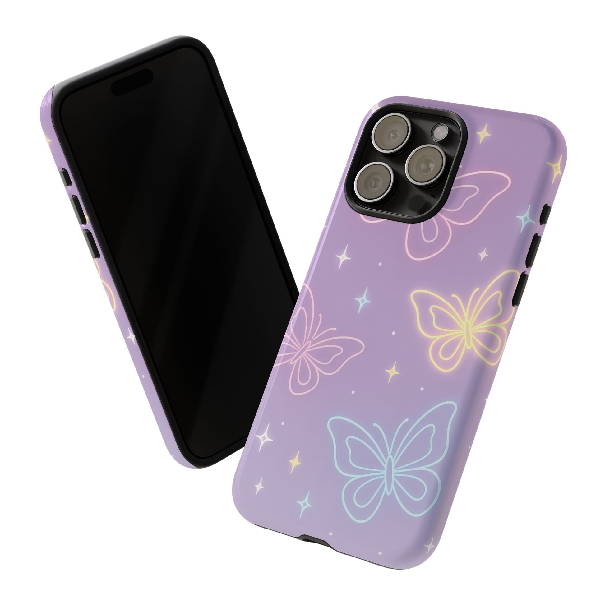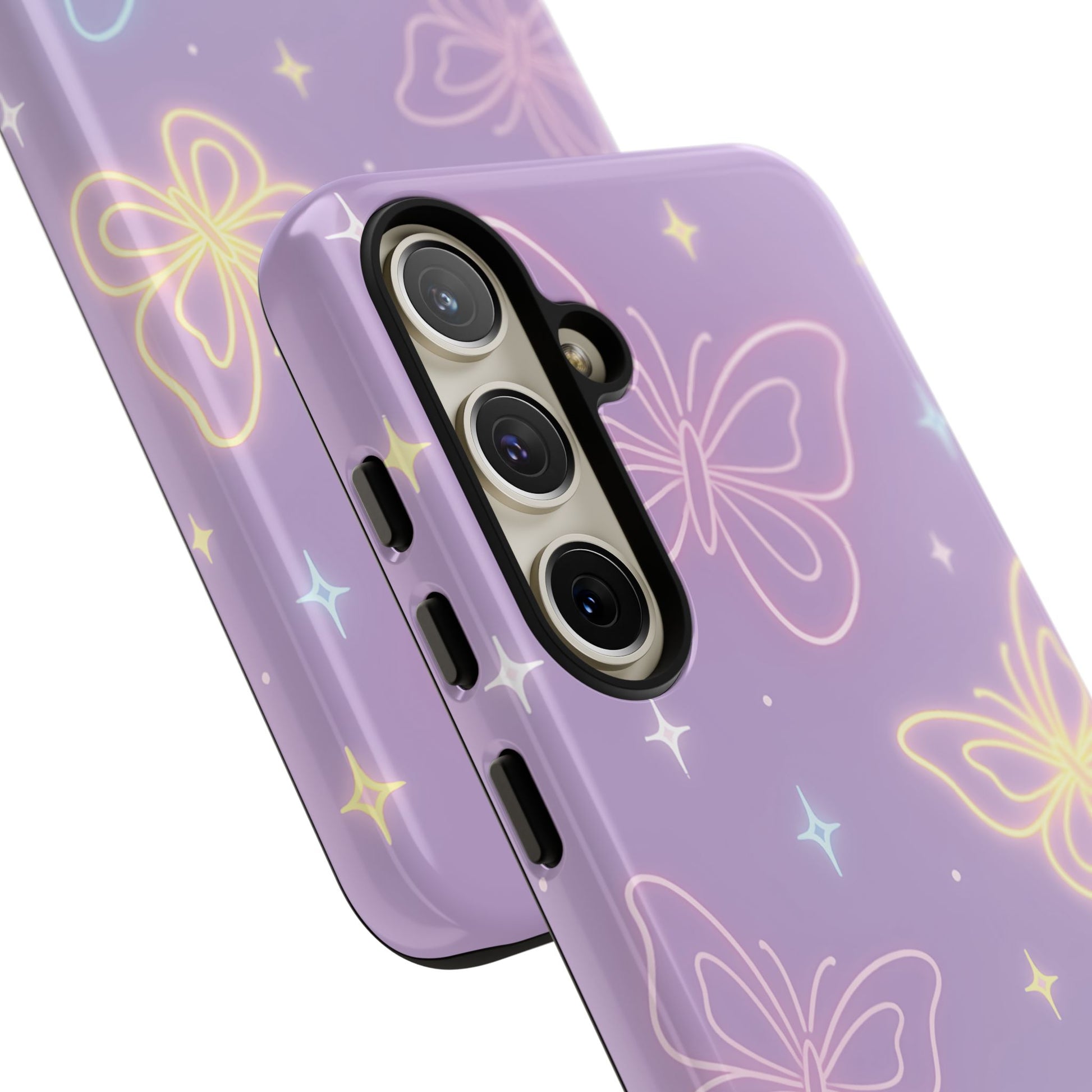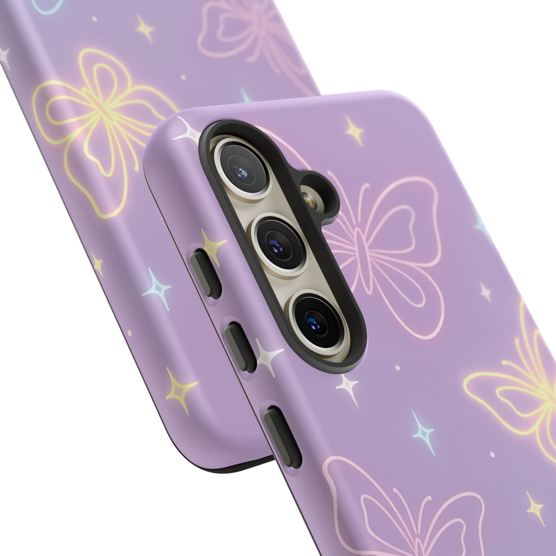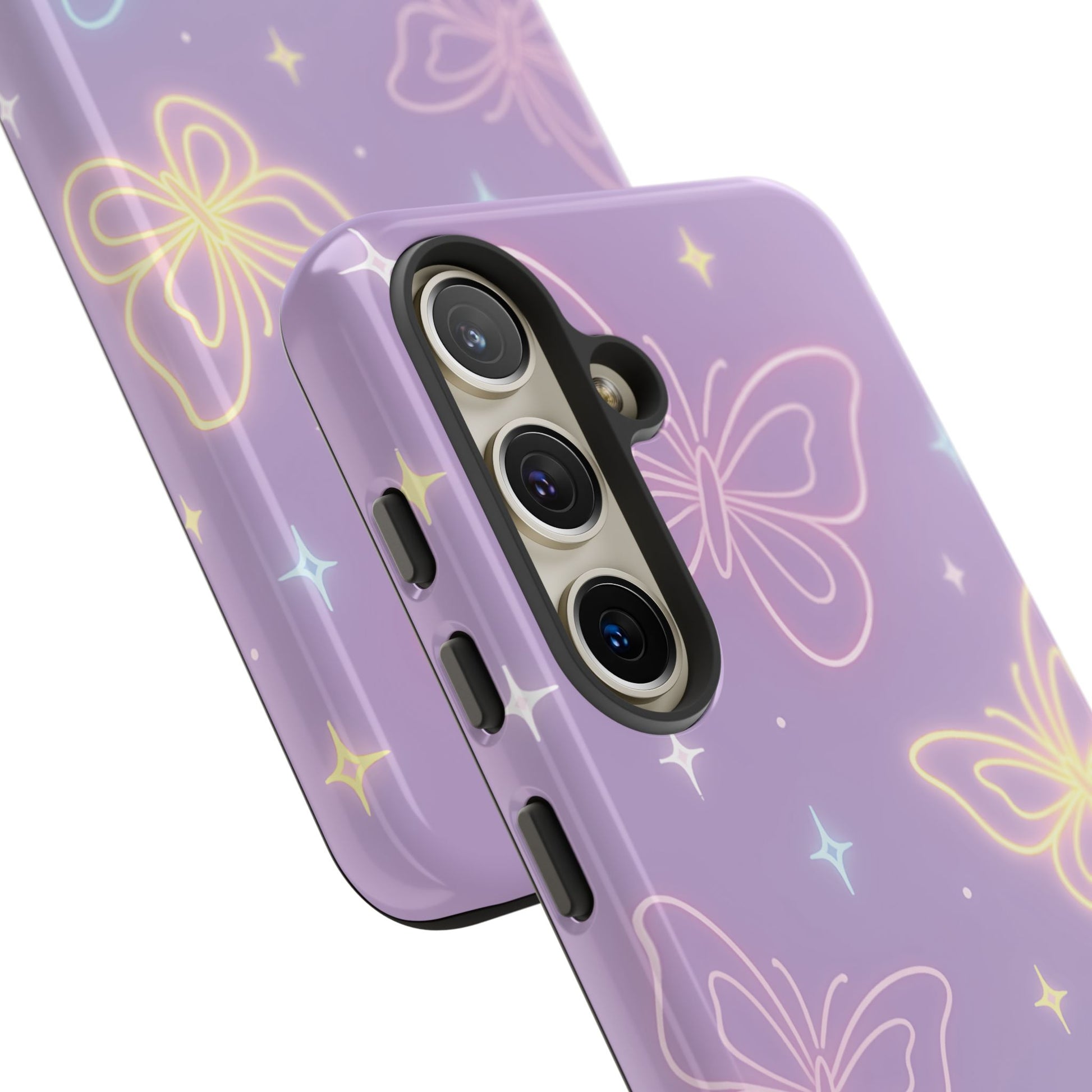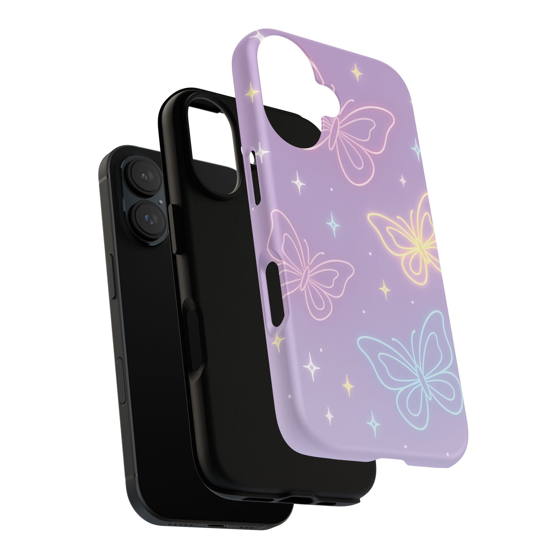 Pastel Butterfly Dream Phone Case – Purple Neon Glow with Stars