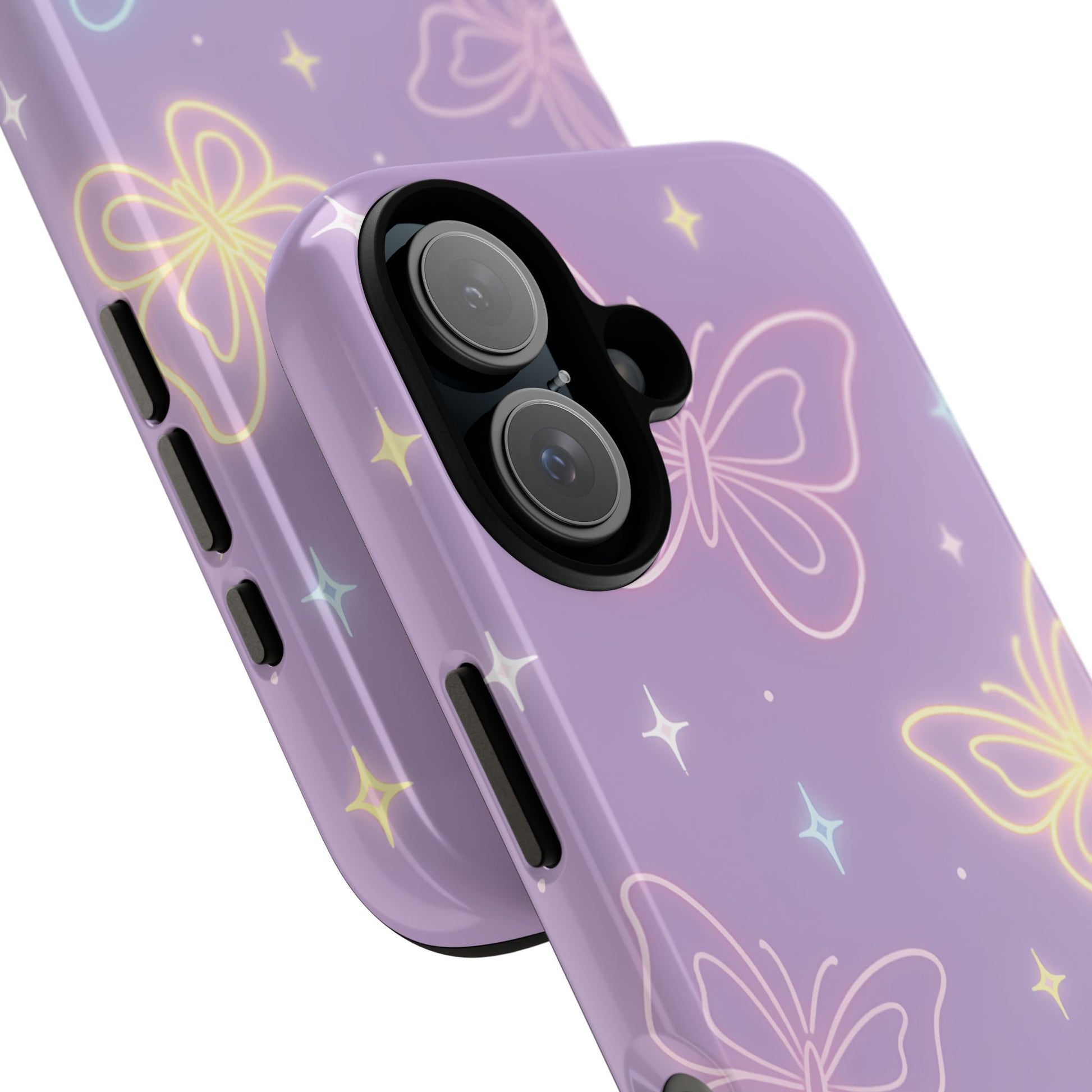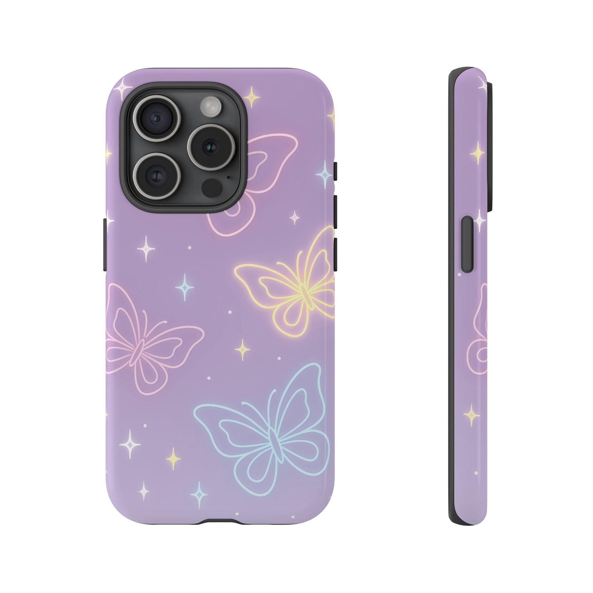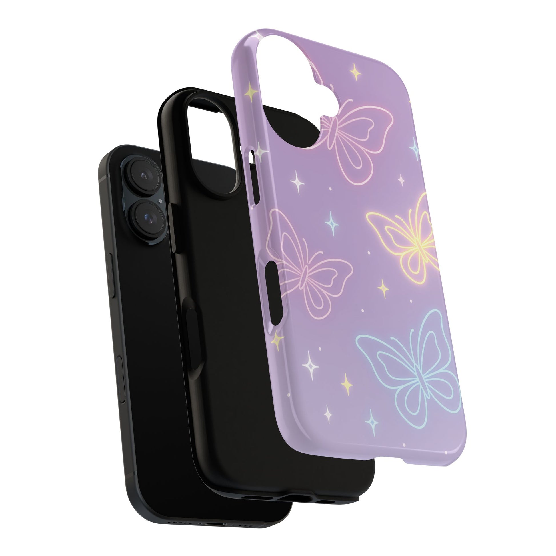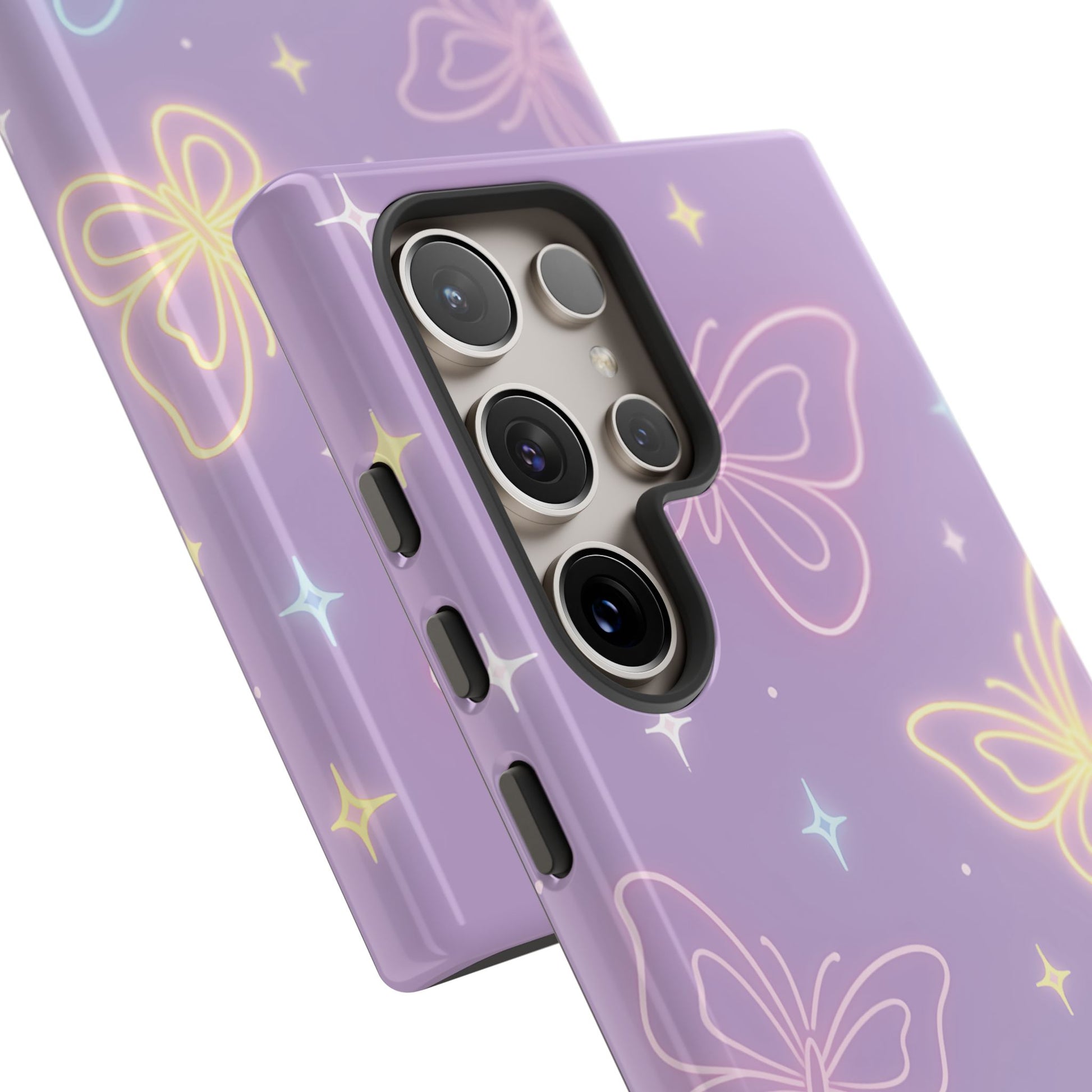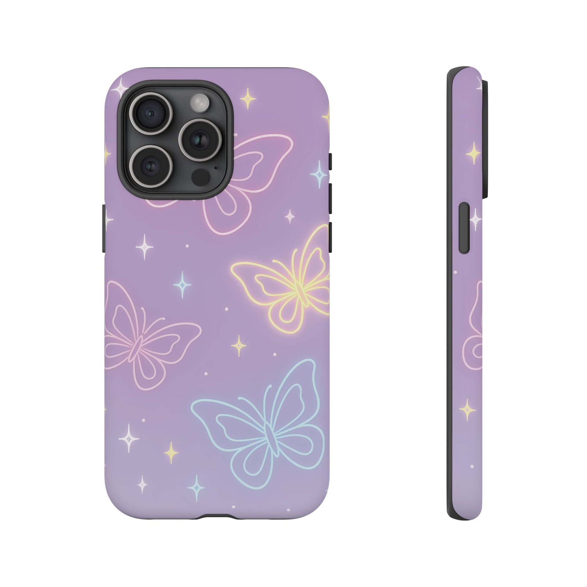 Pastel Butterfly Dream Phone Case – Purple Neon Glow with Stars