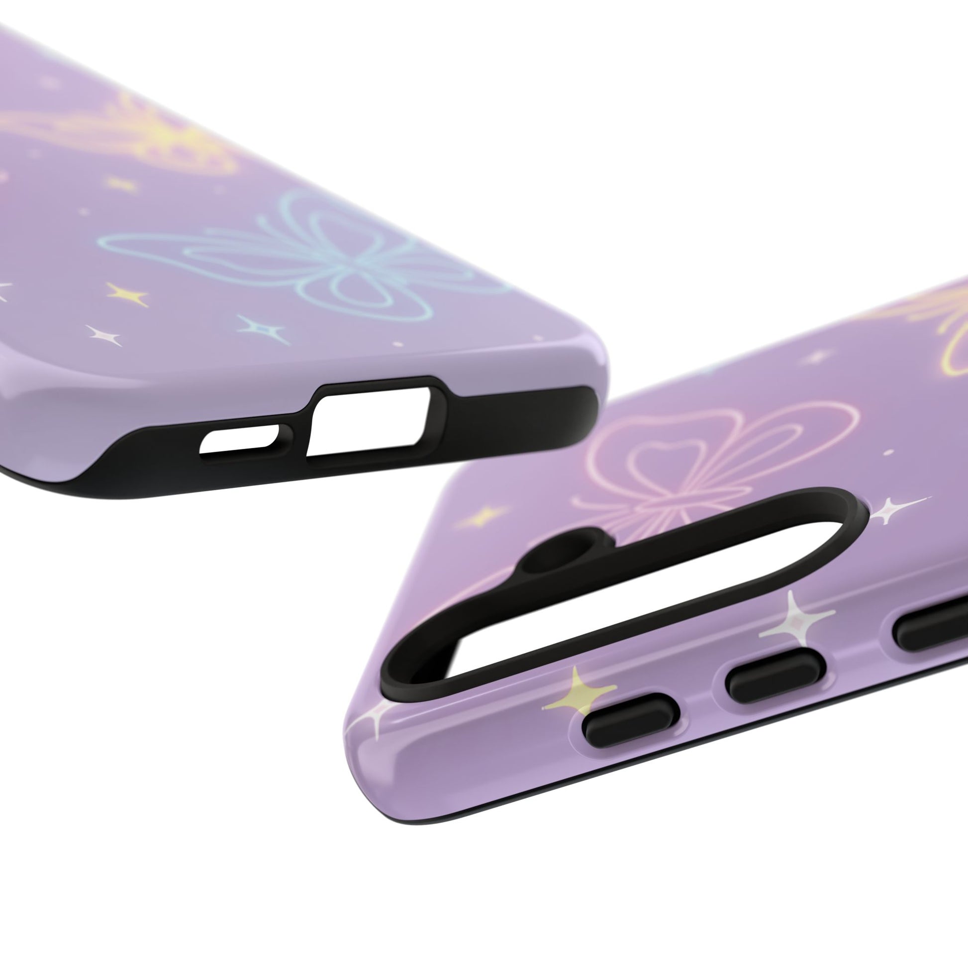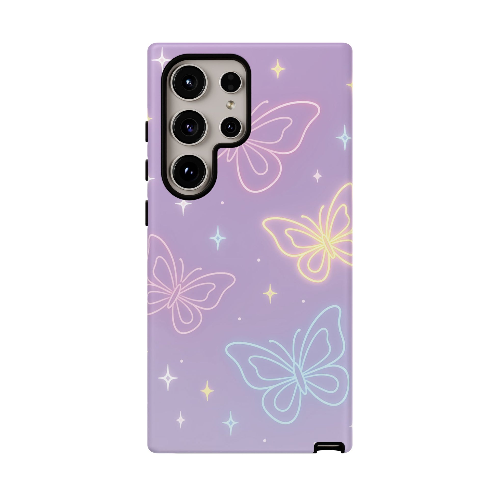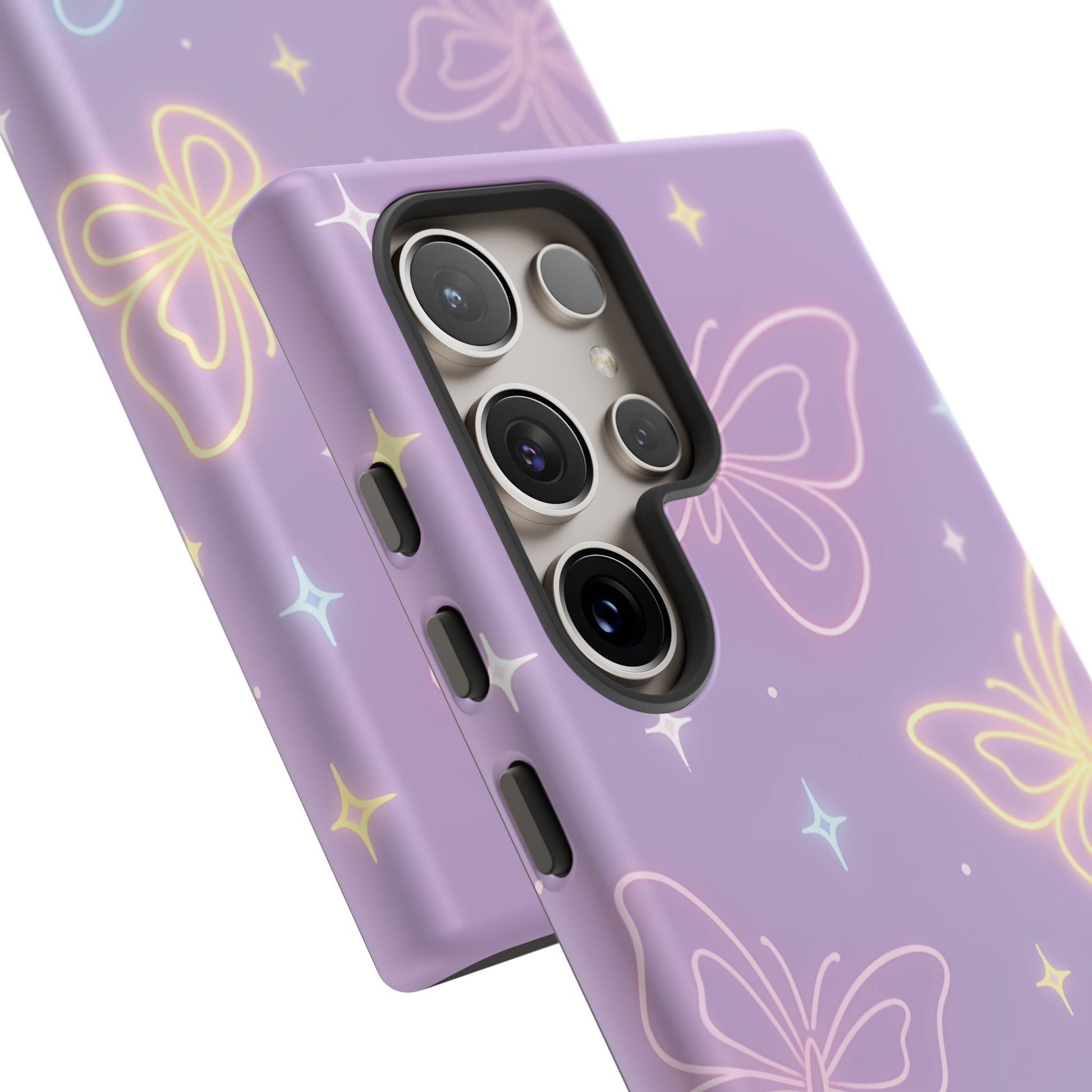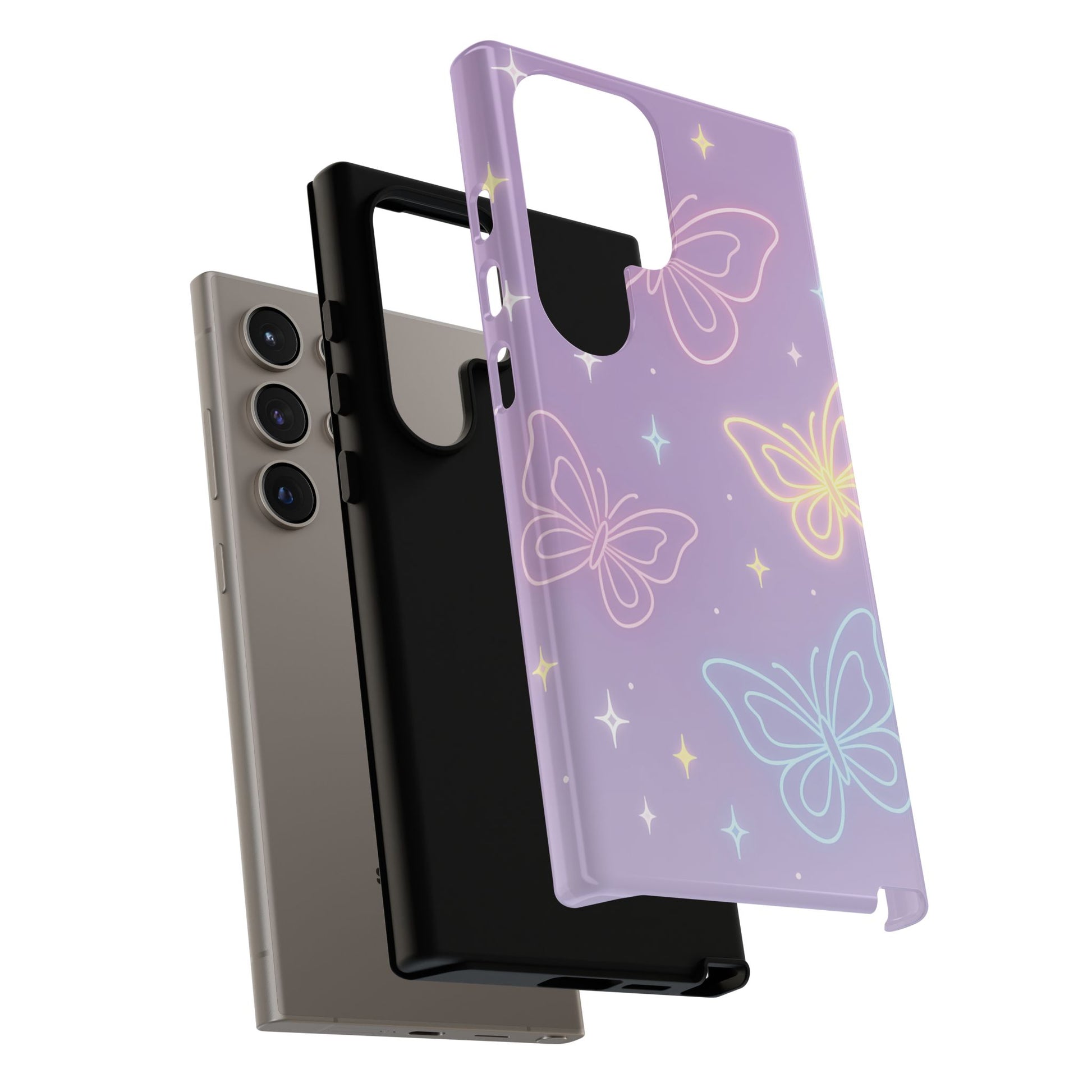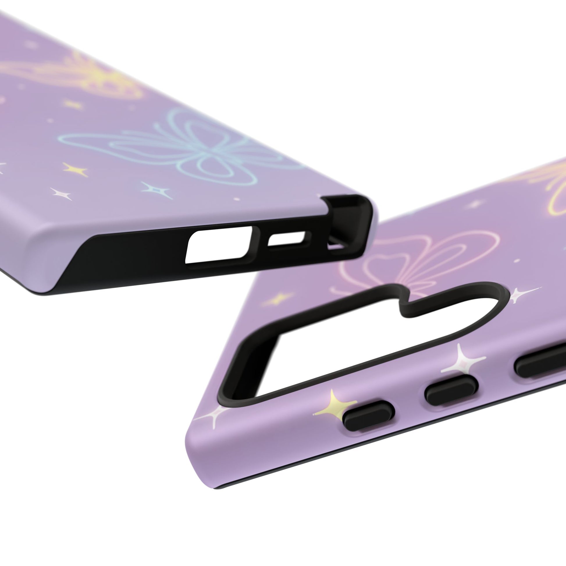 Pastel Butterfly Dream Phone Case – Purple Neon Glow with Stars