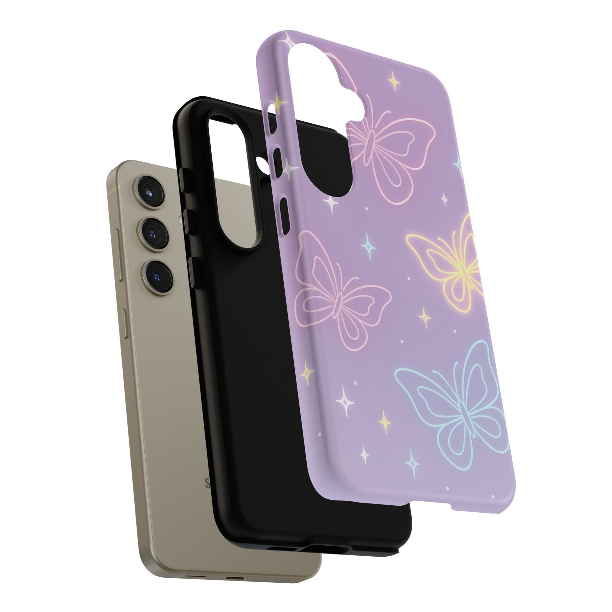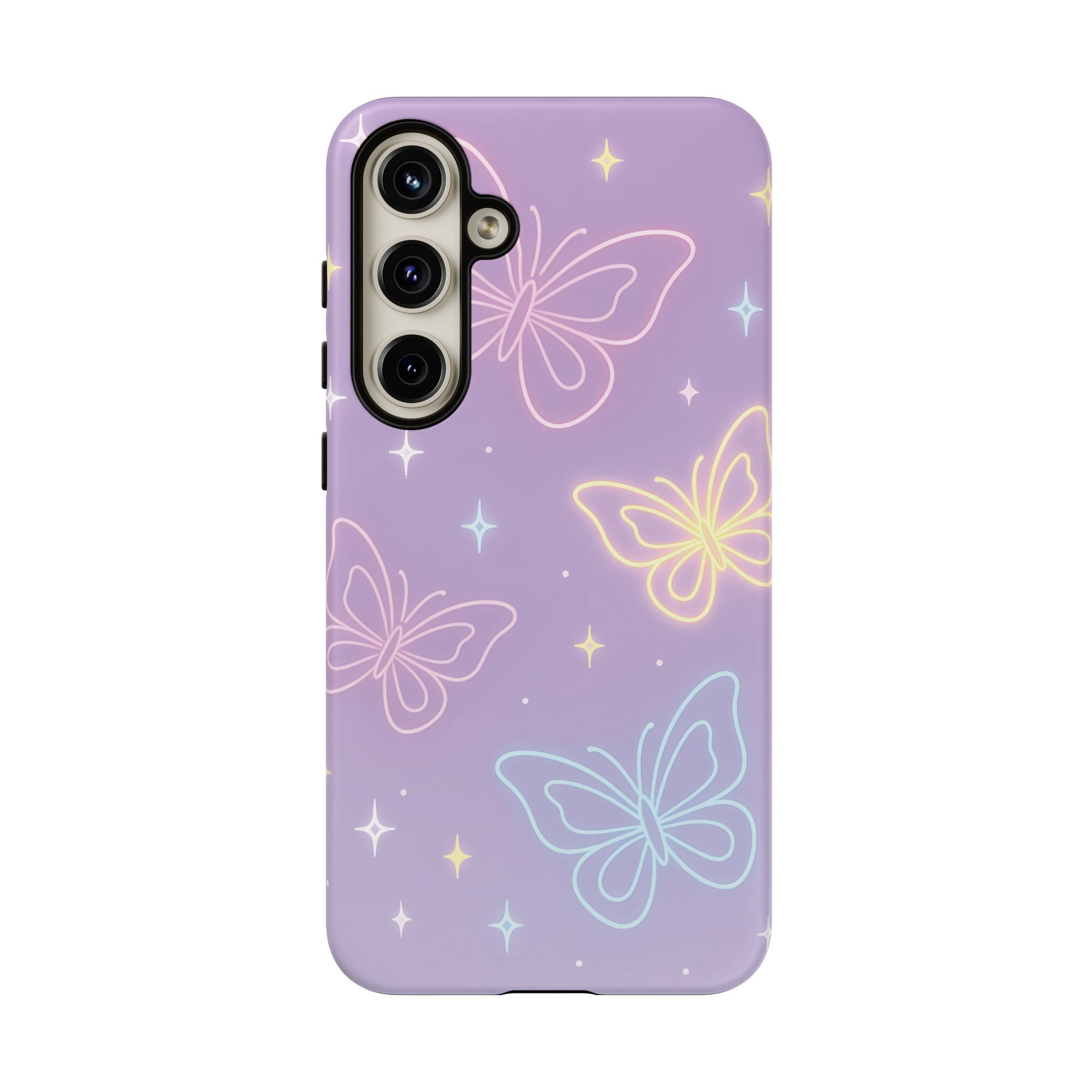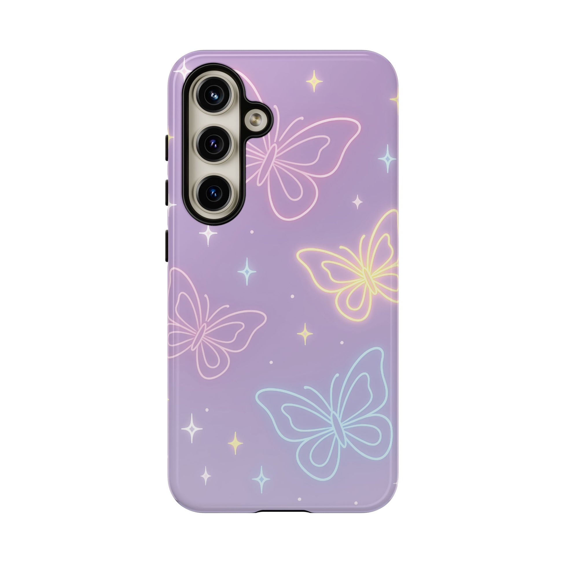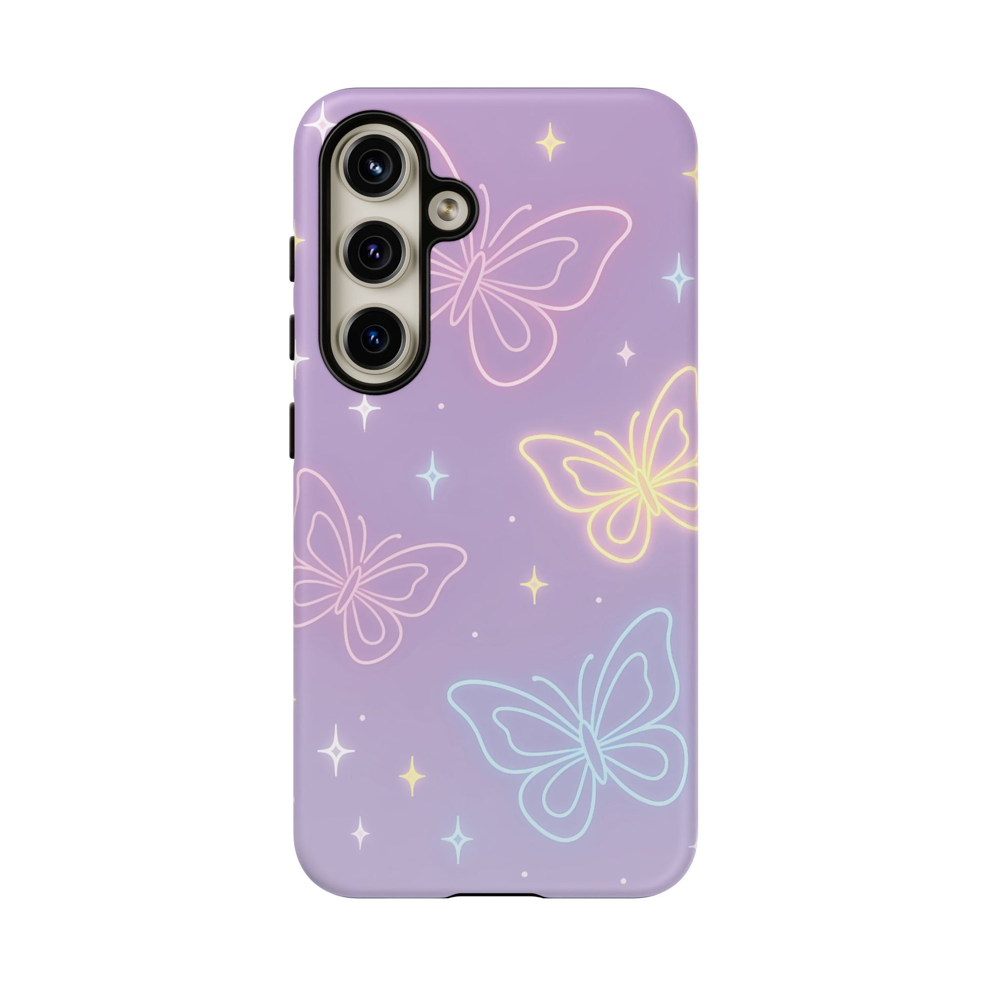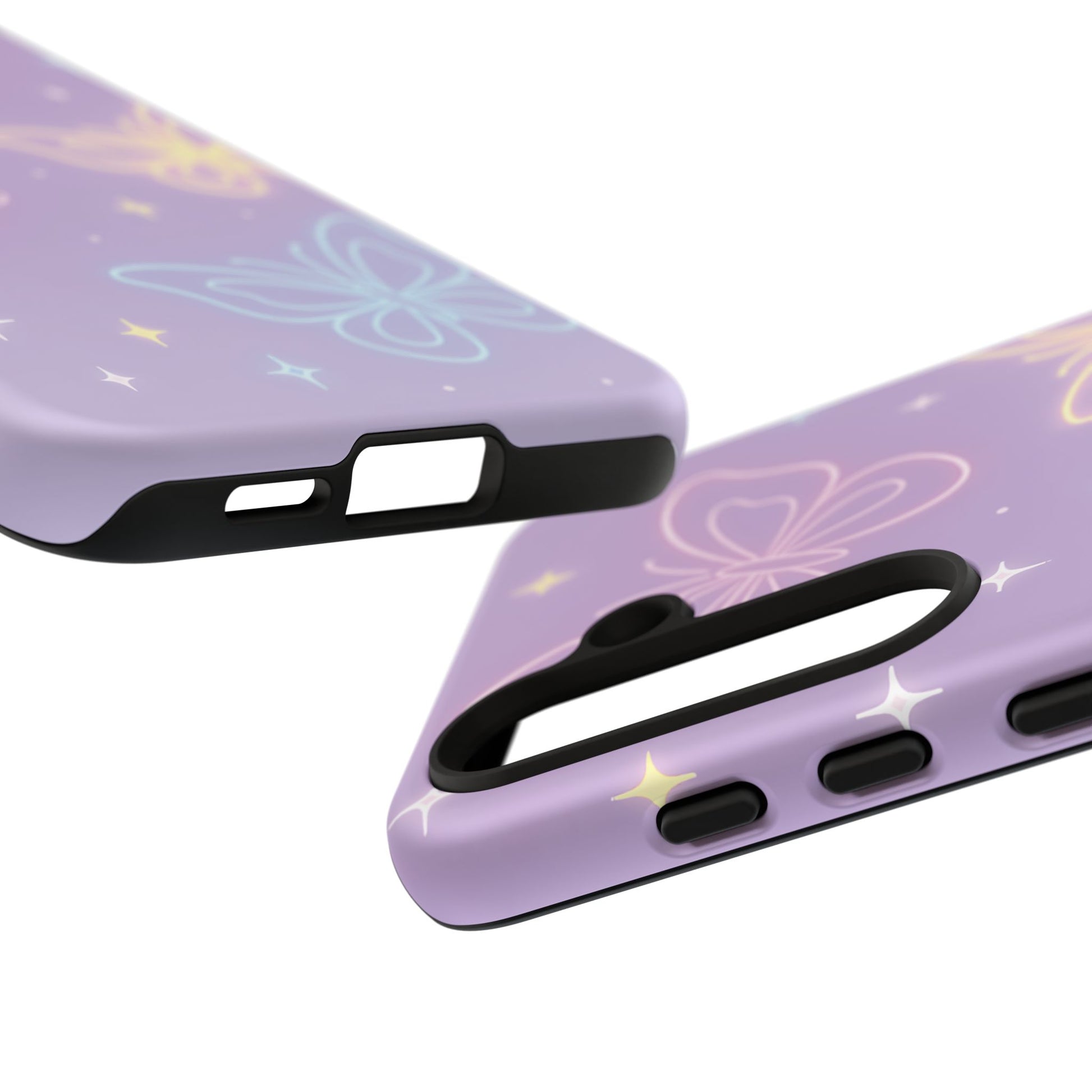 Pastel Butterfly Dream Phone Case – Purple Neon Glow with Stars