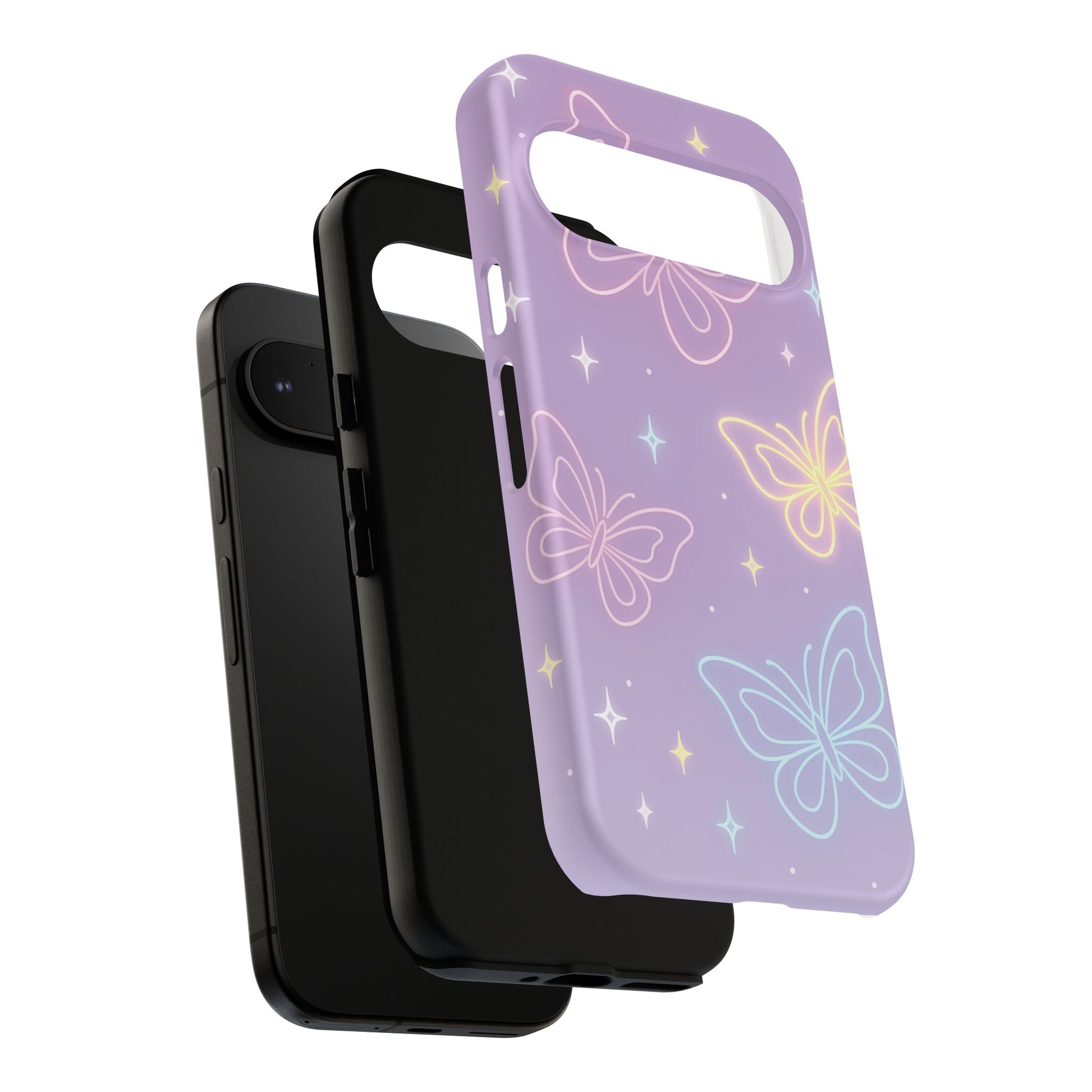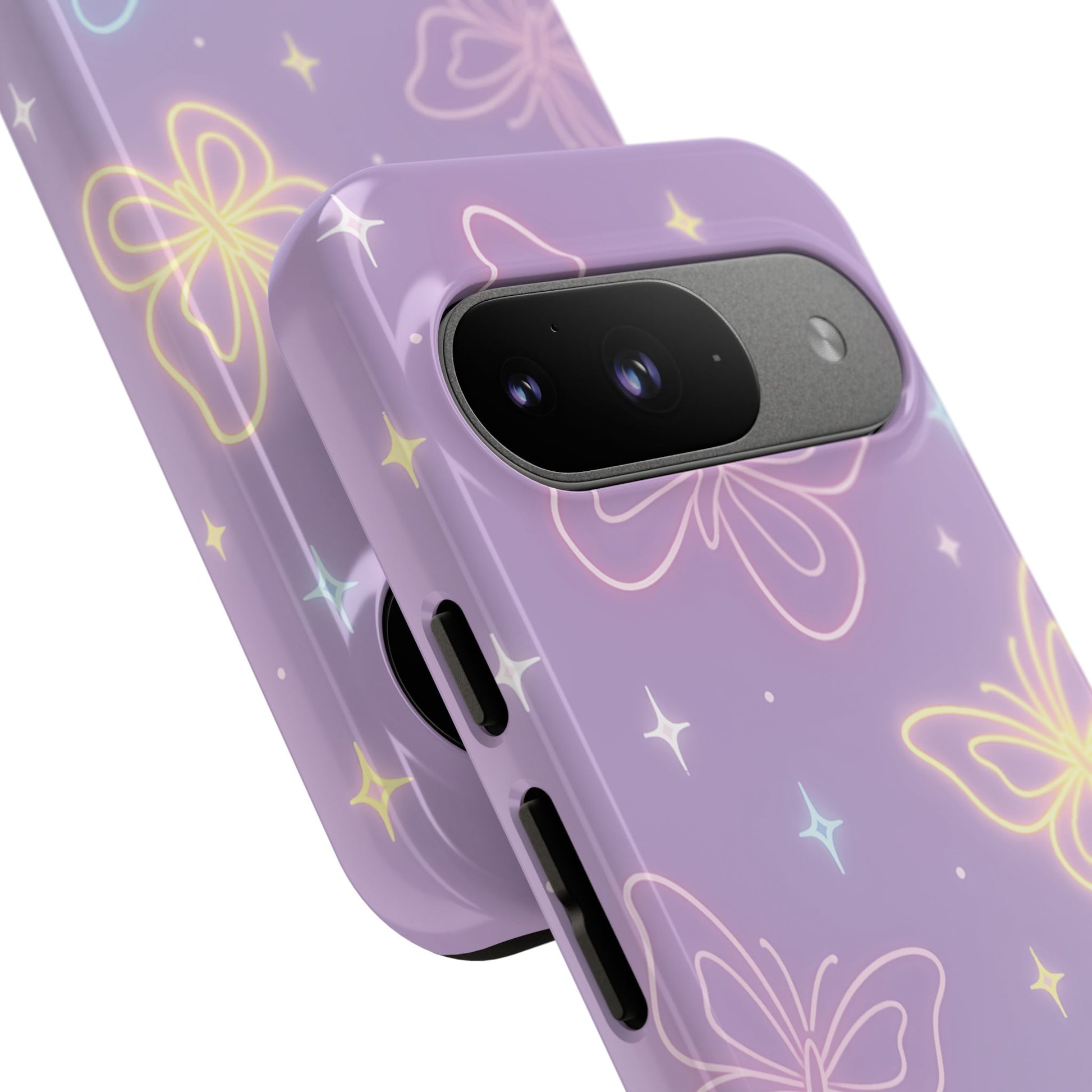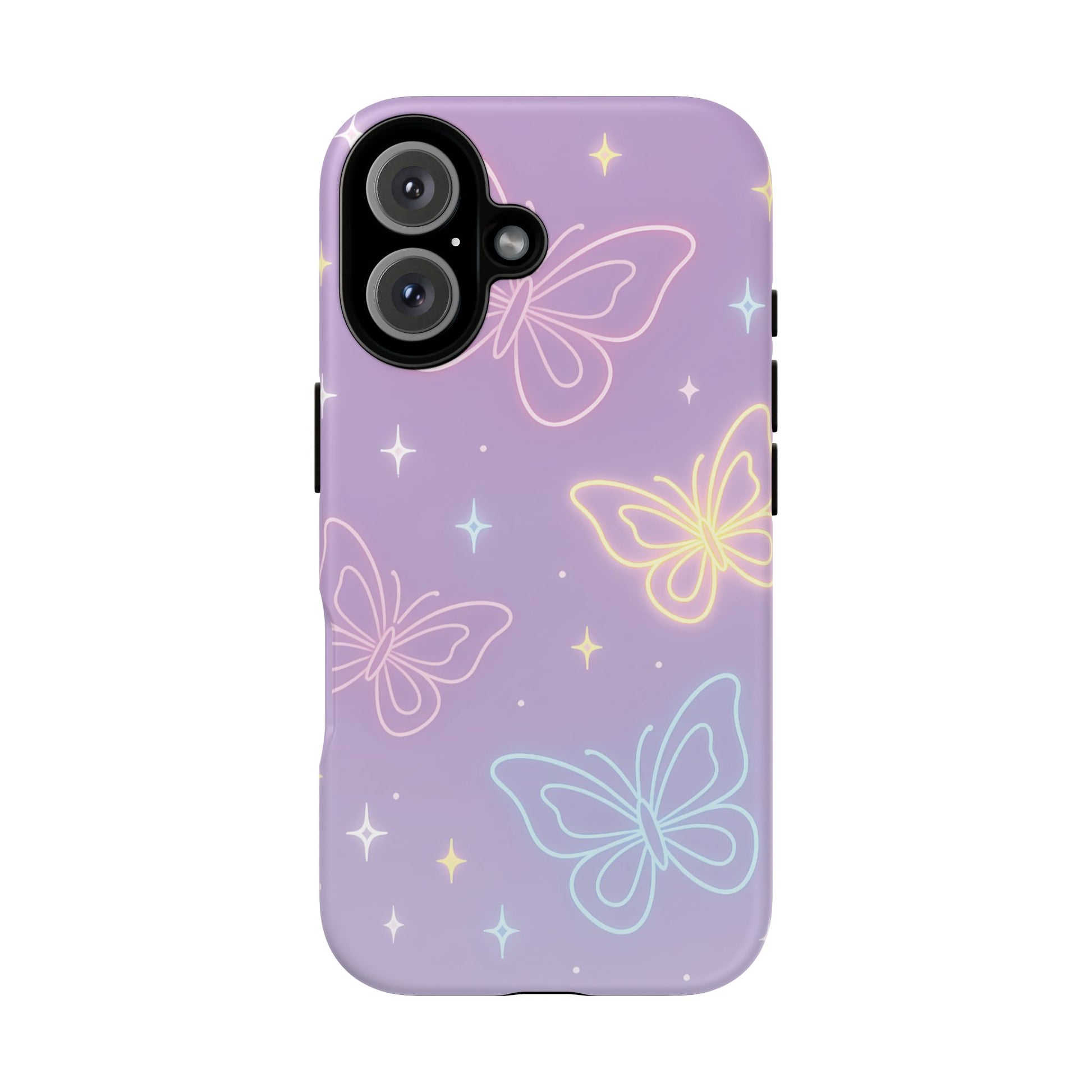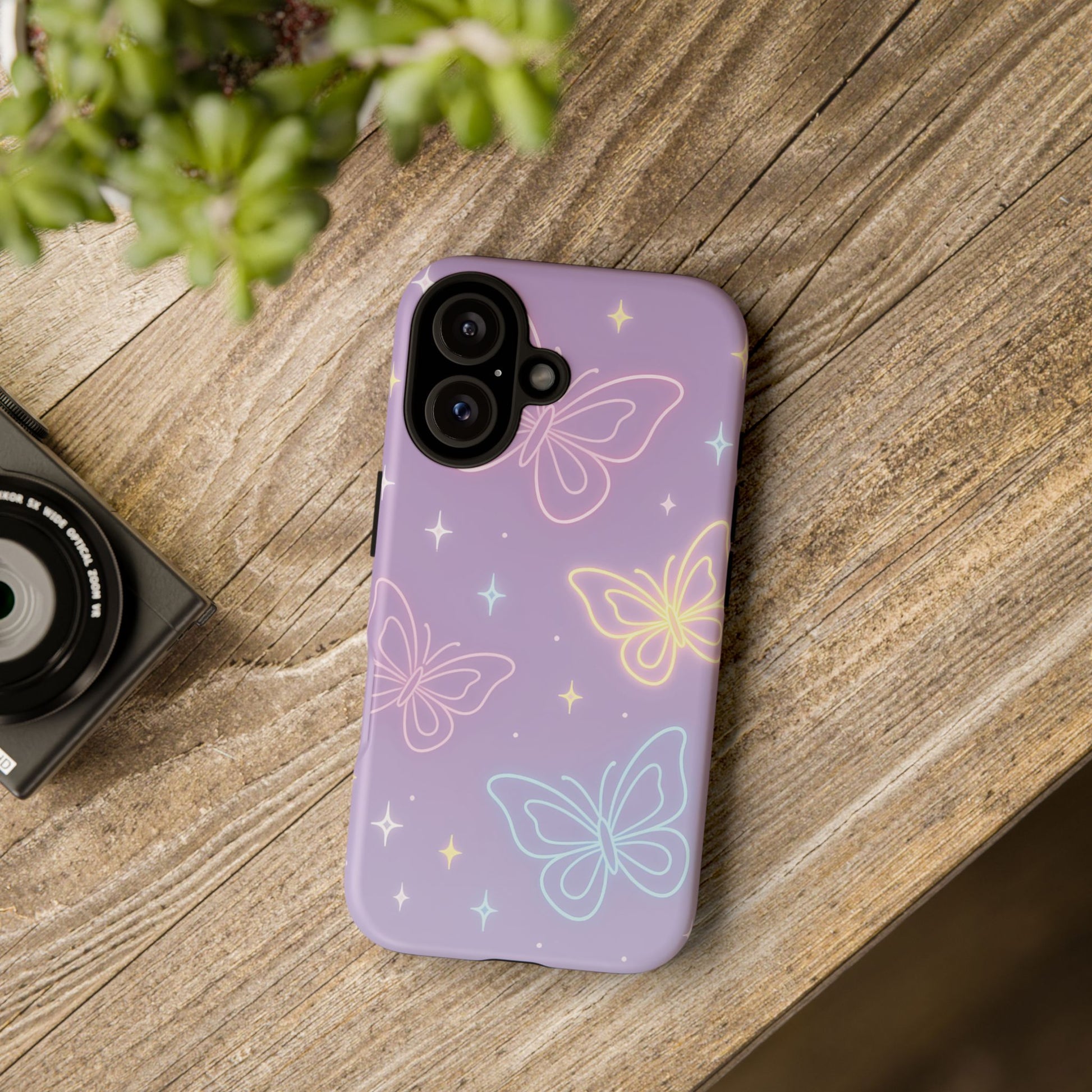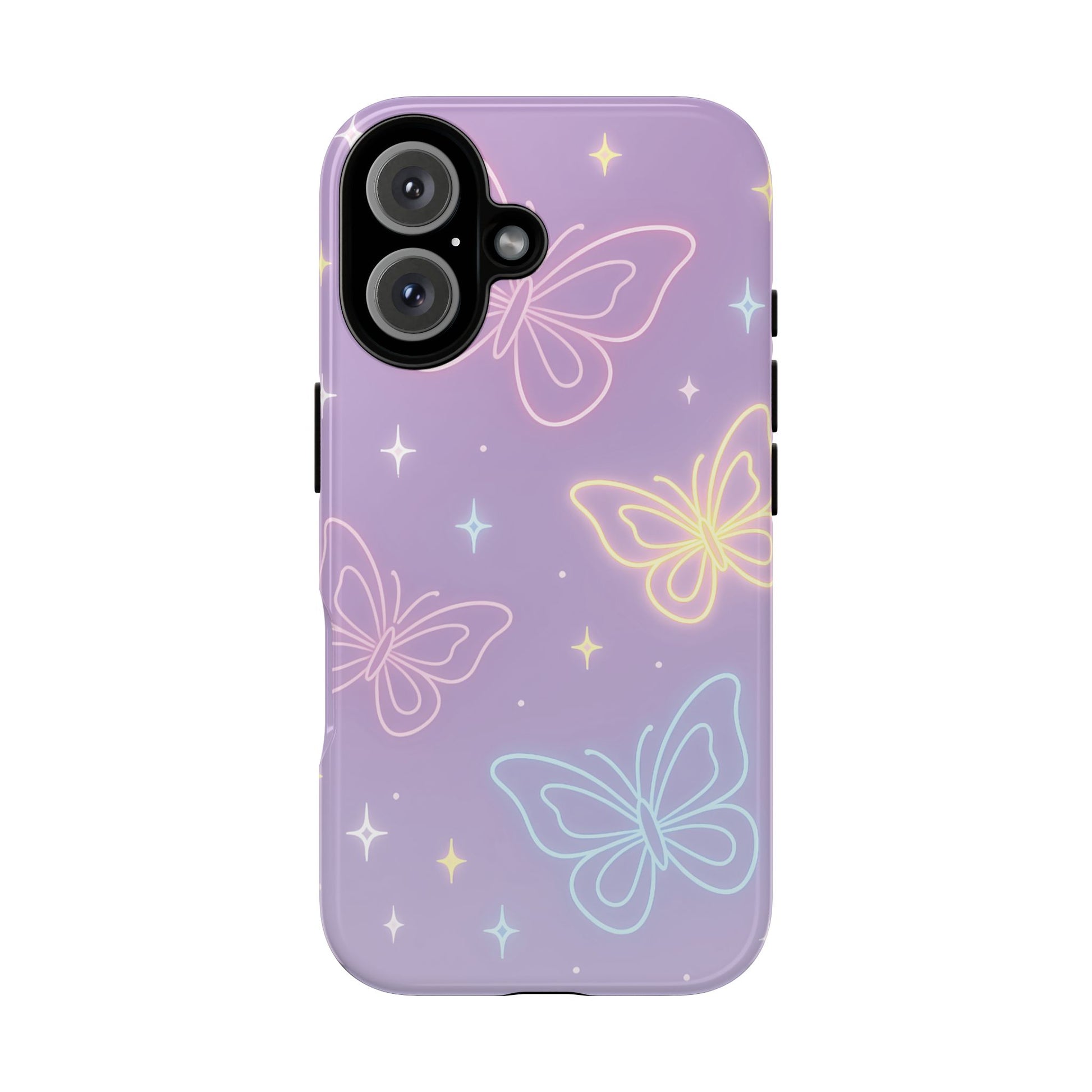 Pastel Butterfly Dream Phone Case – Purple Neon Glow with Stars