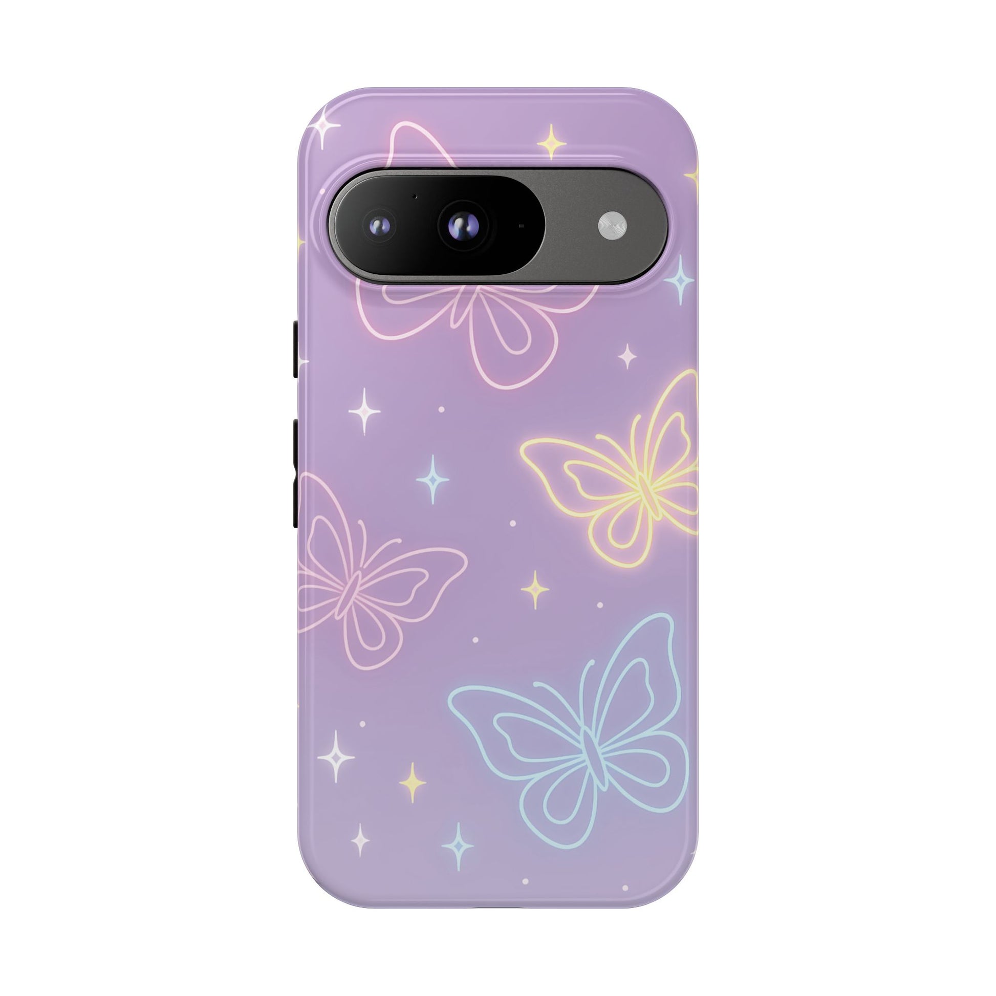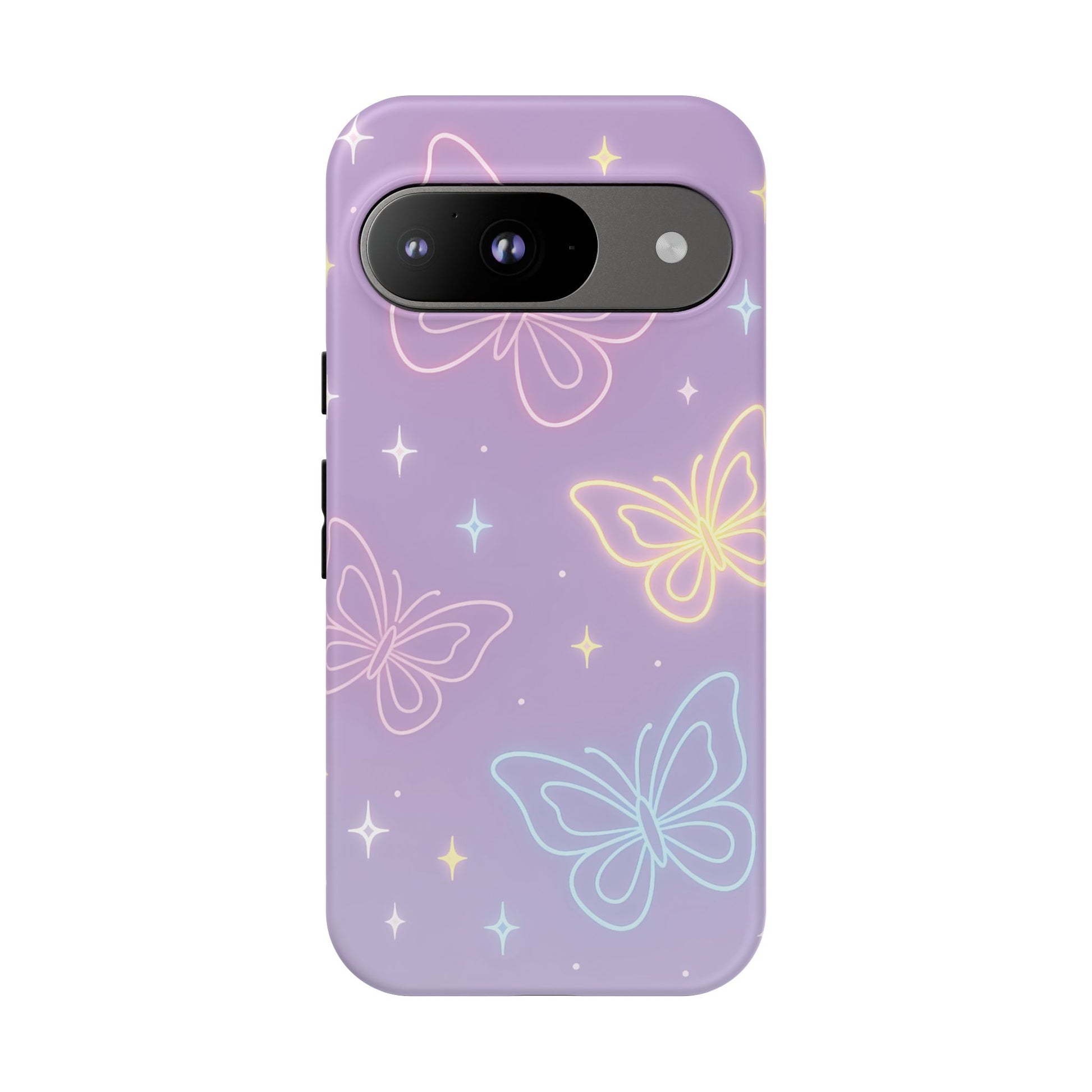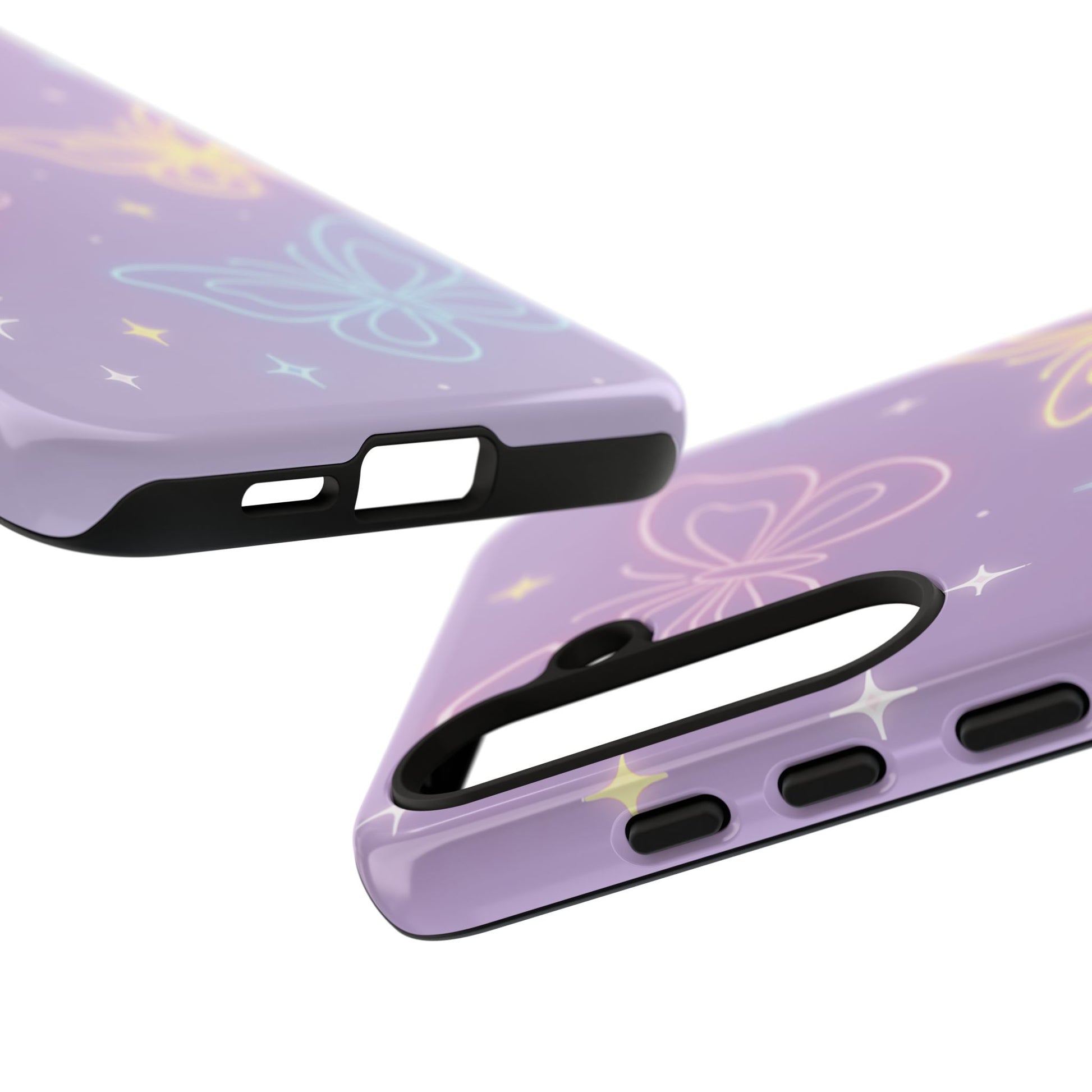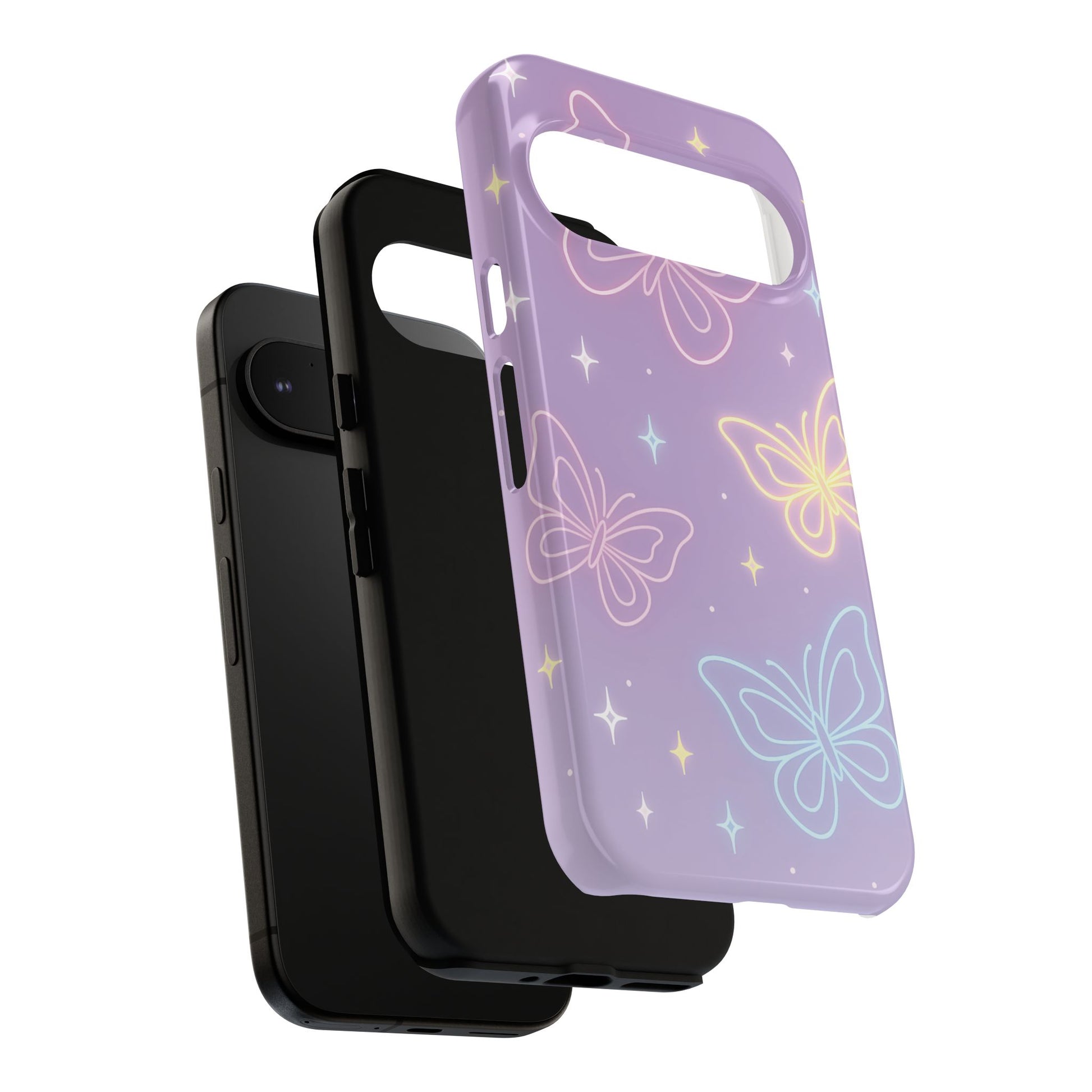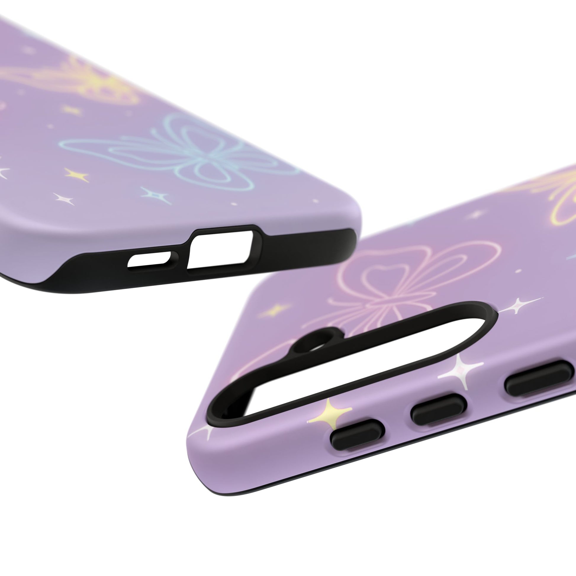 Pastel Butterfly Dream Phone Case – Purple Neon Glow with Stars