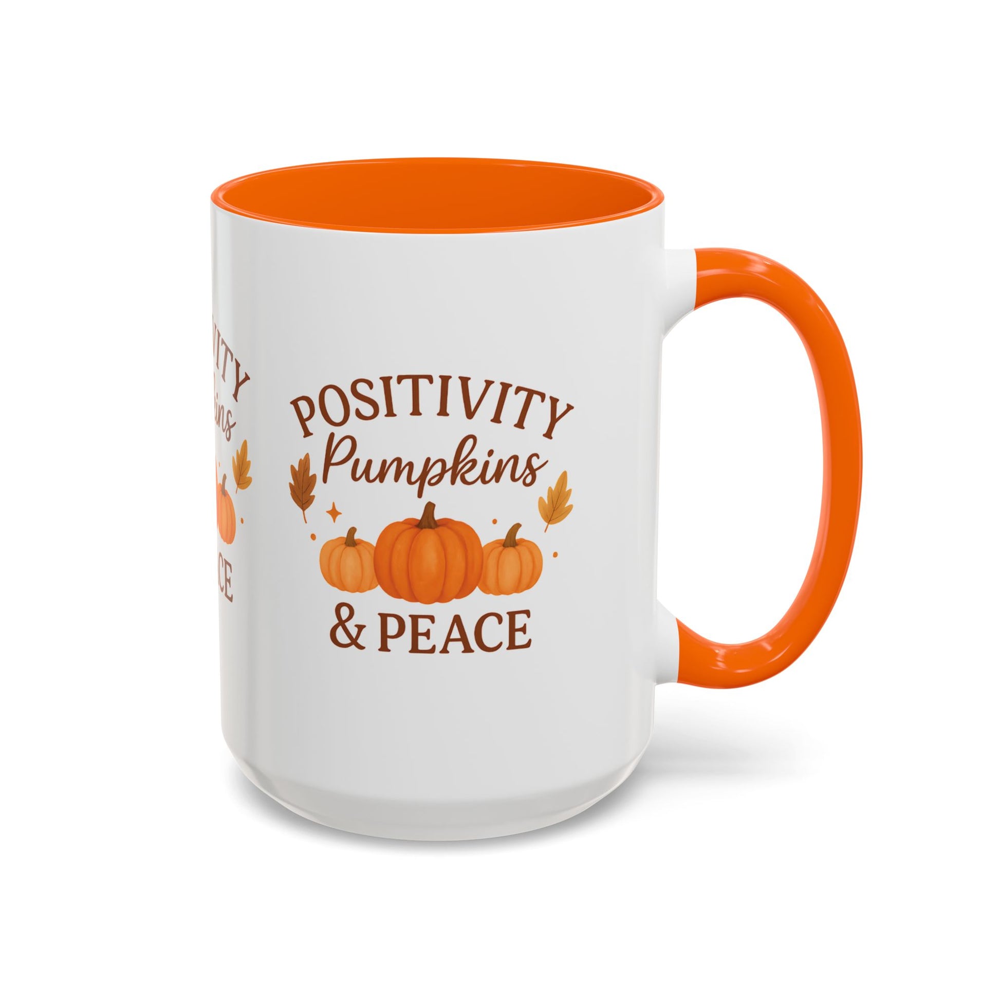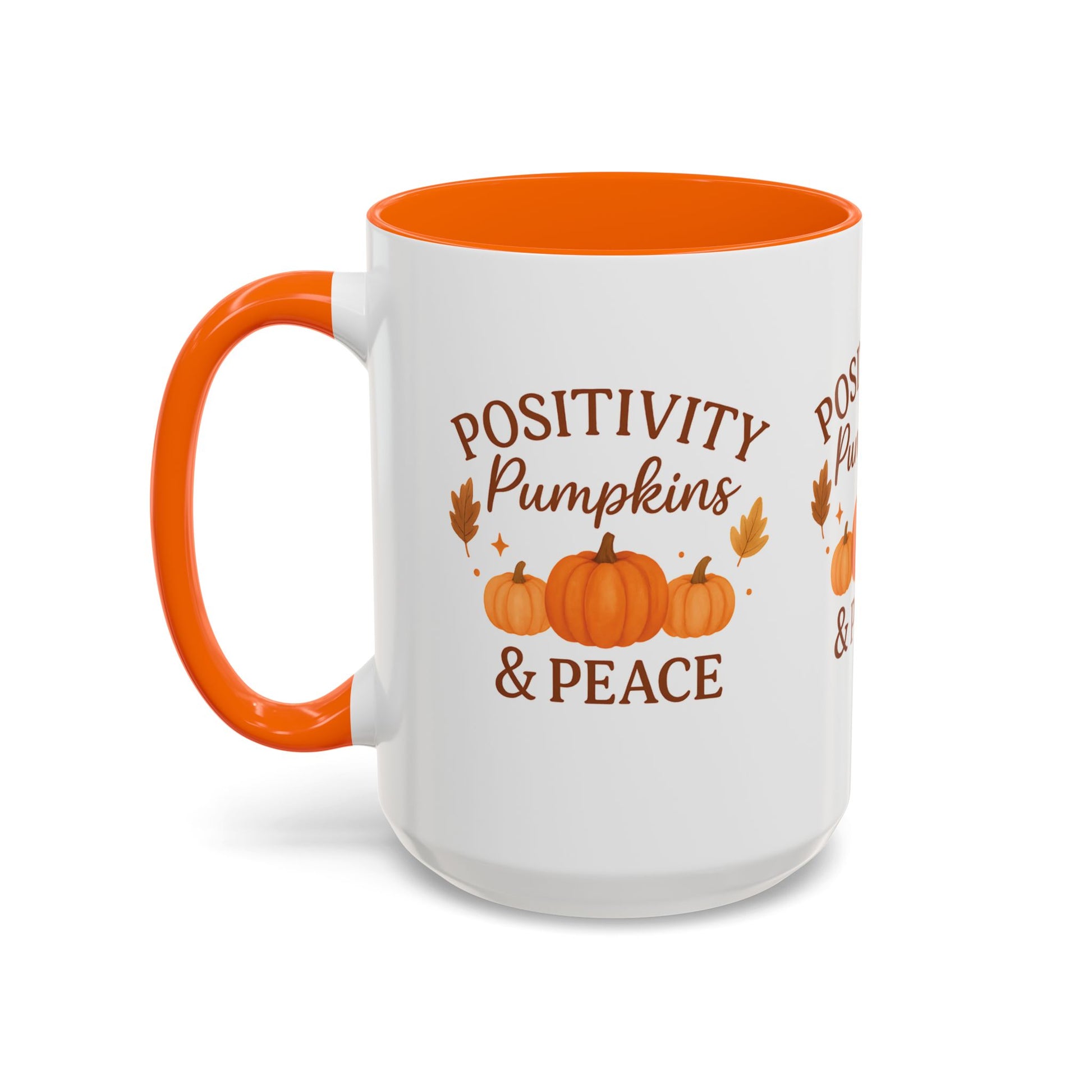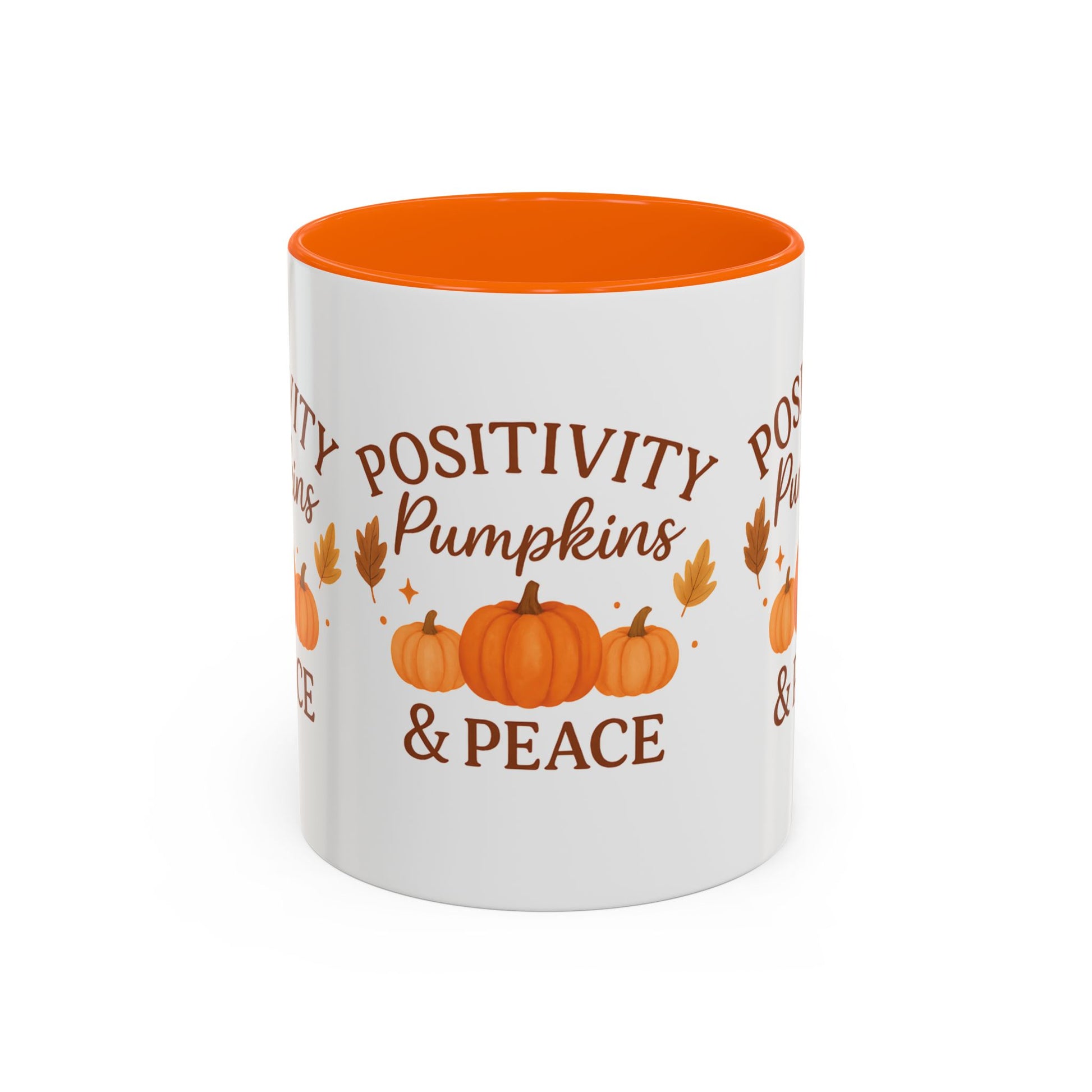 Positivity, Pumpkins & Peace Fall Mug – Autumn Coffee Cup in 11oz or 15oz | Microwave & Dishwasher Safe.