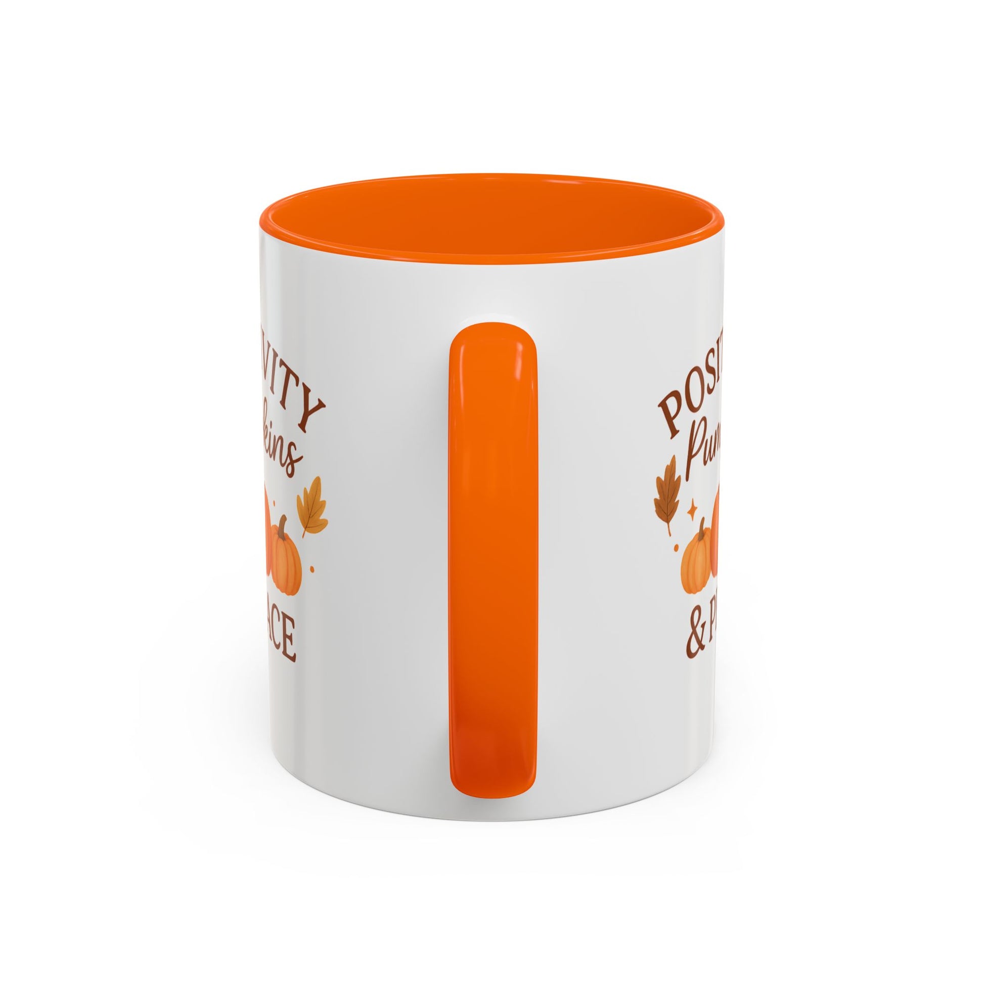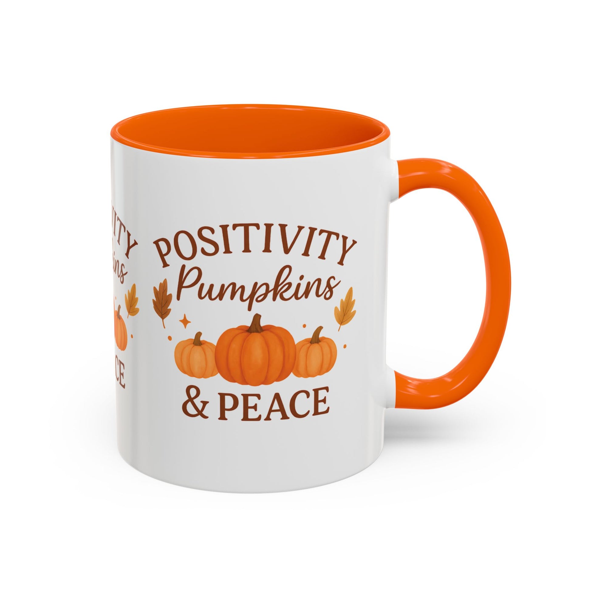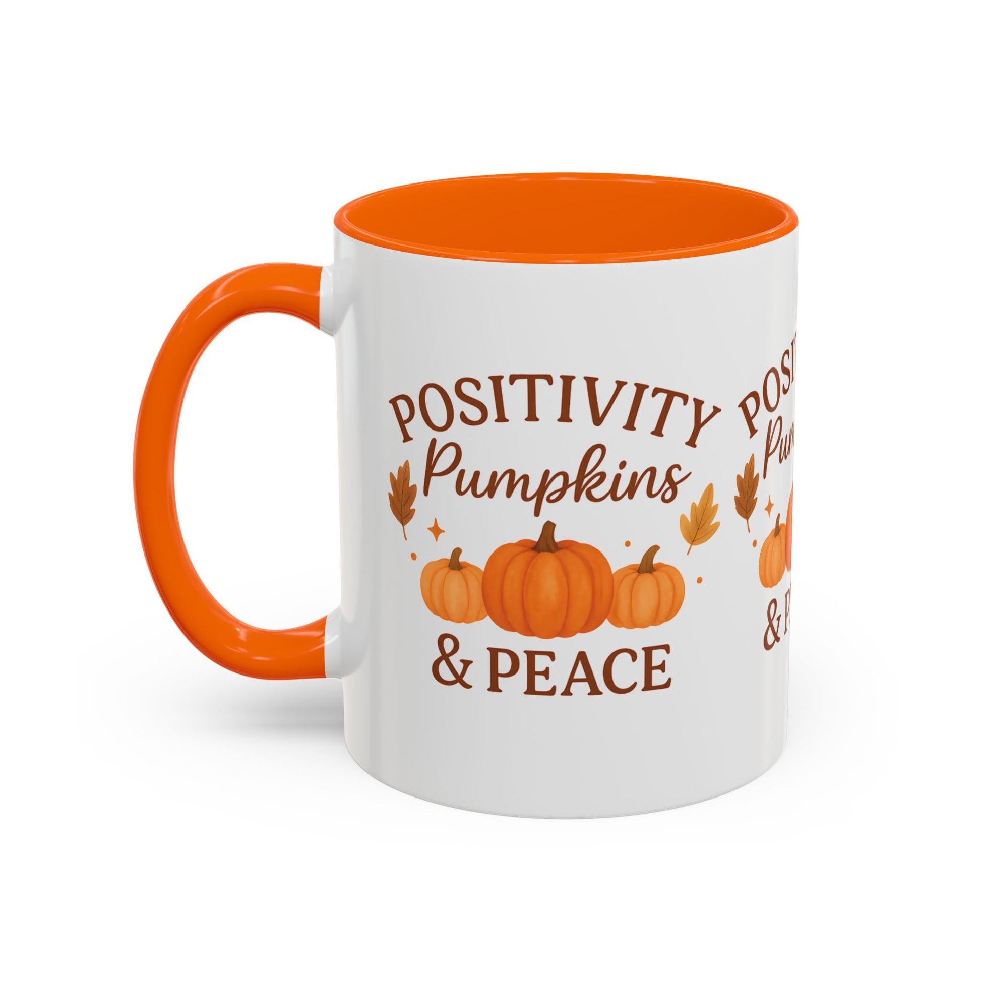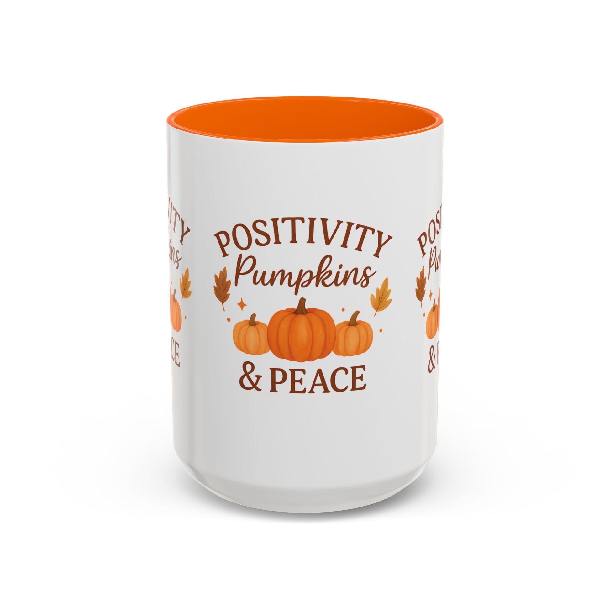 Positivity, Pumpkins & Peace Fall Mug – Autumn Coffee Cup in 11oz or 15oz | Microwave & Dishwasher Safe.