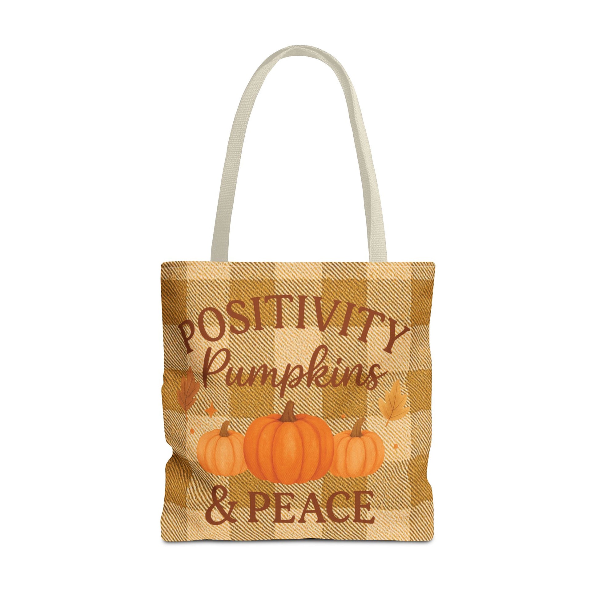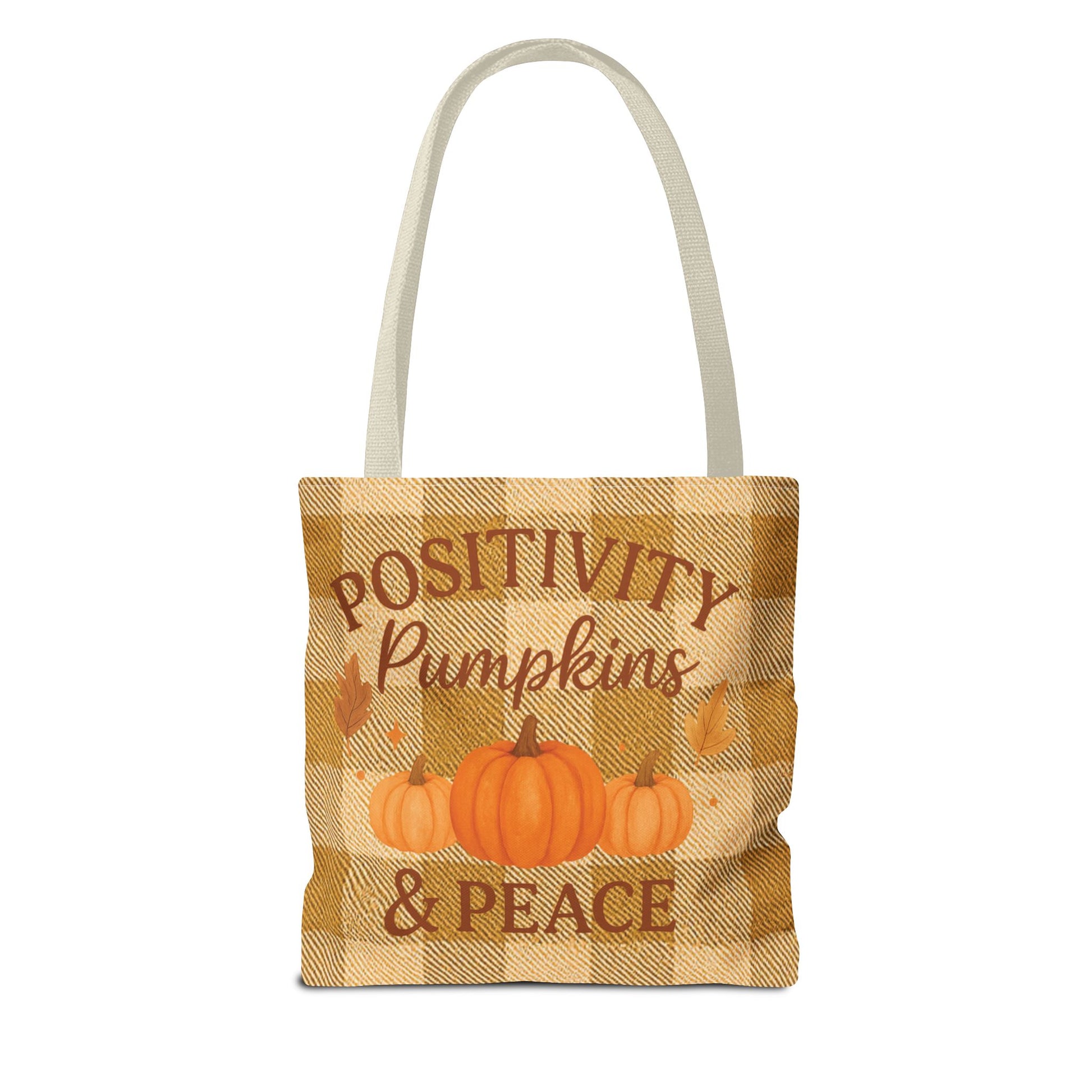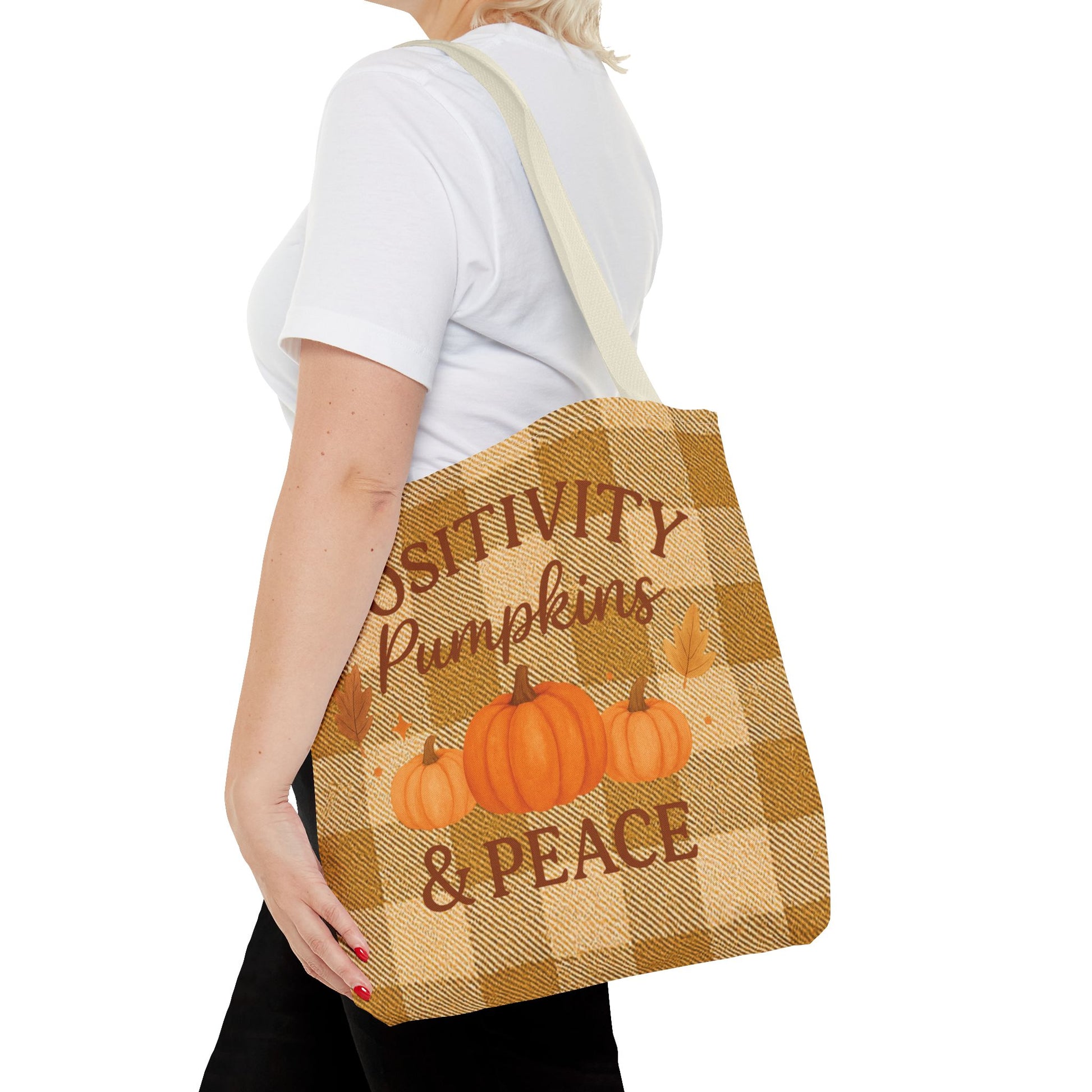 Positivity, Pumpkins & Peace Fall Tote Bag – Autumn Plaid Reusable Shopping & Everyday Carry Bag
