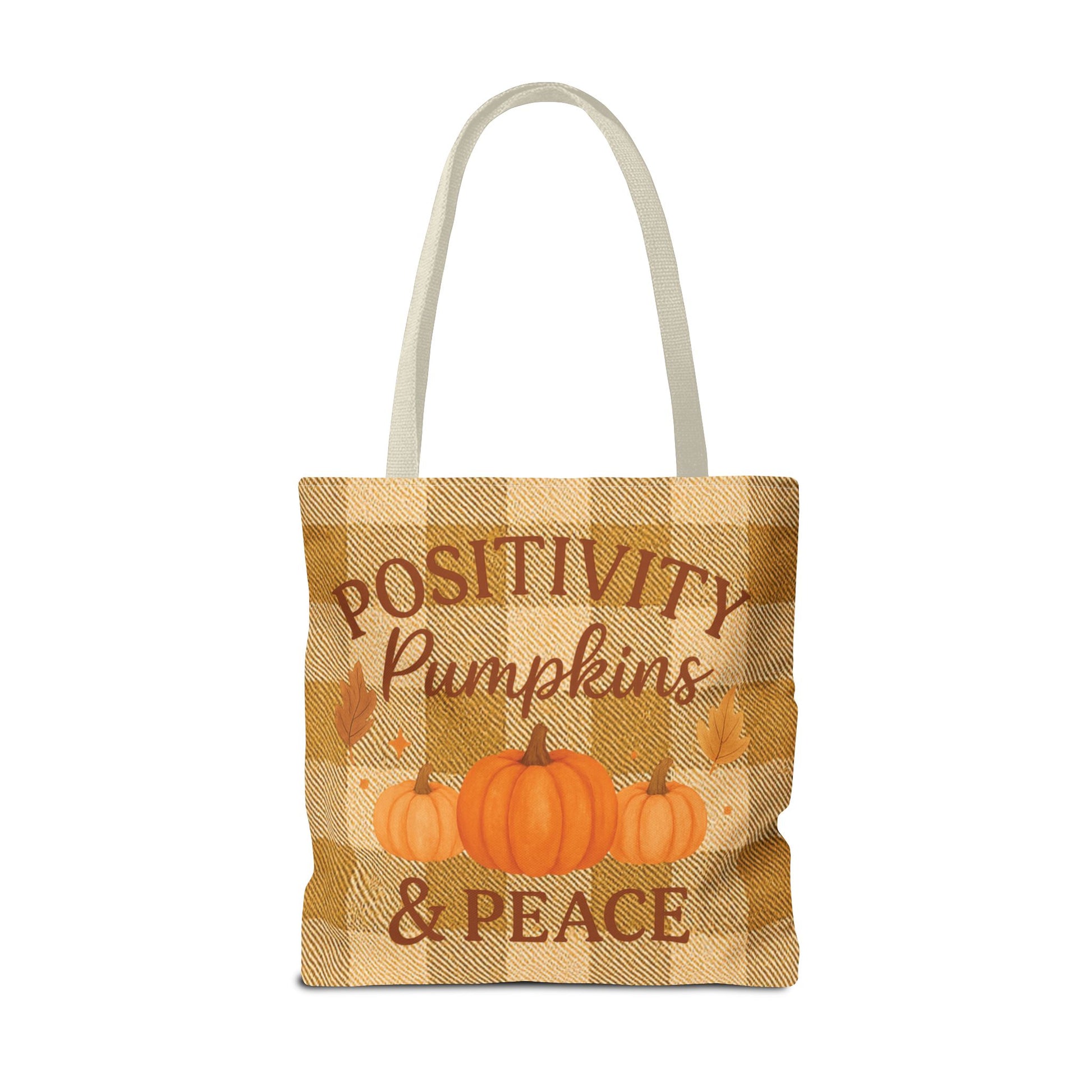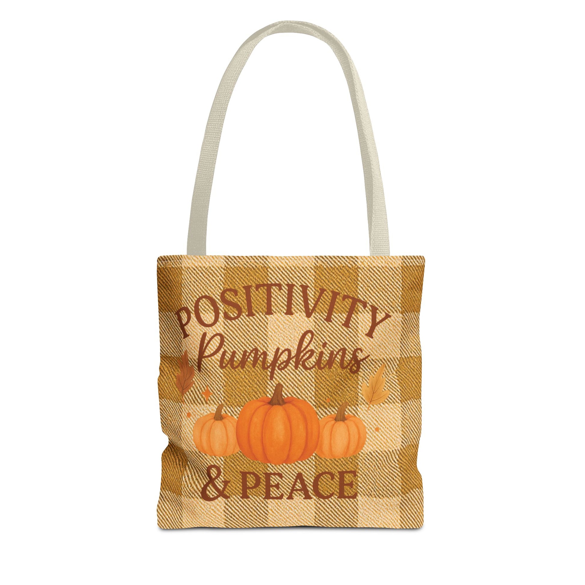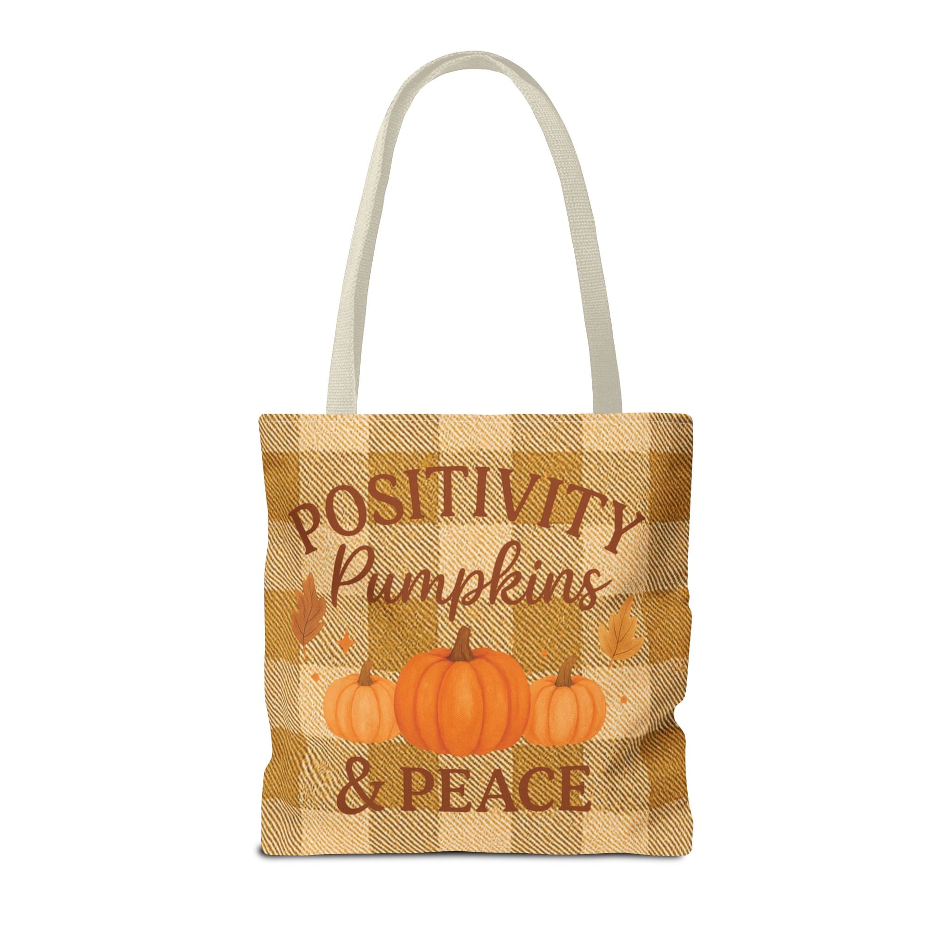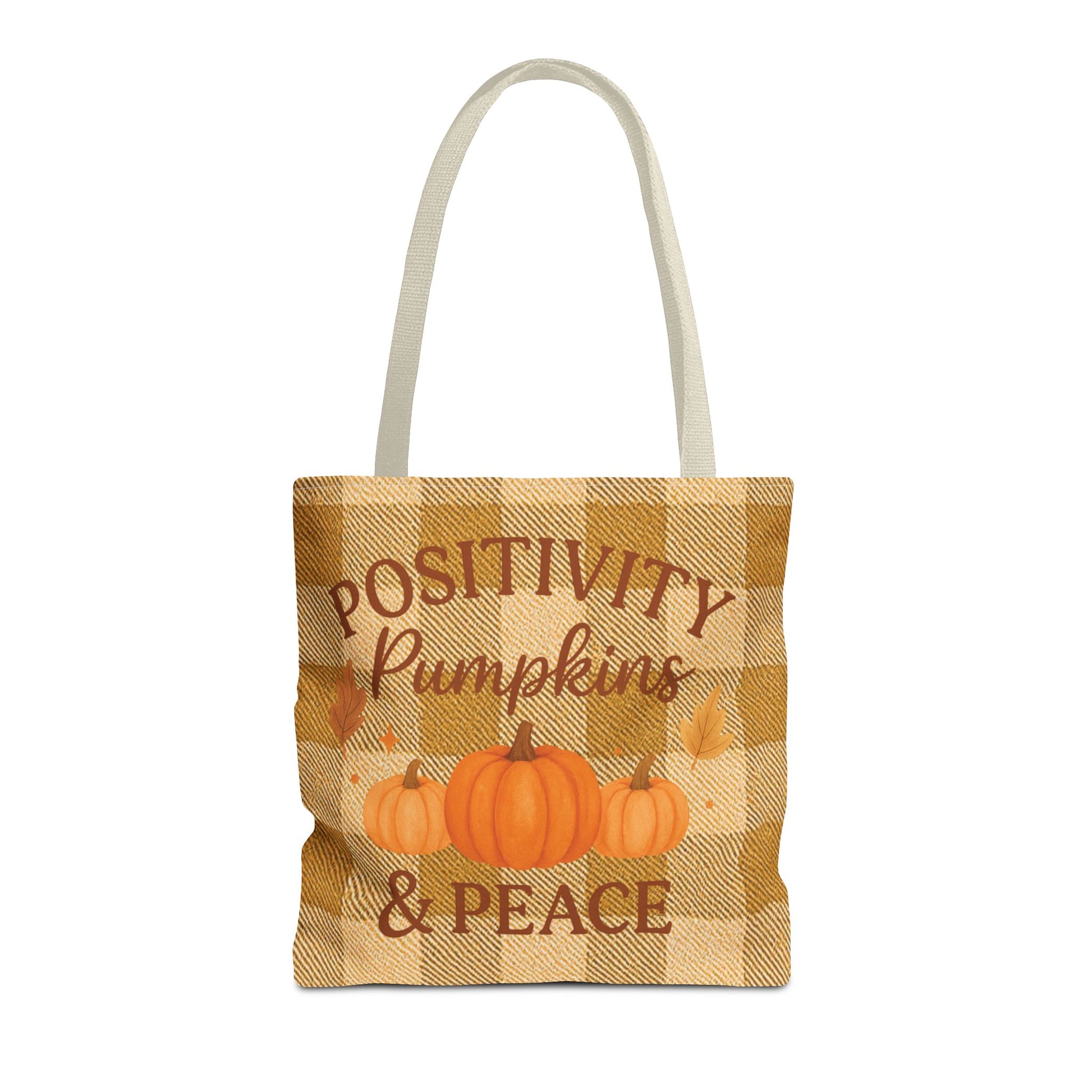 Positivity, Pumpkins & Peace Fall Tote Bag – Autumn Plaid Reusable Shopping & Everyday Carry Bag
