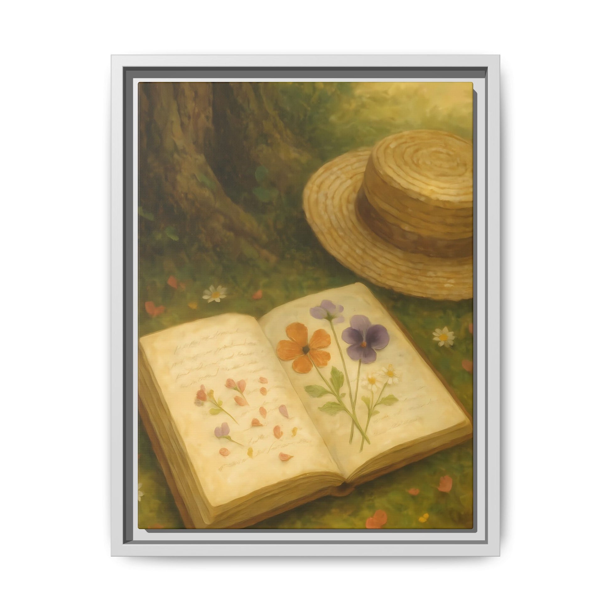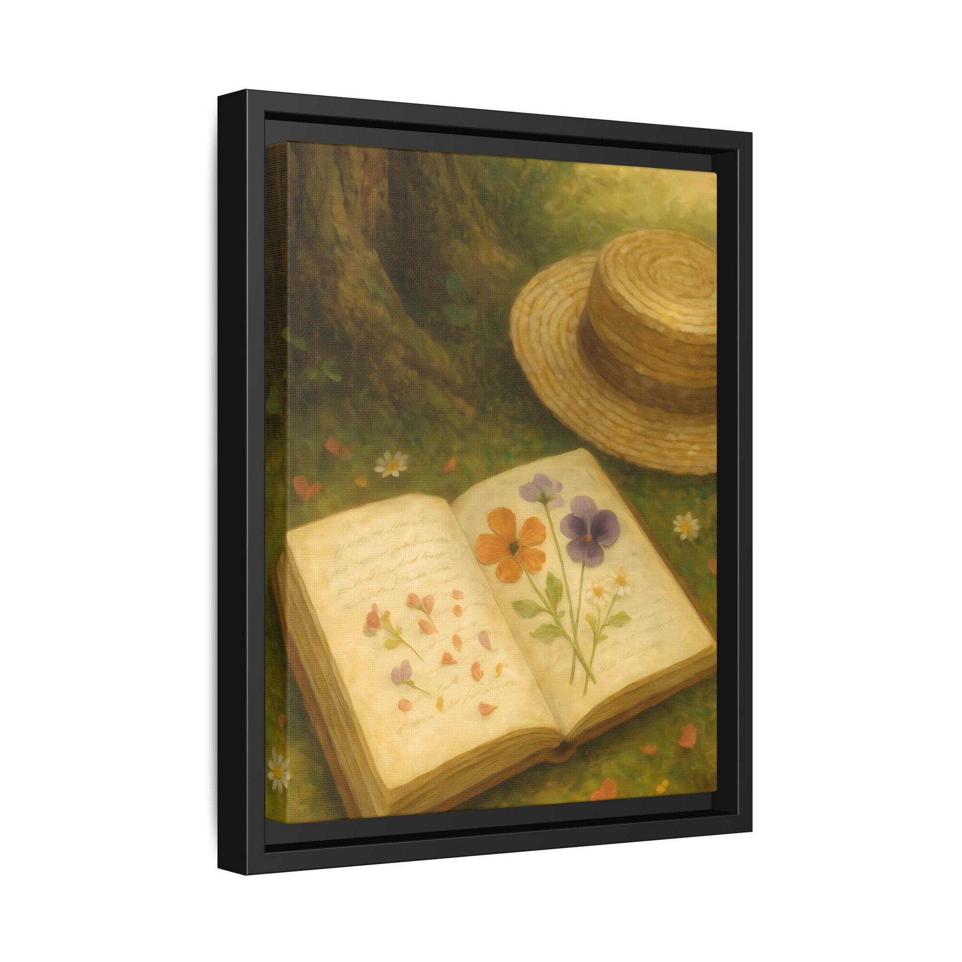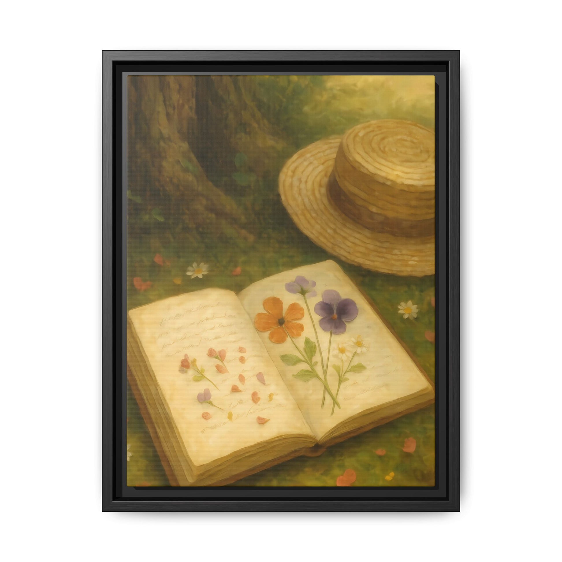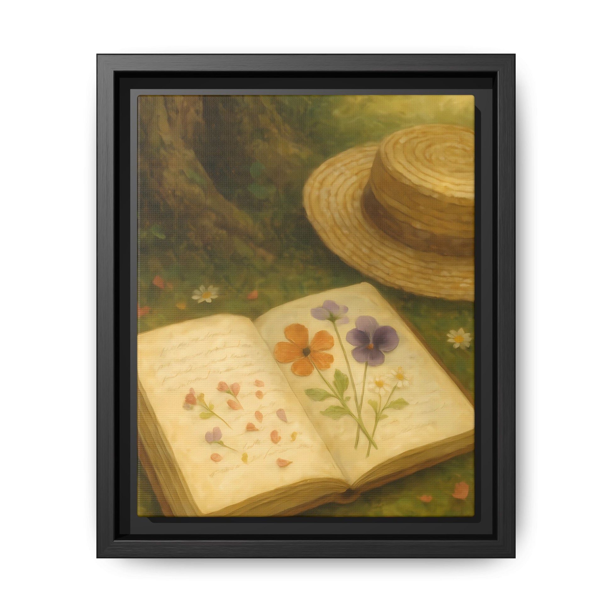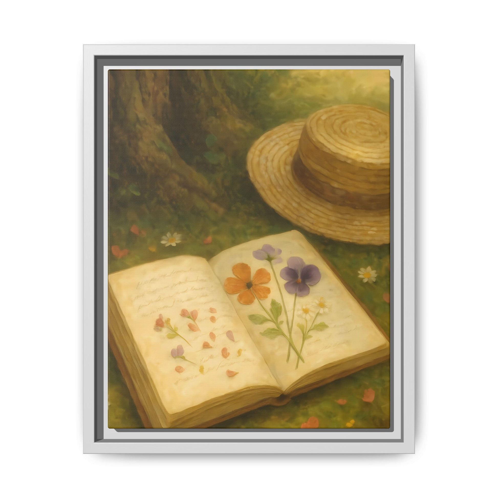 Pressed Flowers in the Shade – Framed Matte Canvas Nature Scene.