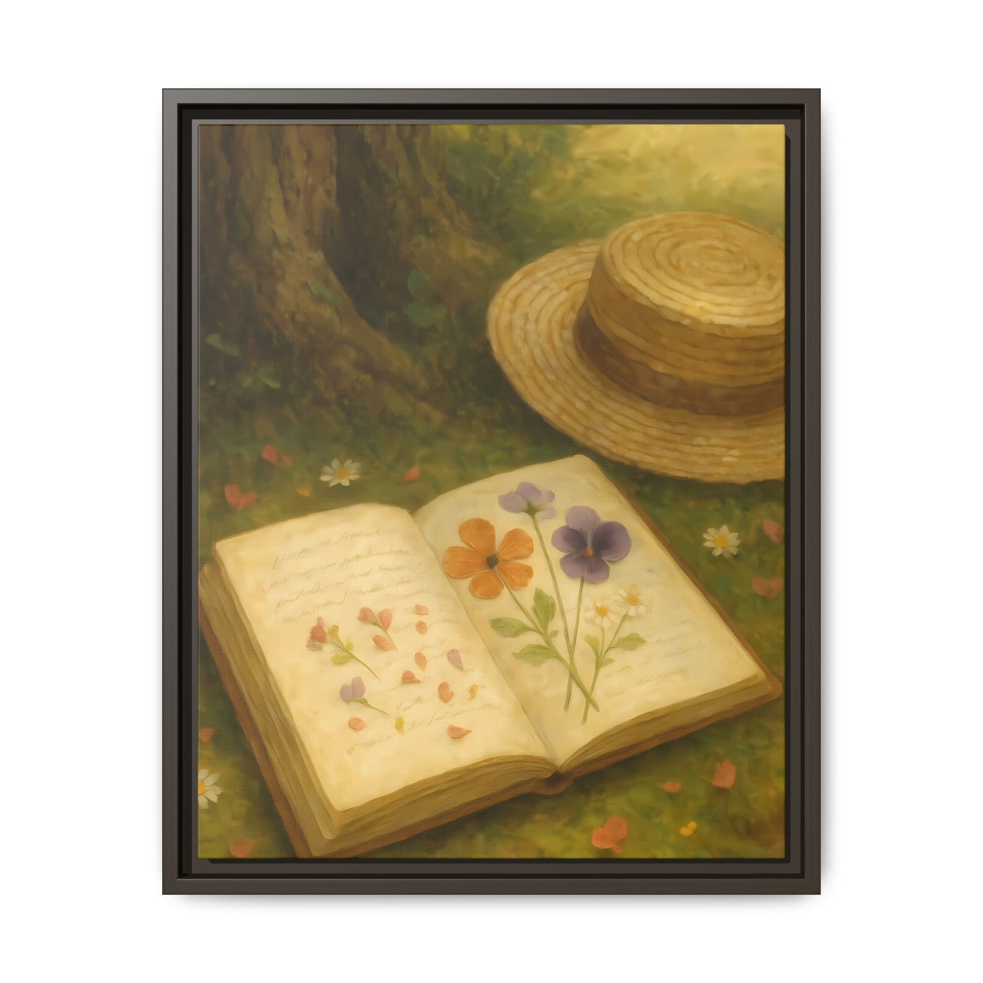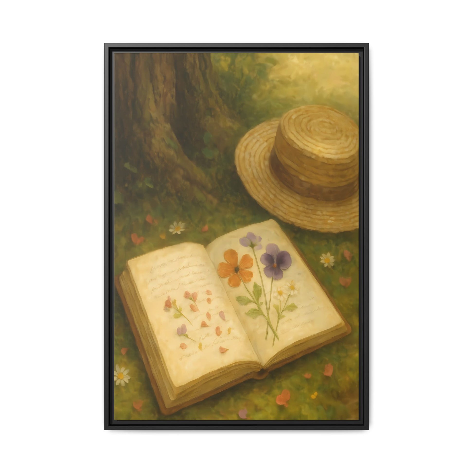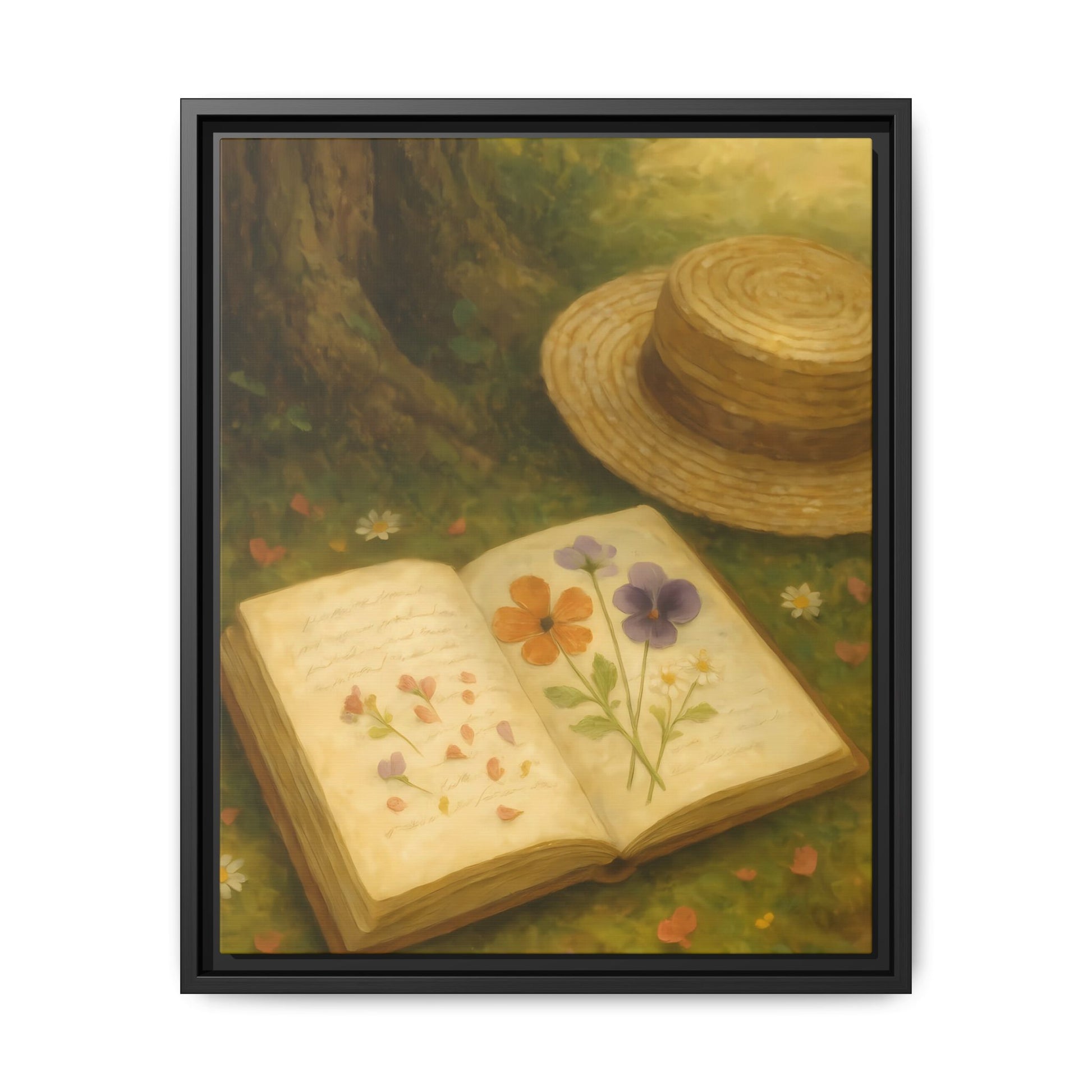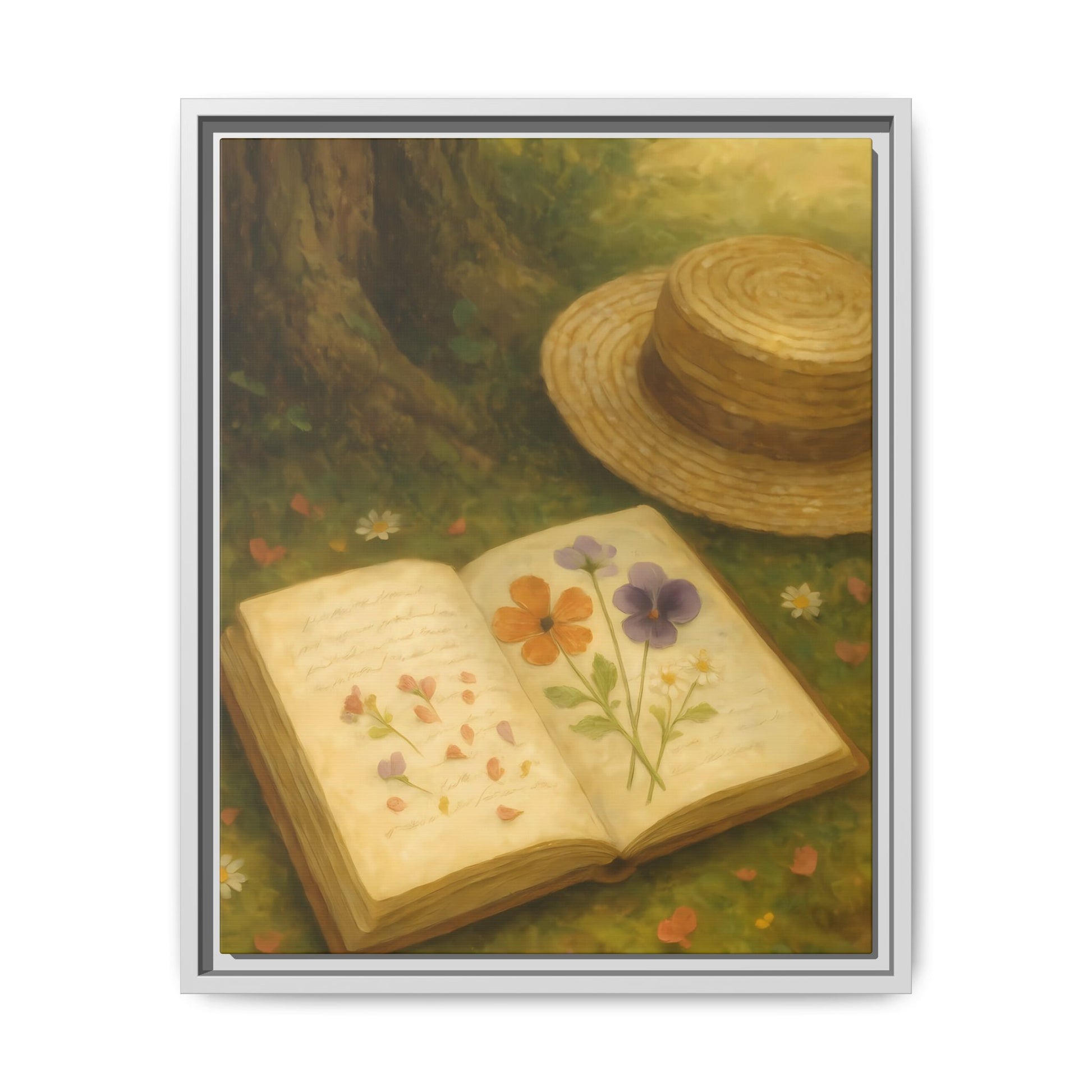 Pressed Flowers in the Shade – Framed Matte Canvas Nature Scene.