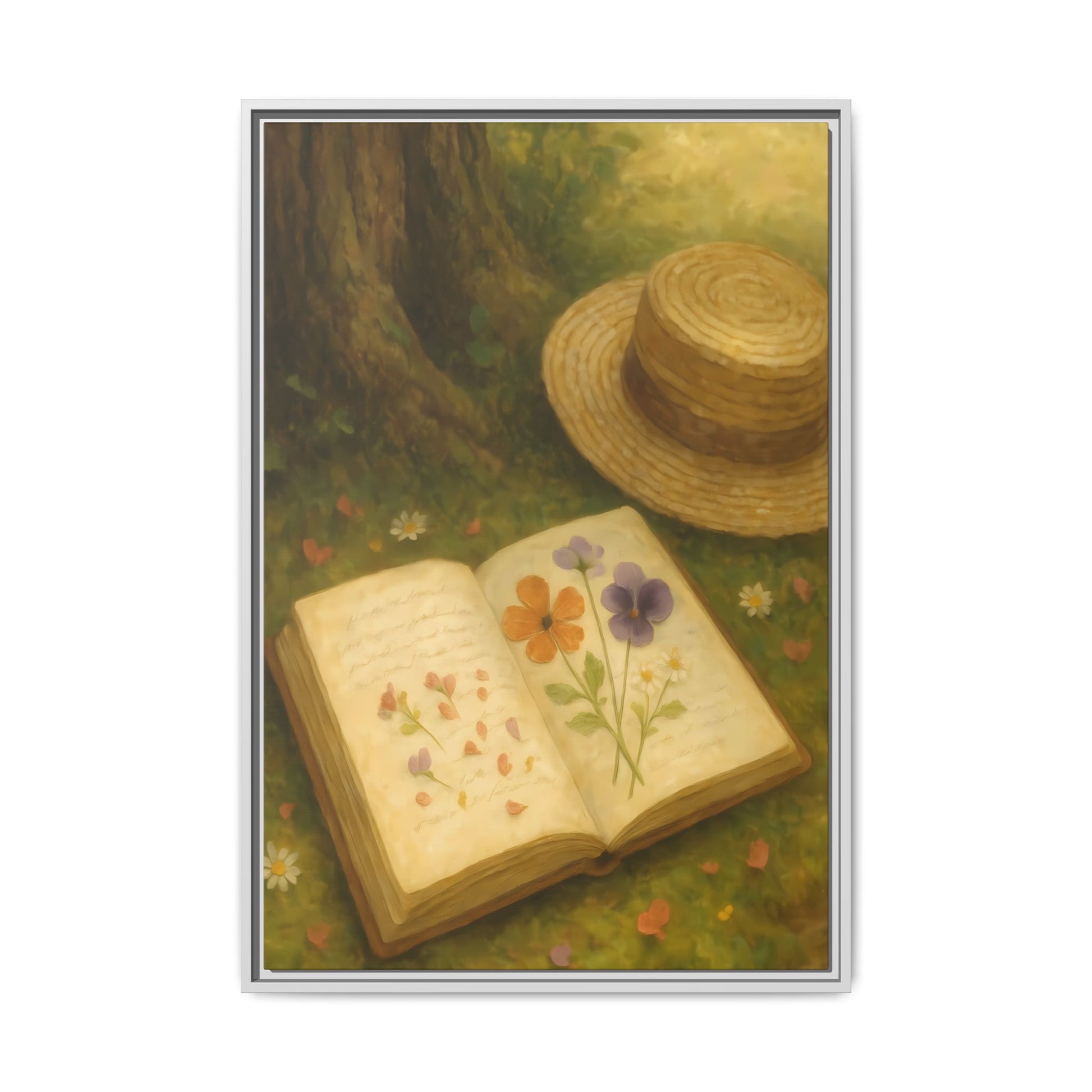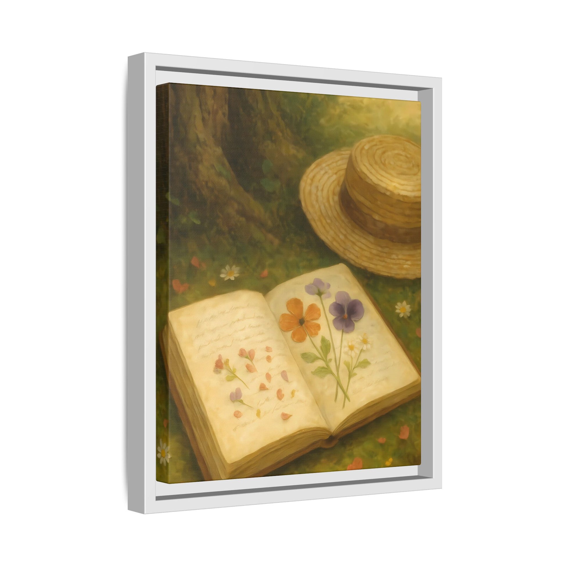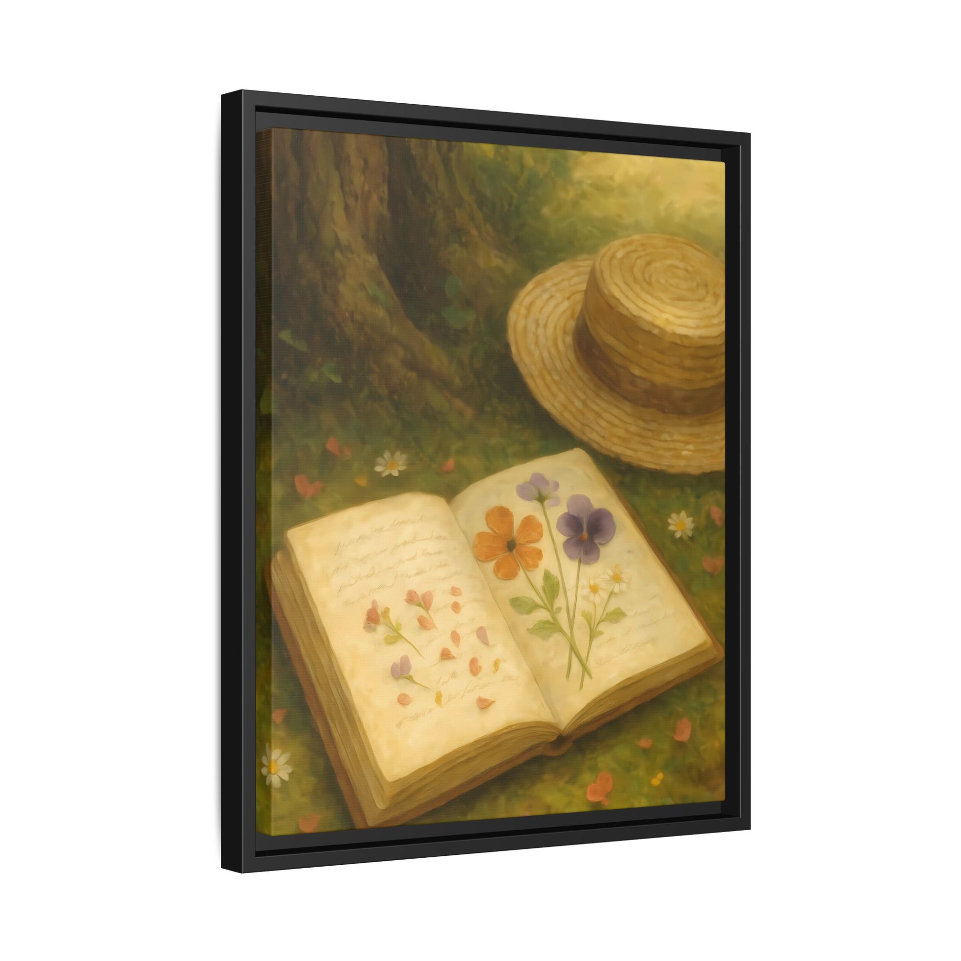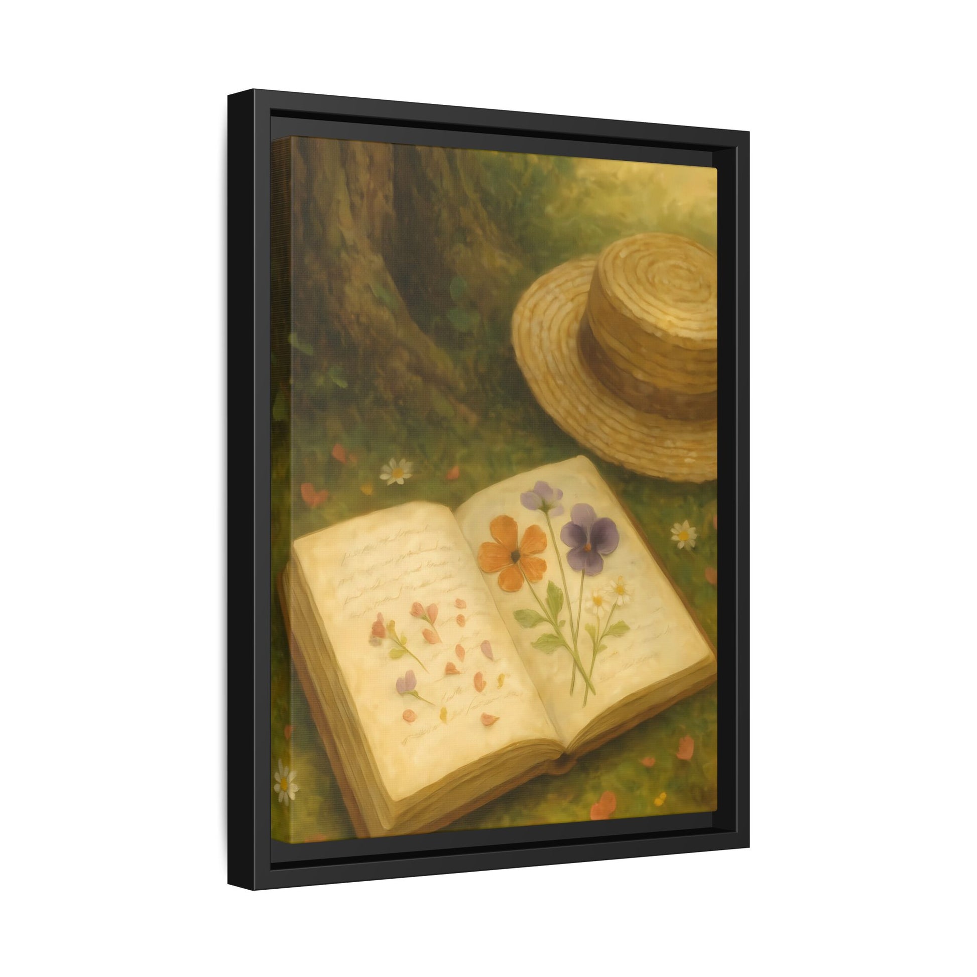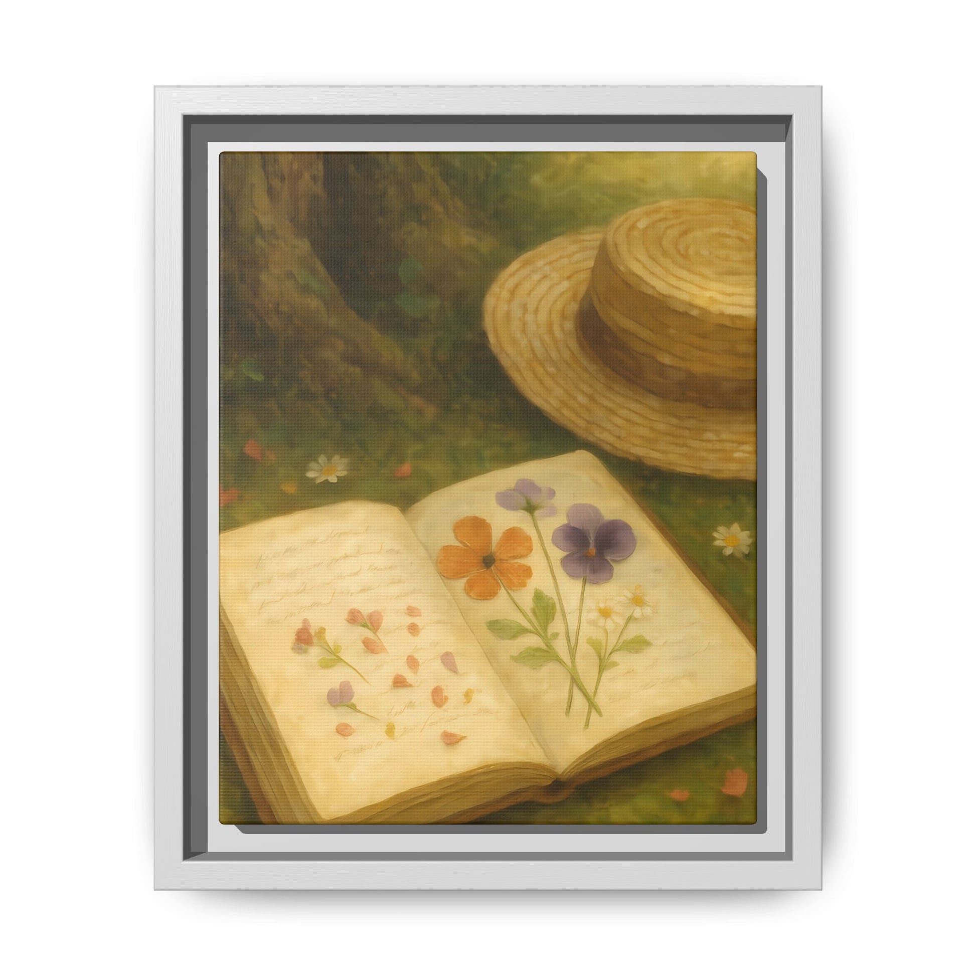 Pressed Flowers in the Shade – Framed Matte Canvas Nature Scene.