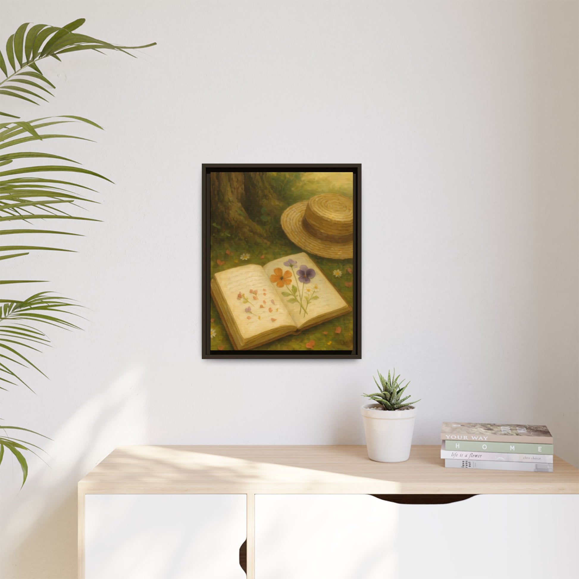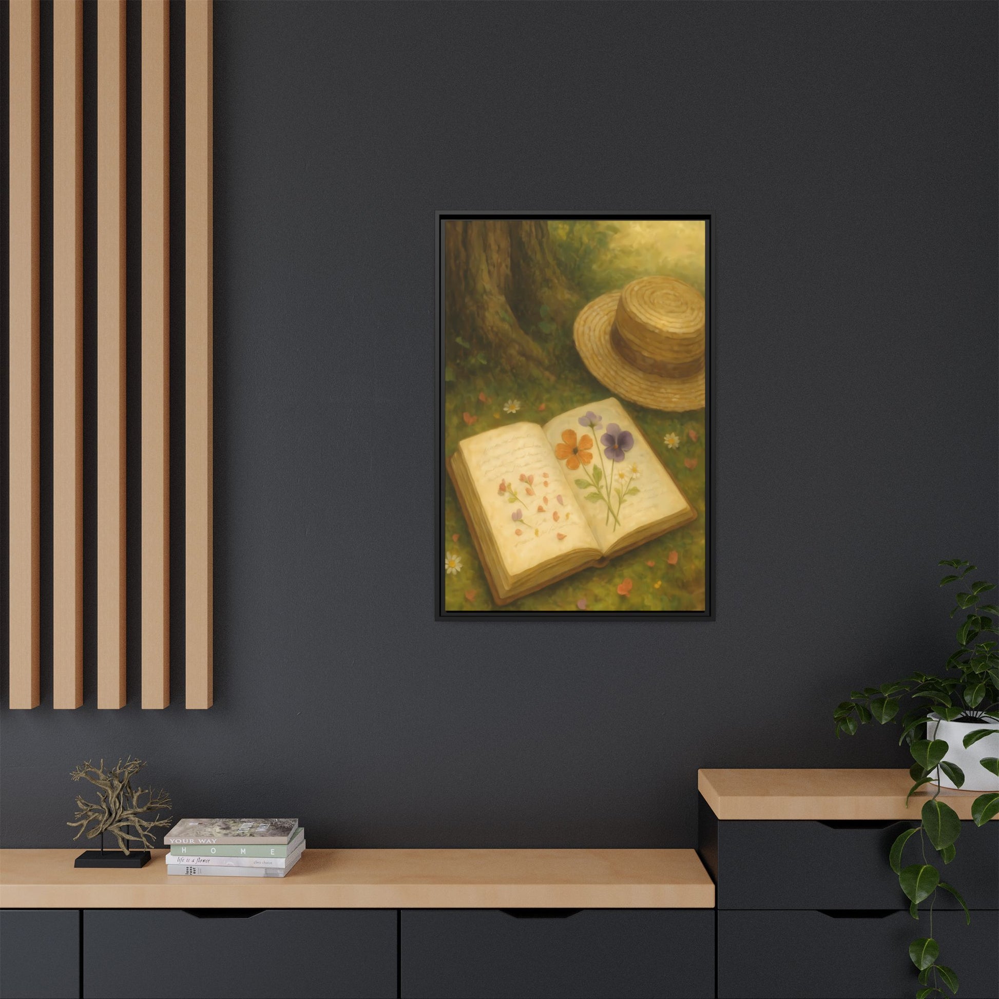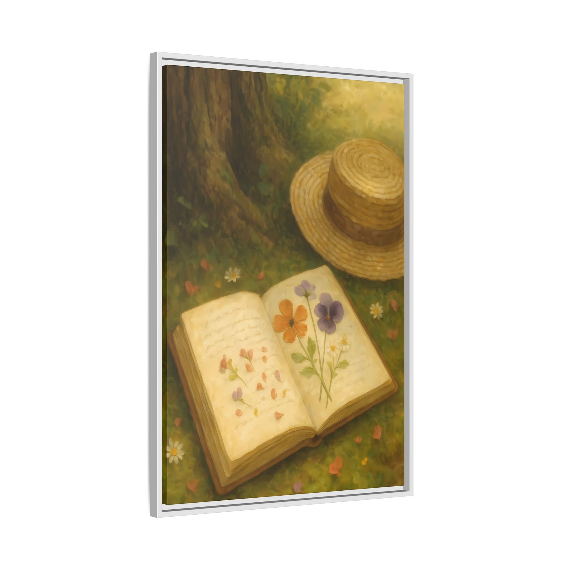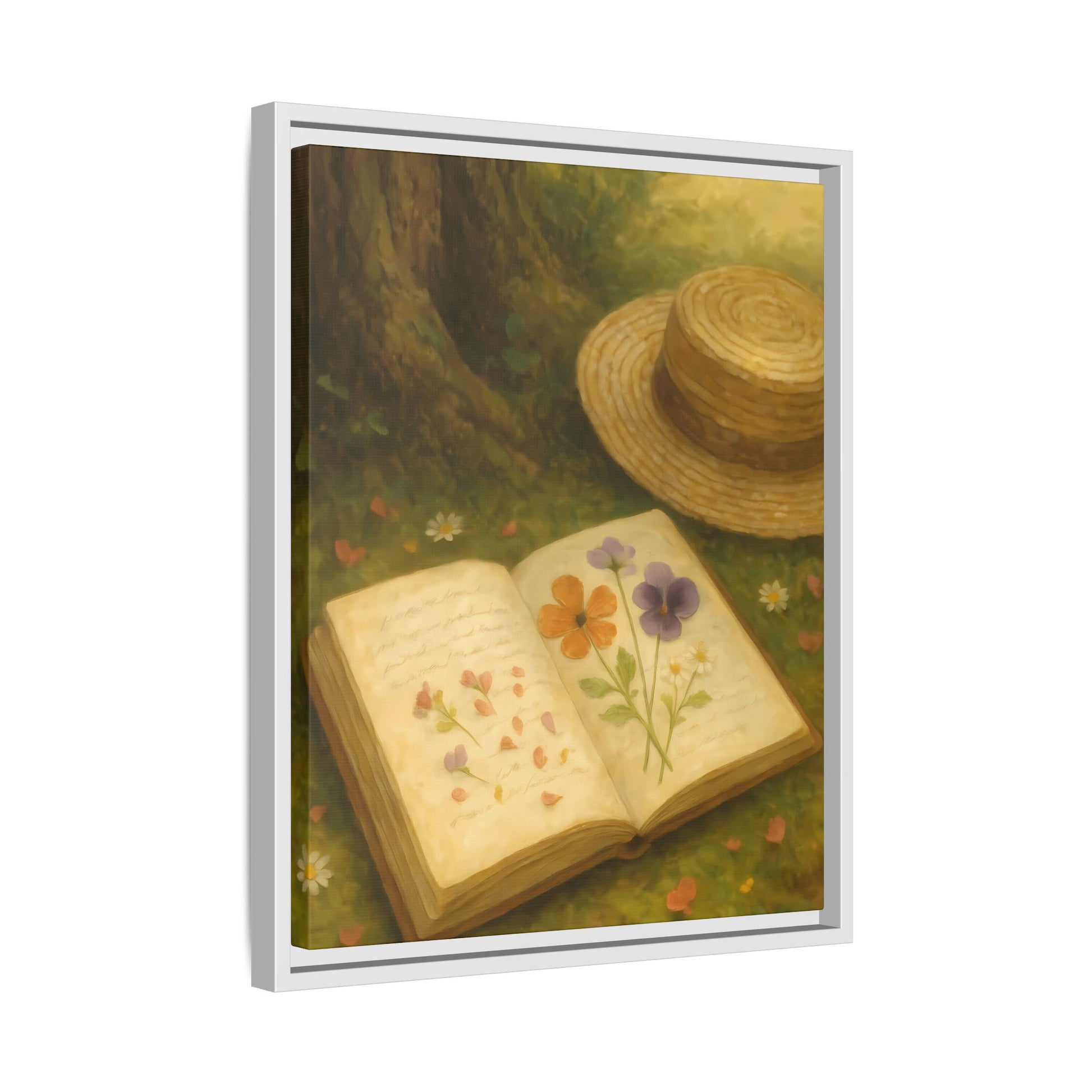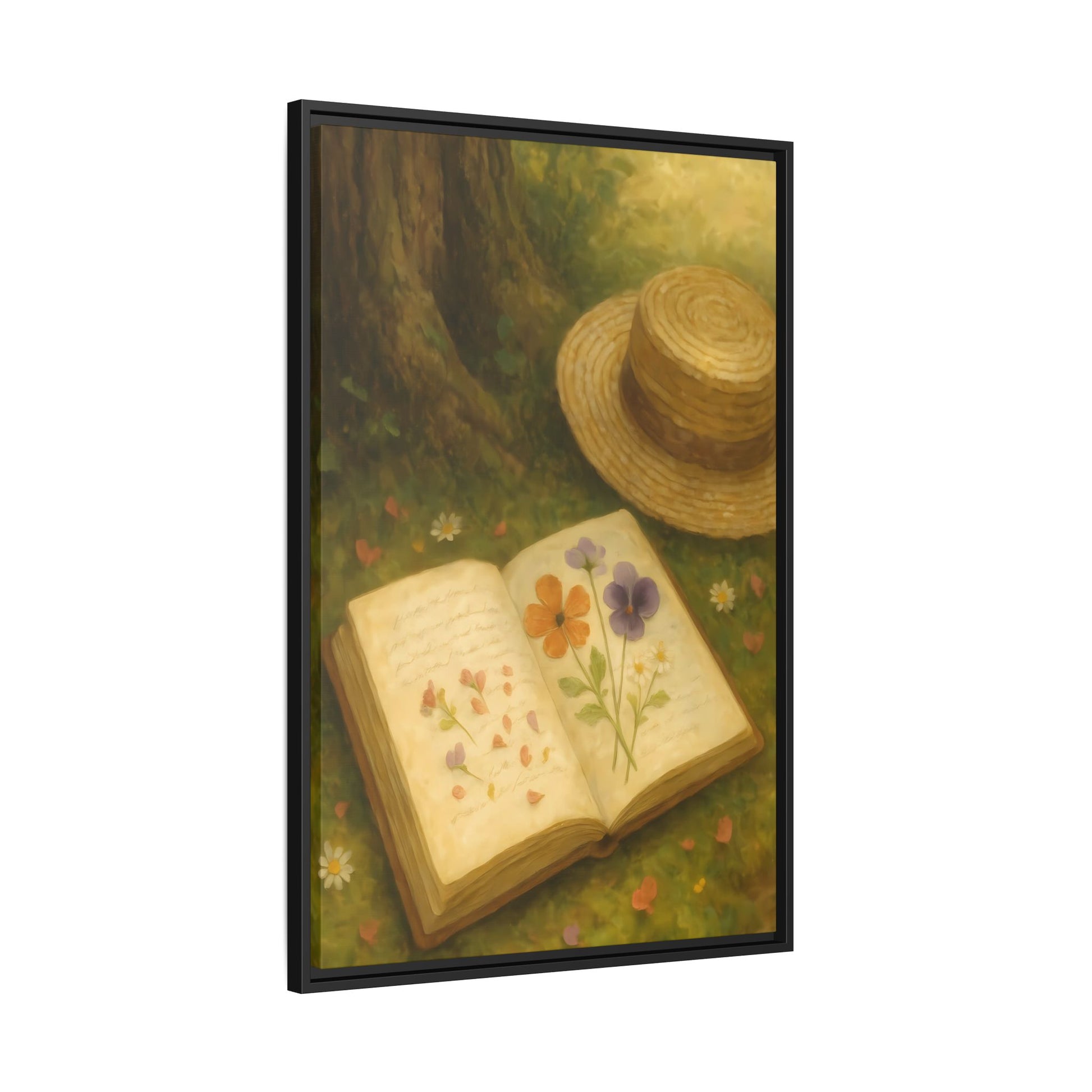 Pressed Flowers in the Shade – Framed Matte Canvas Nature Scene.