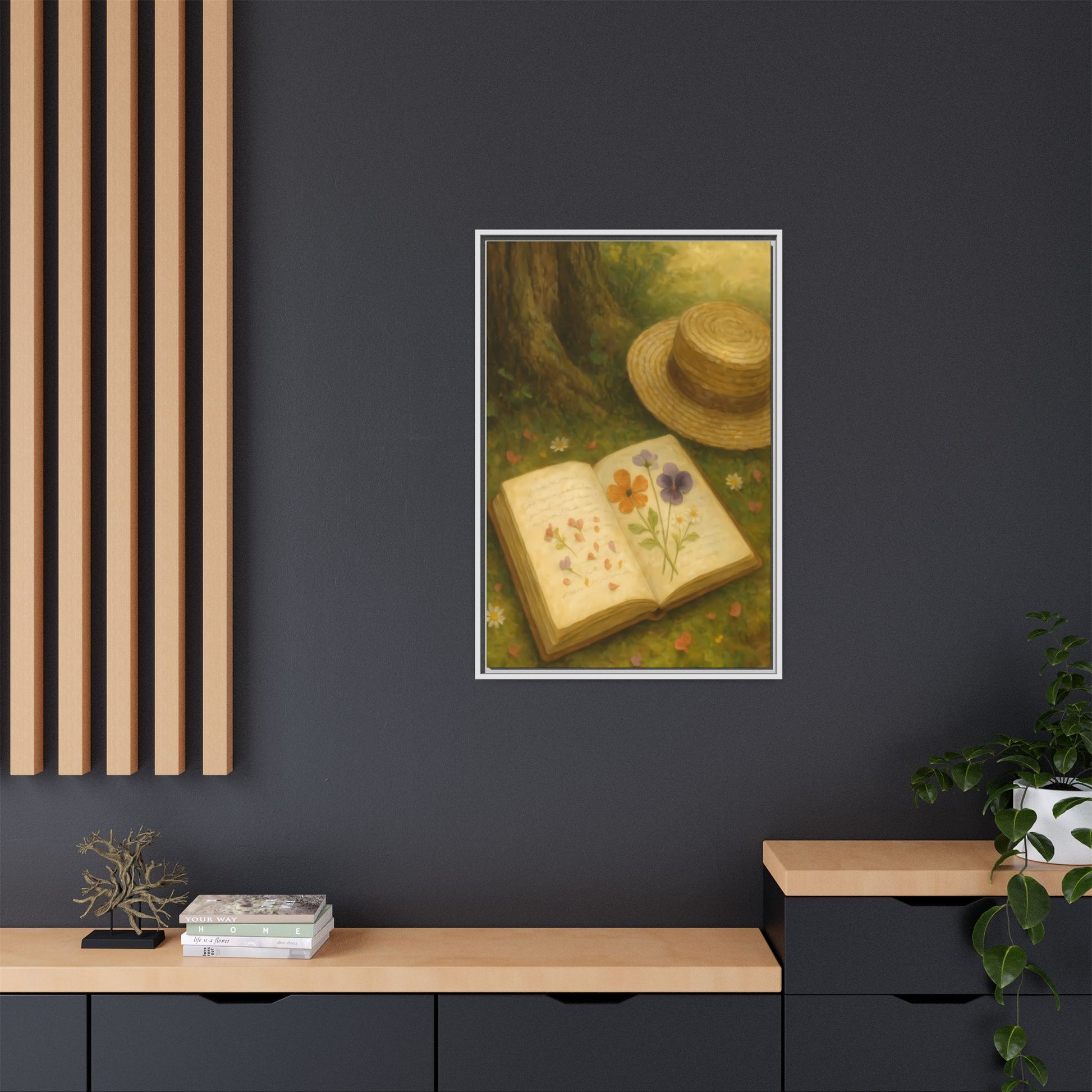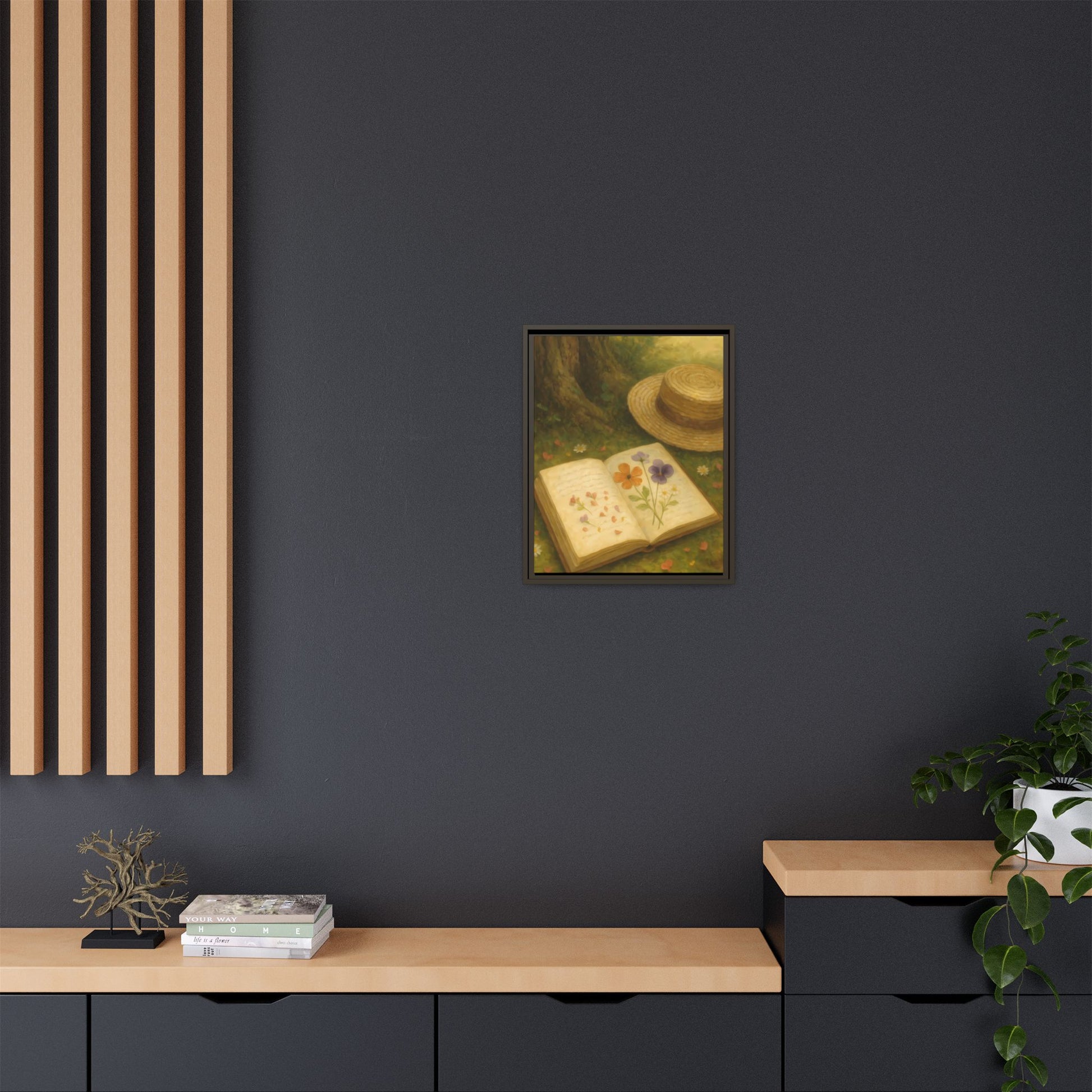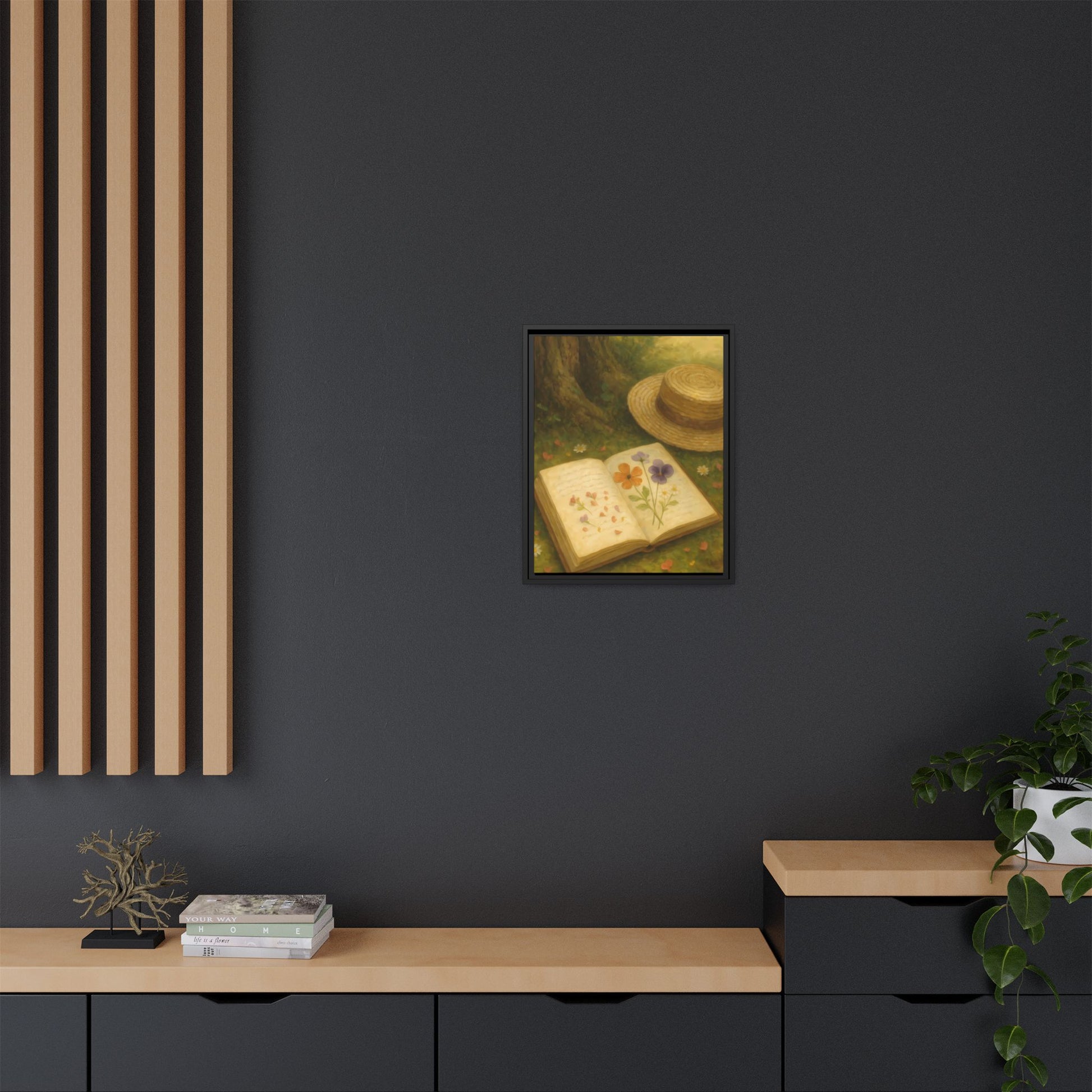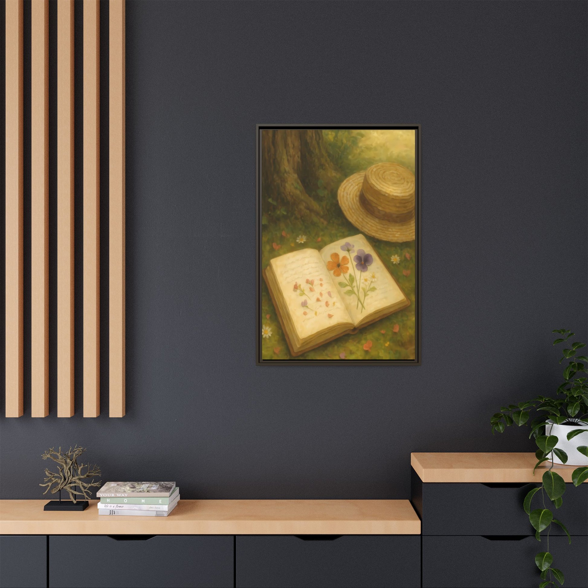 Pressed Flowers in the Shade – Framed Matte Canvas Nature Scene.