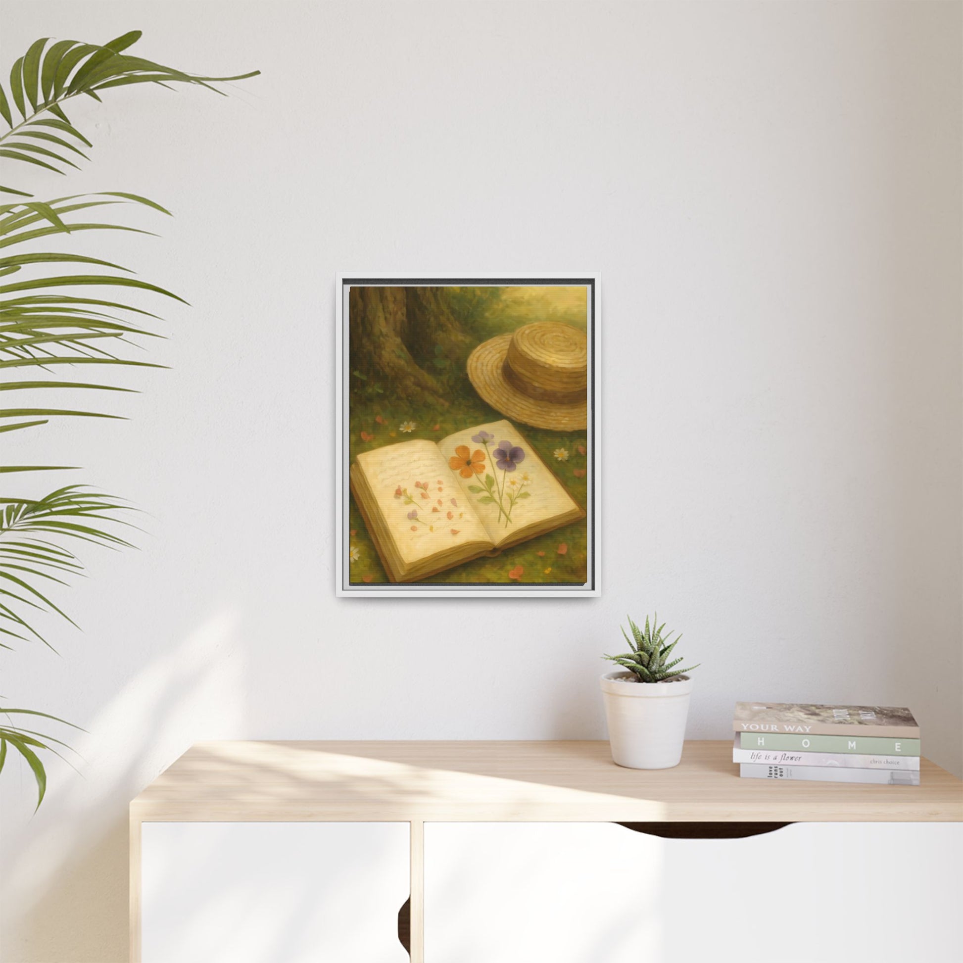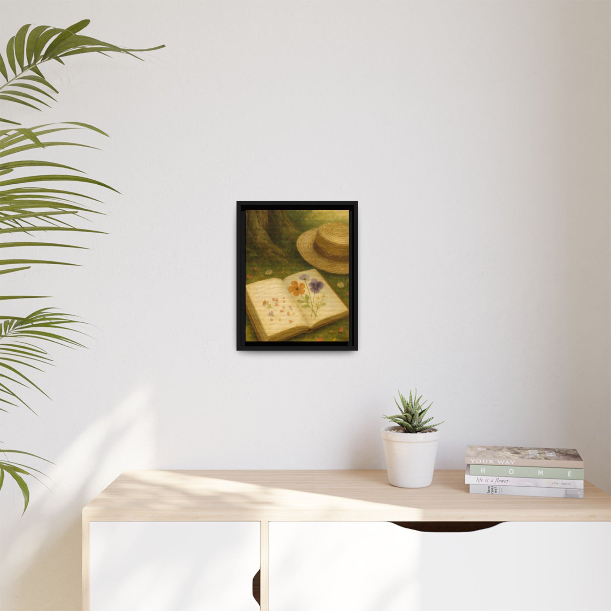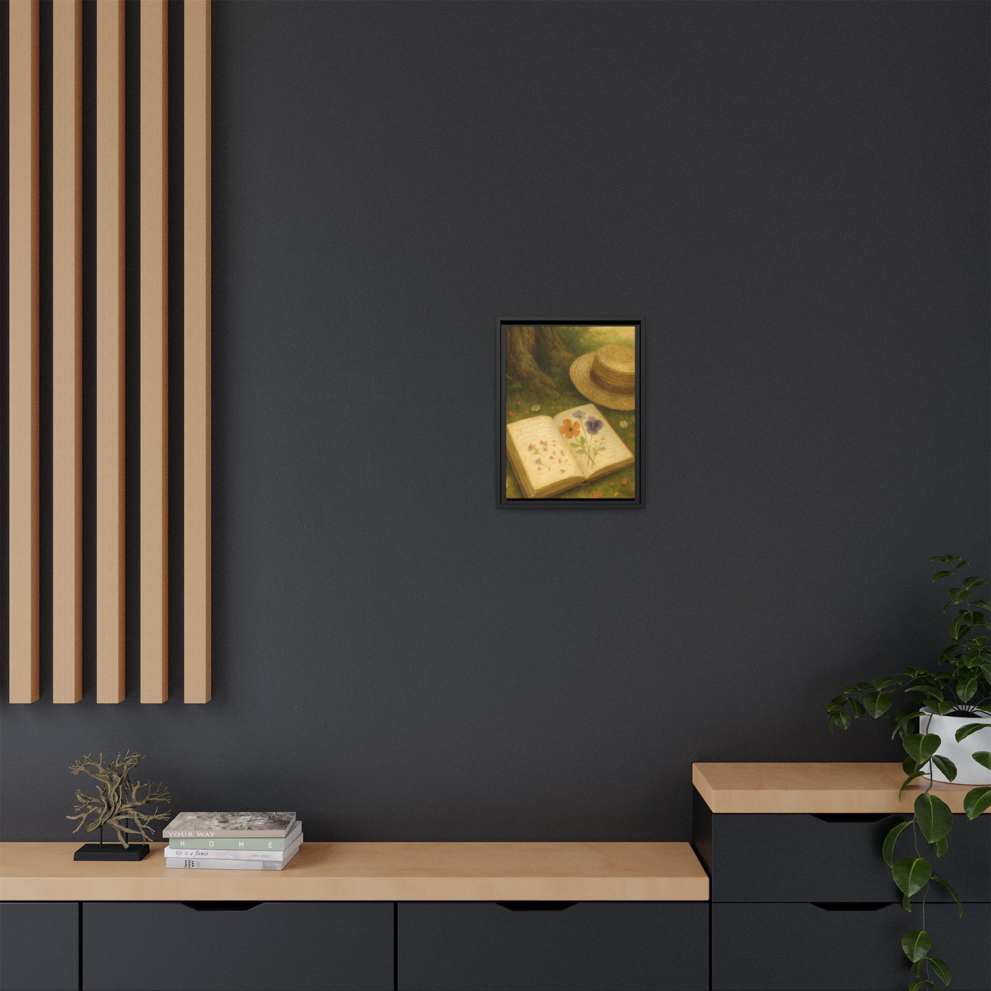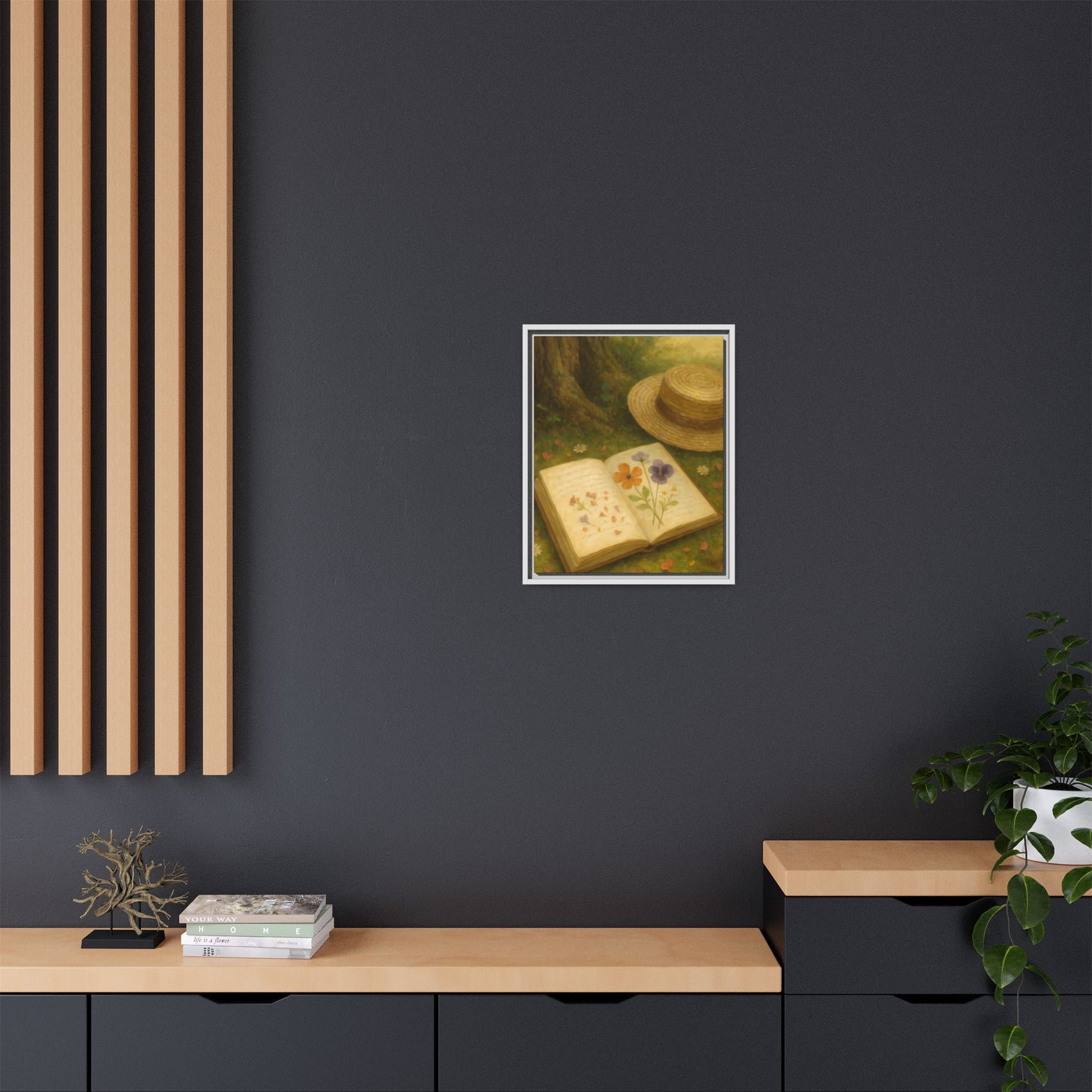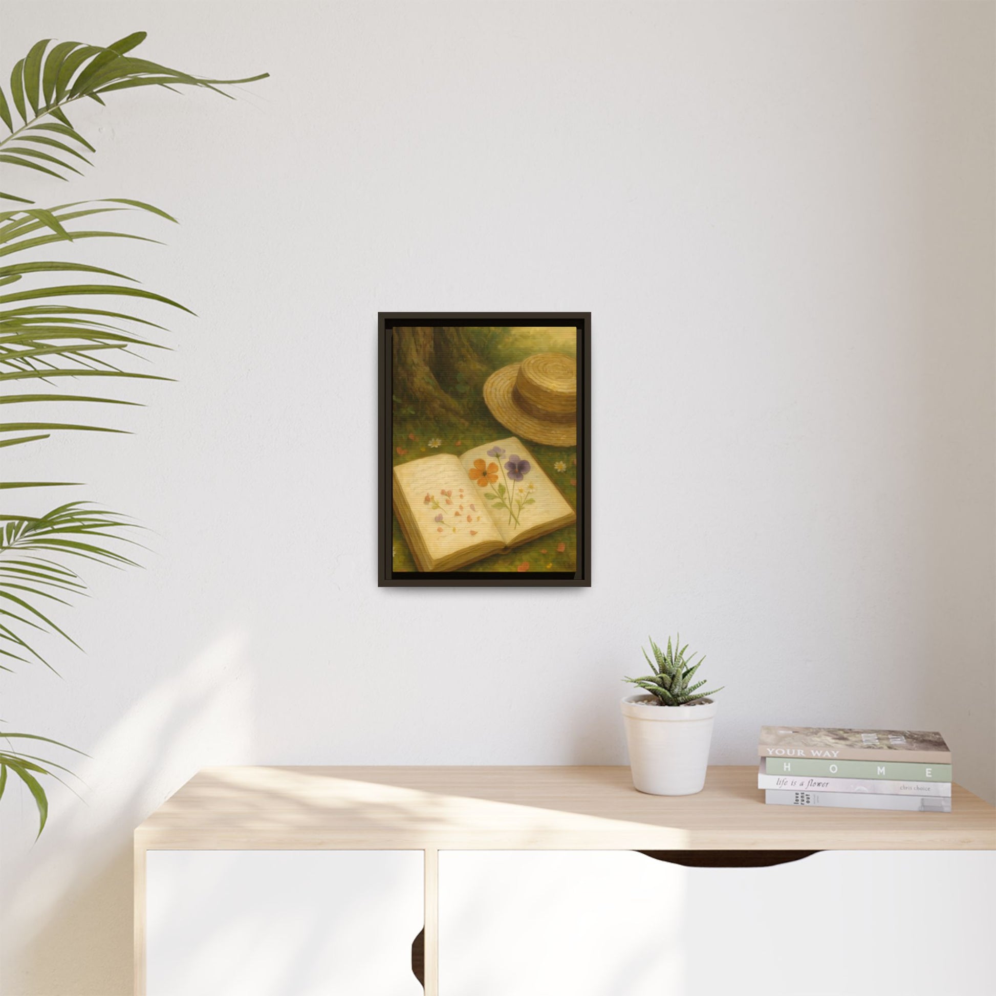 Pressed Flowers in the Shade – Framed Matte Canvas Nature Scene.