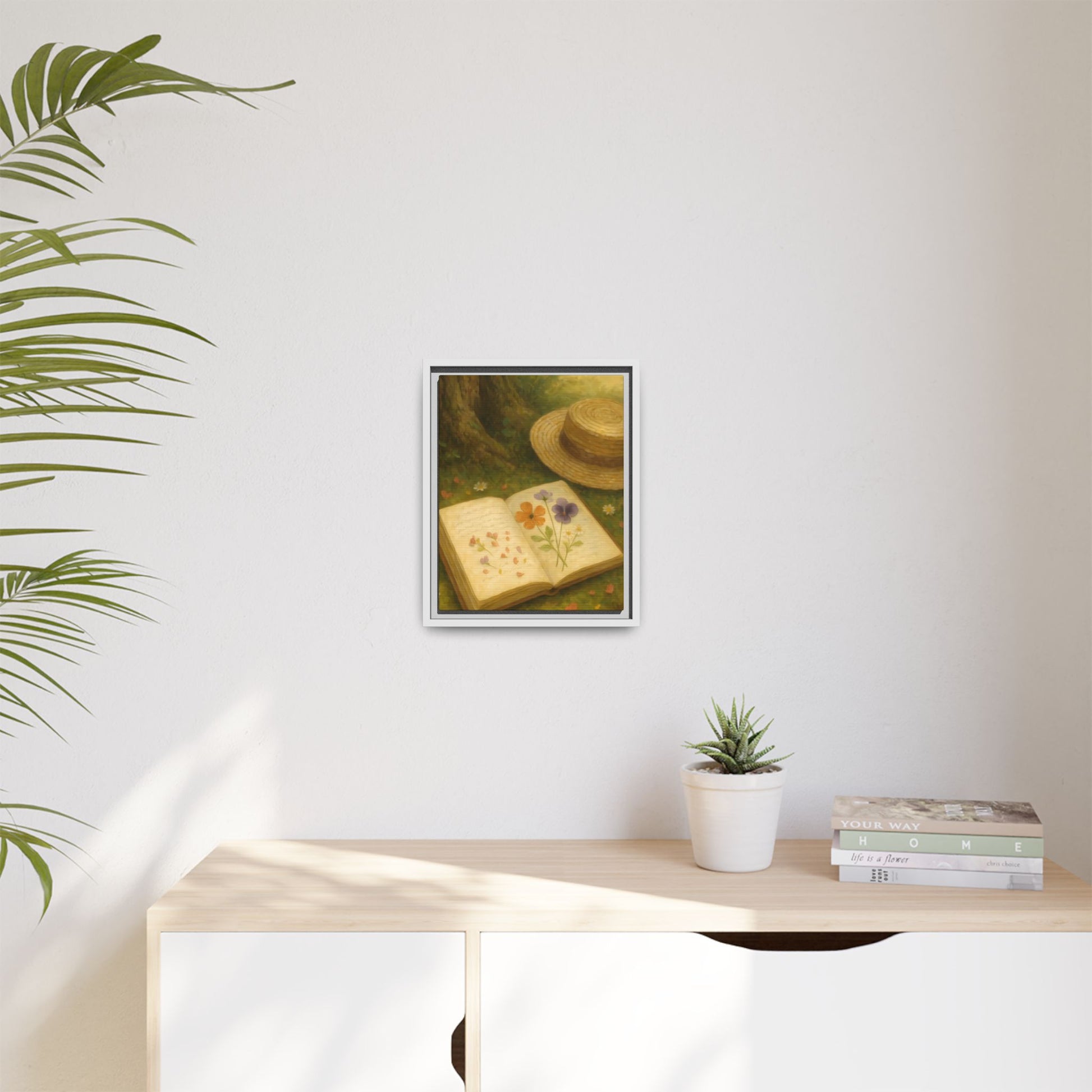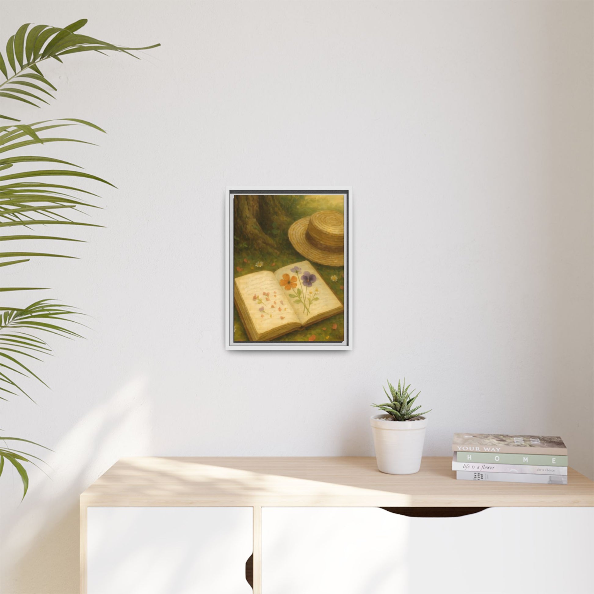 Bring the essence of slow living into your space with the Pressed Flowers in the Shade Framed Matte Canvas.