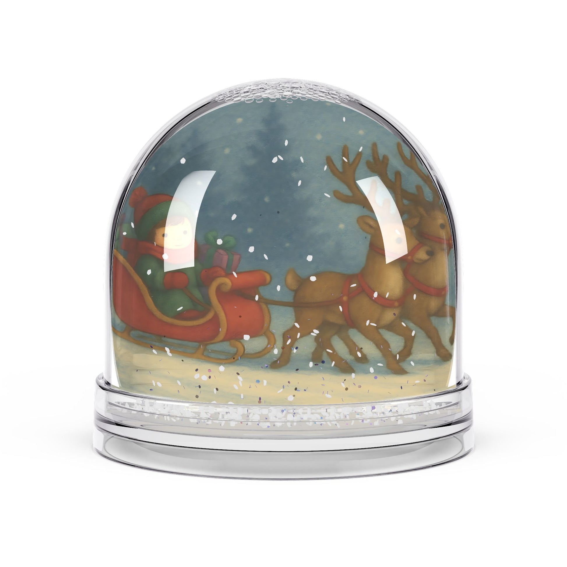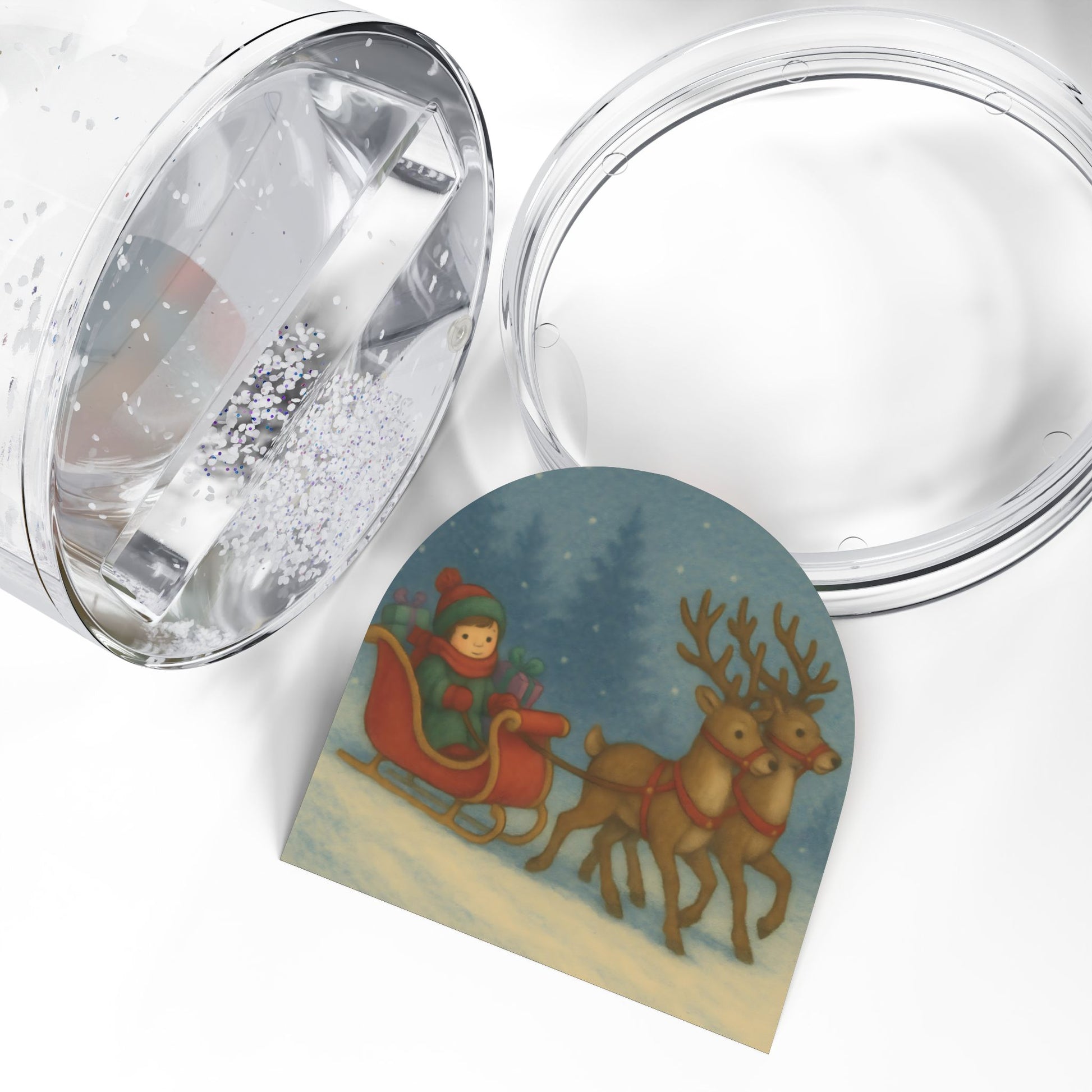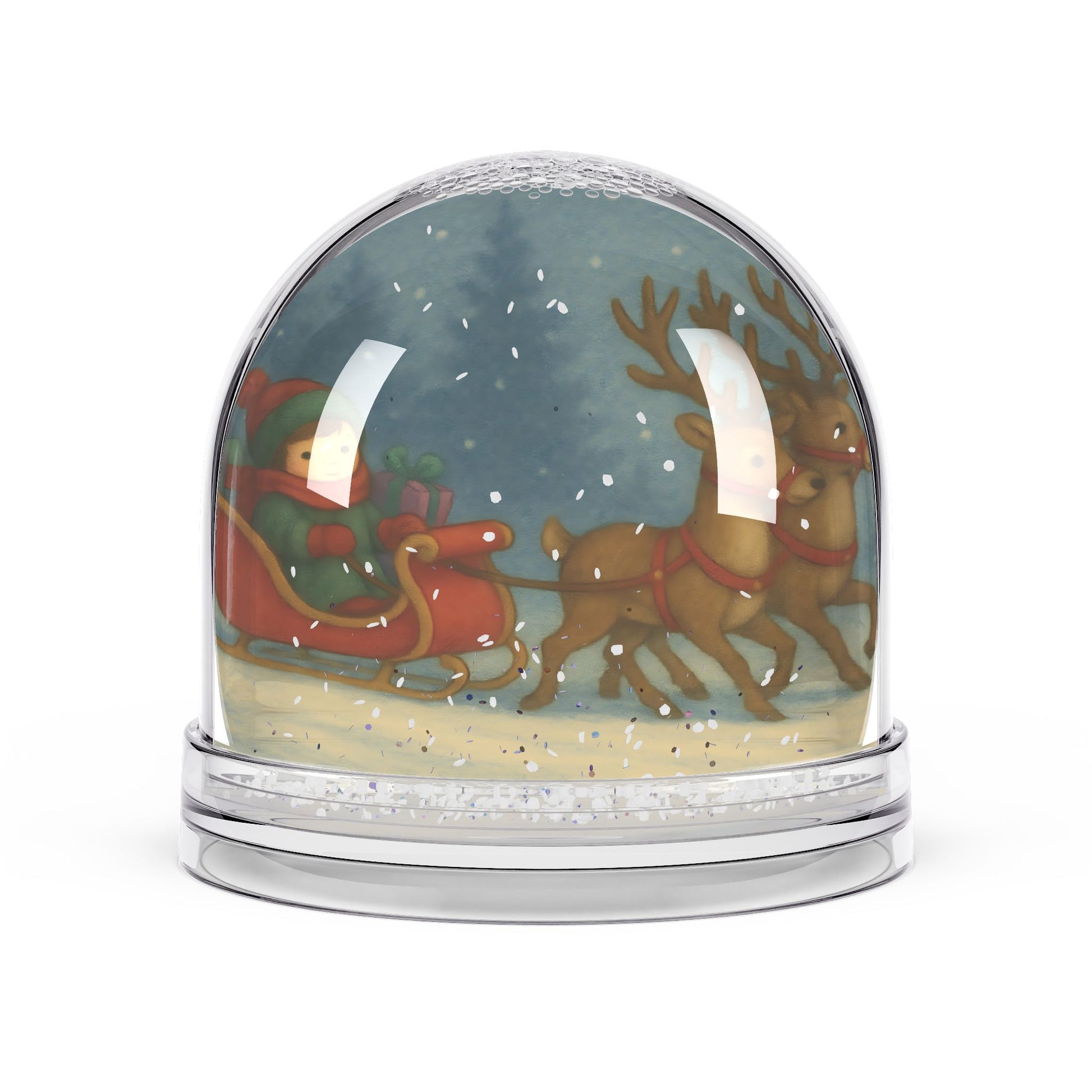Reindeer Sleigh Ride Snow Globe – Festive Winter Scene with Two-Sided Print.