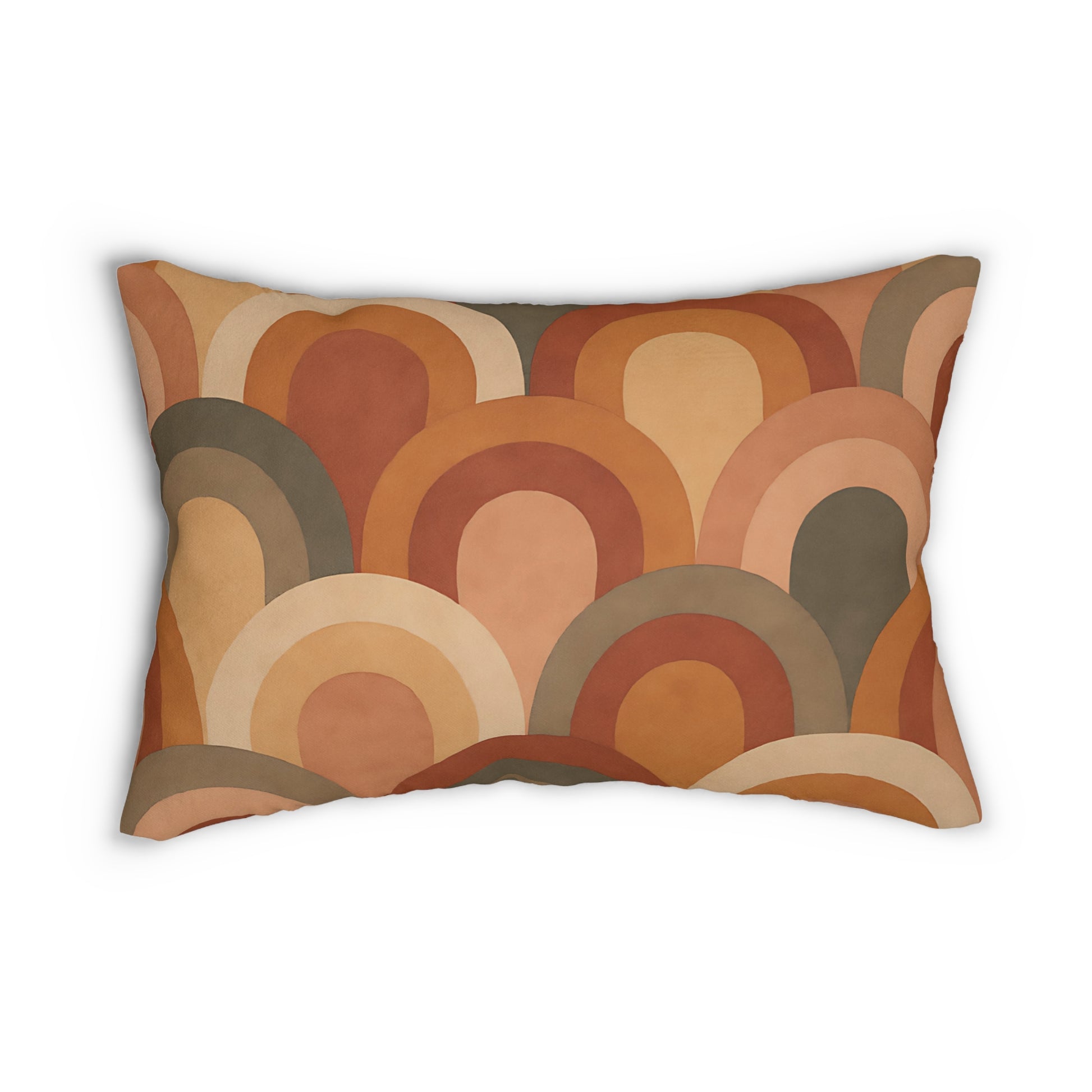 Retro Arch Lumbar Pillow – Warm Earth Tones Boho Cushion.