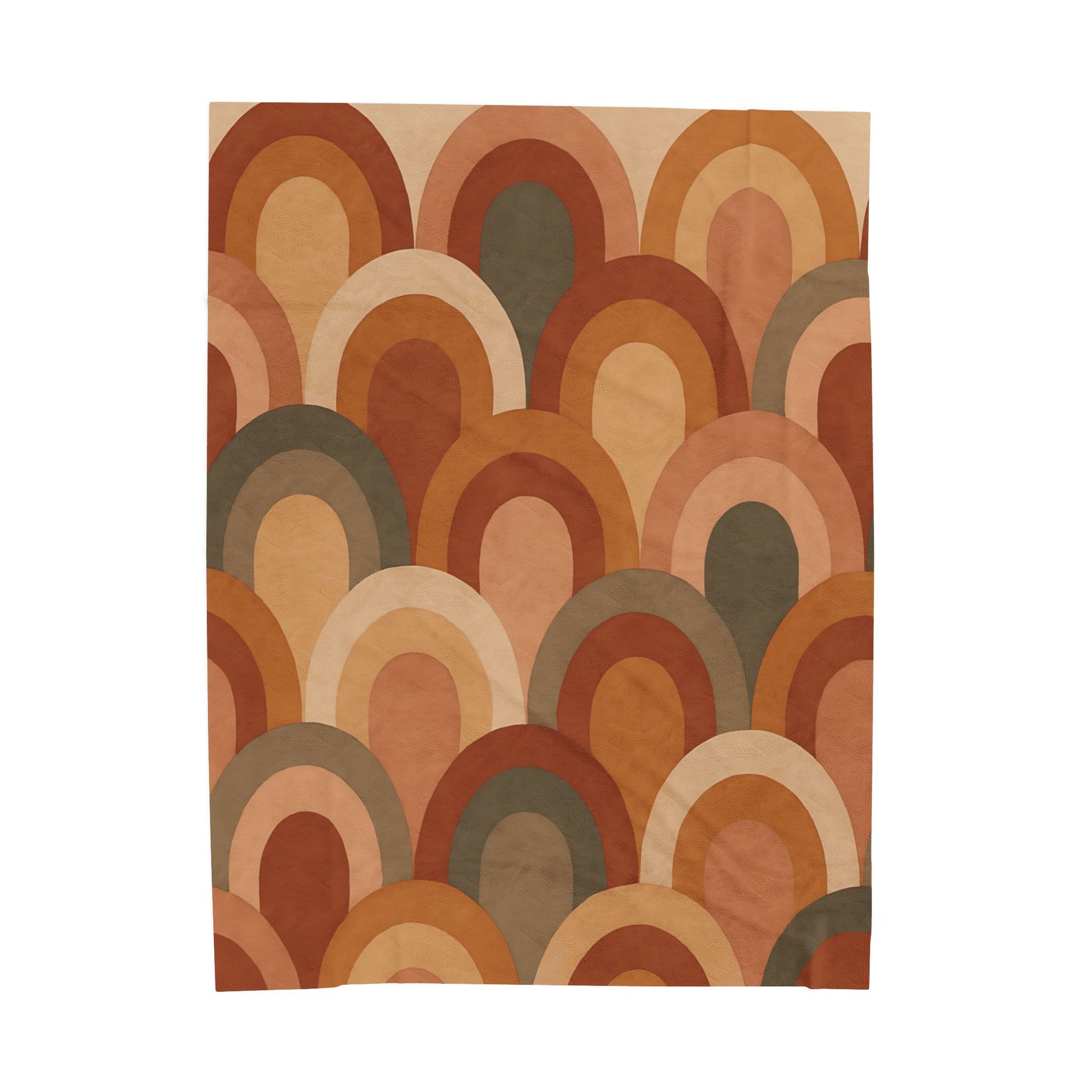 Add a splash of retro flair to your space with this Retro Earth-Tone Rainbow Arch Velveteen Plush Blanket.