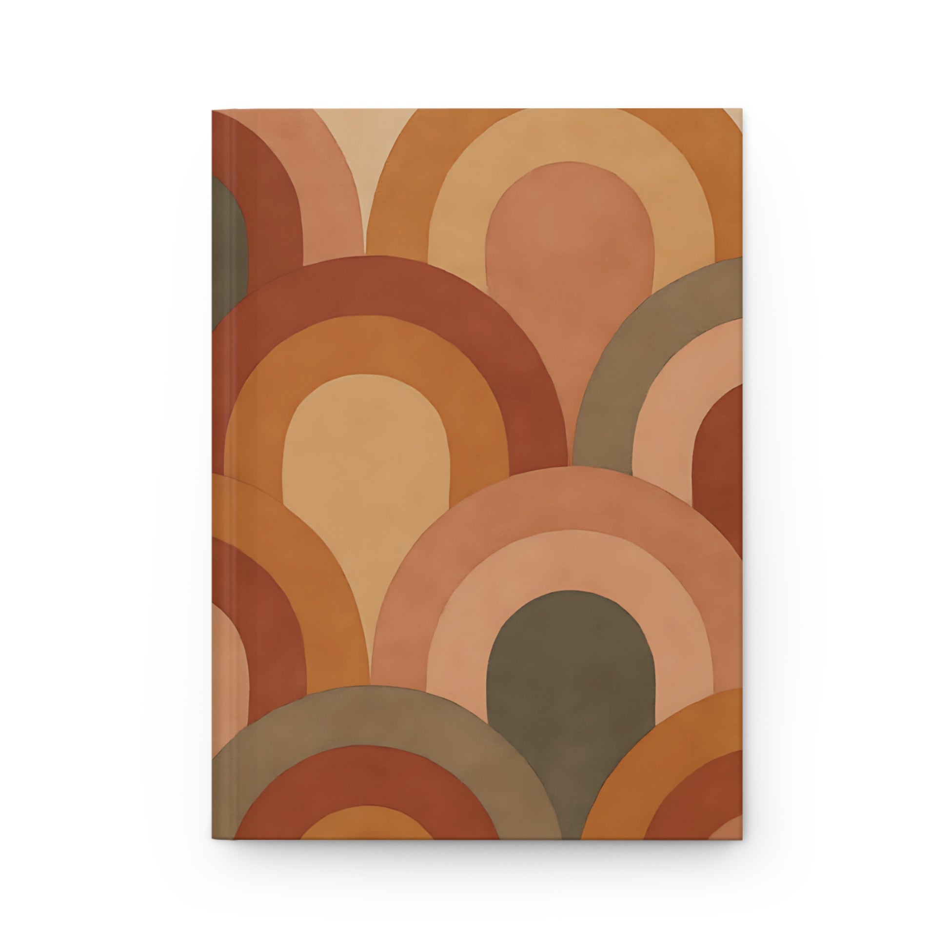 Featuring a bold, abstract rainbow arch pattern in warm earthy tones of rust, ochre, blush, and olive, this stylish notebook channels a 70s vibe perfect for creatives and dreamers.