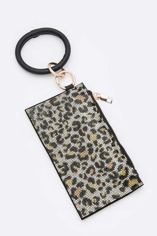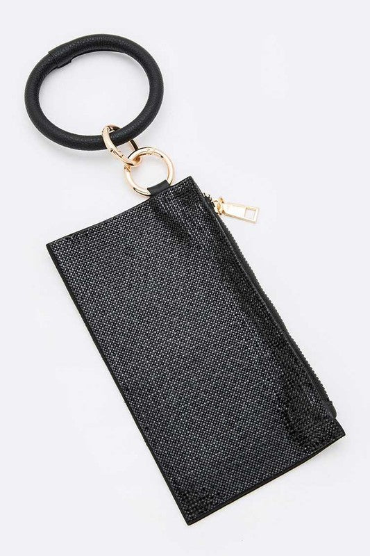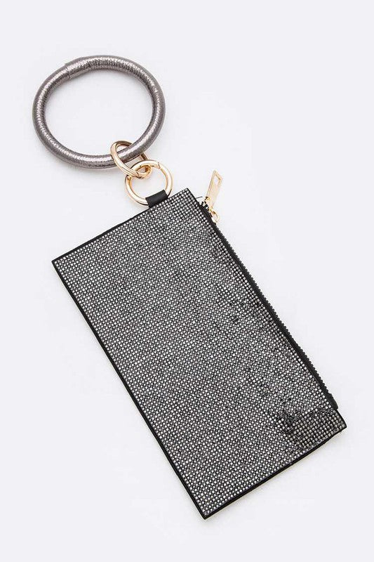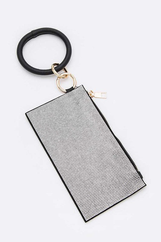 Add sparkle to your everyday style with this eye-catching rhinestone wristlet pouch wallet.