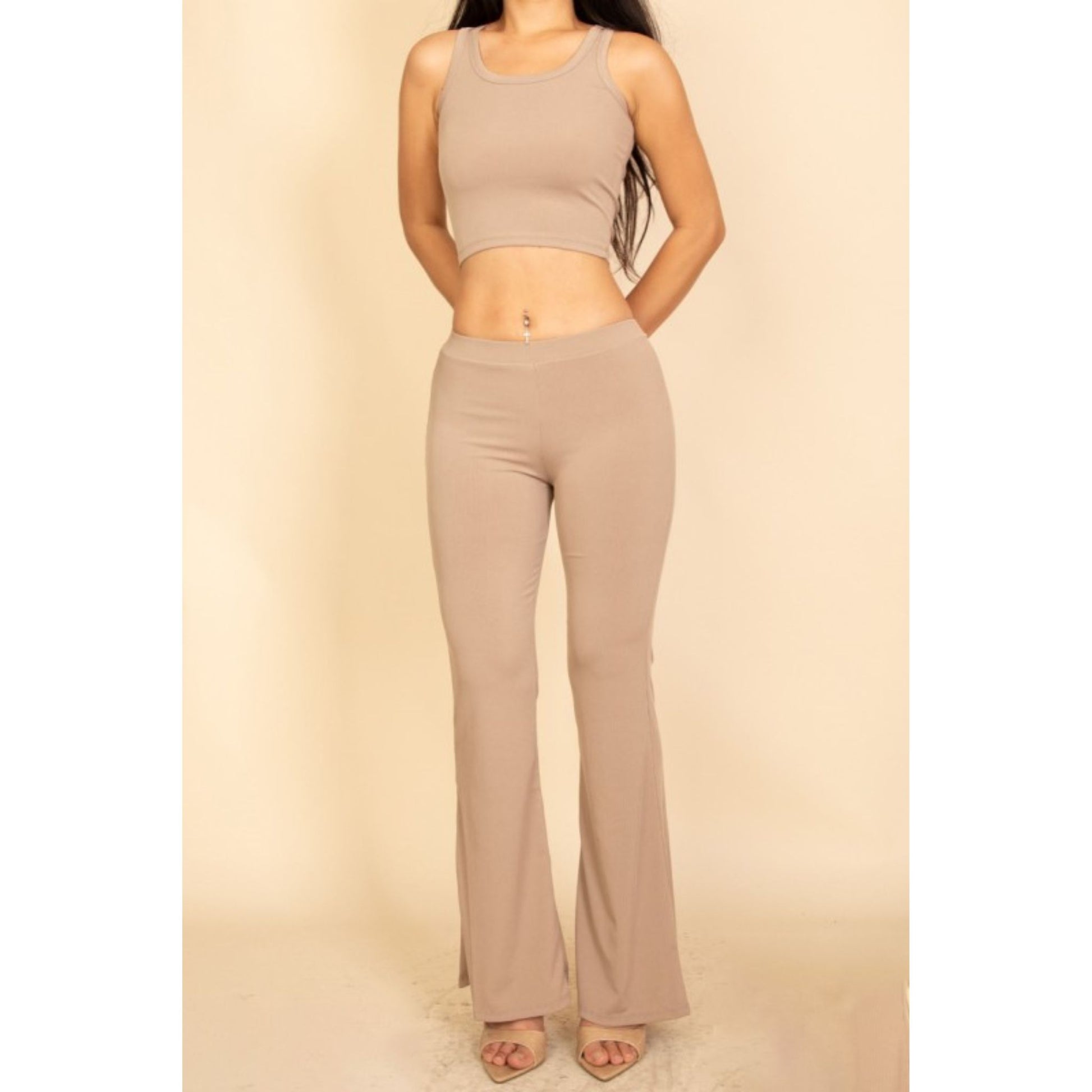 Ribbed Sleeveless Crop Top & Flared Pants Set