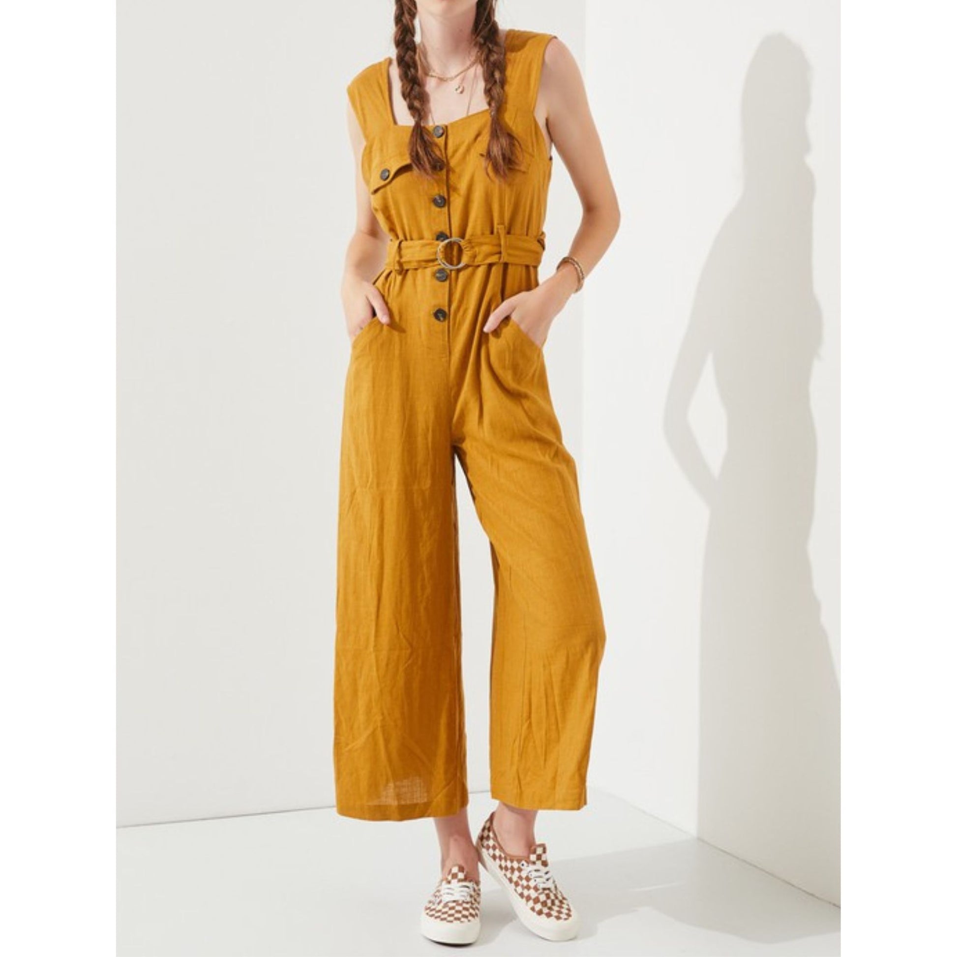Sleeveless Square Neck Button Down Ankle Jumpsuit.