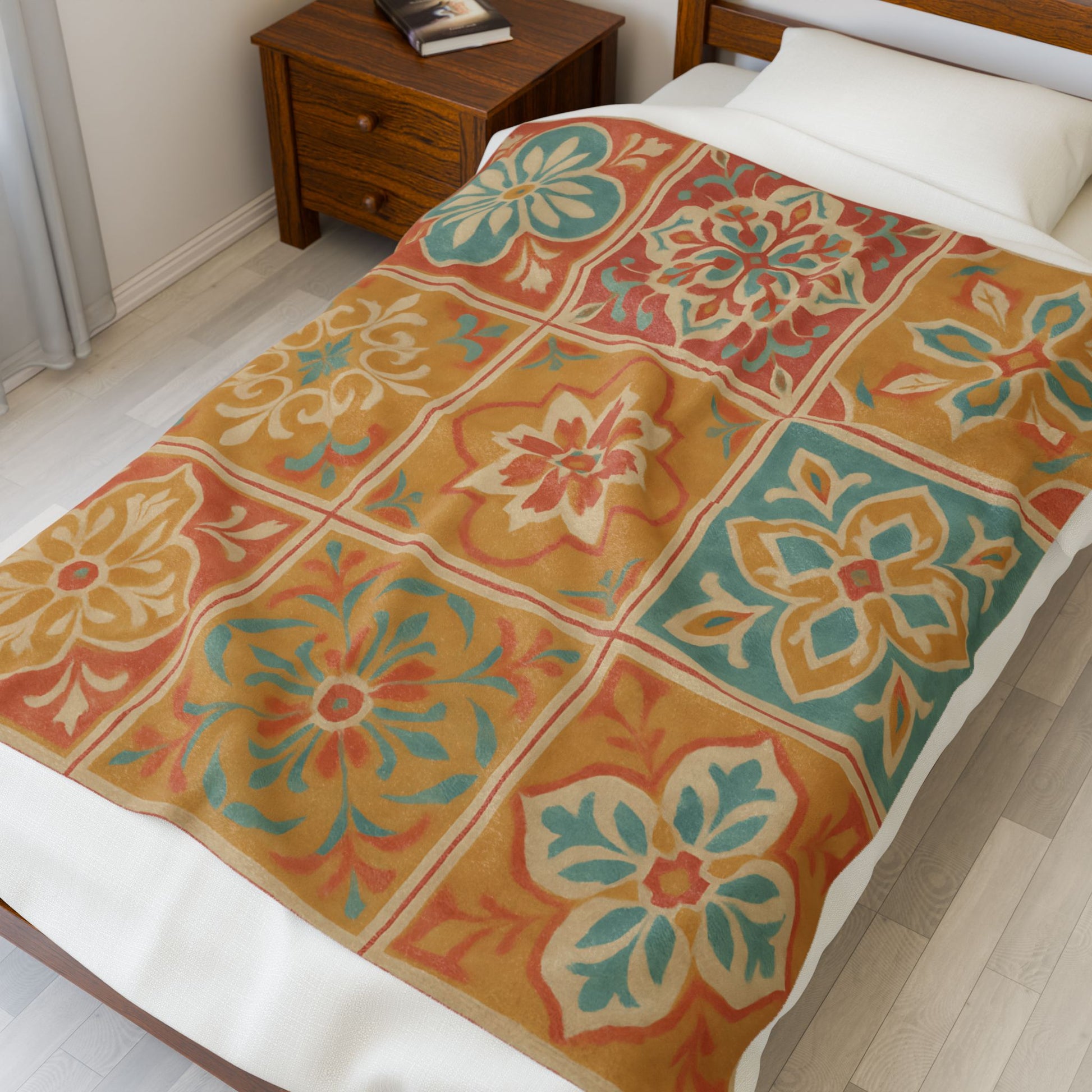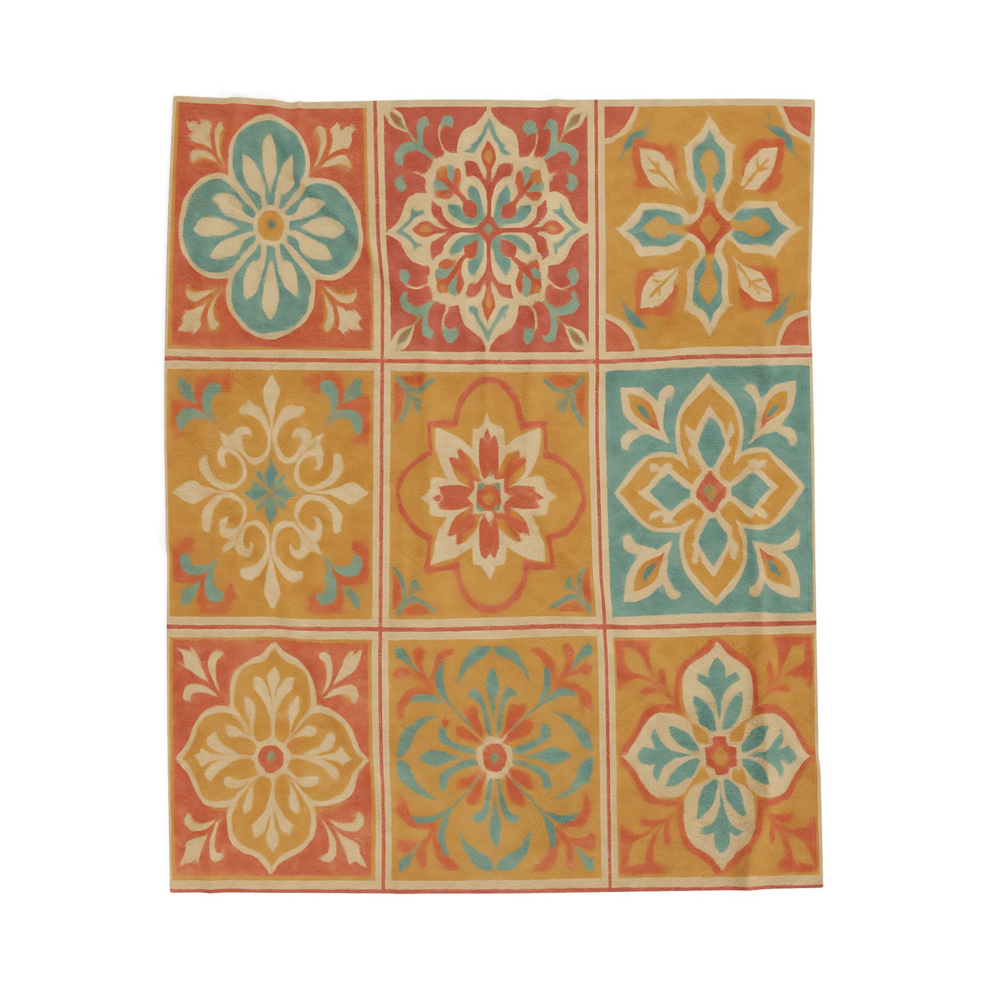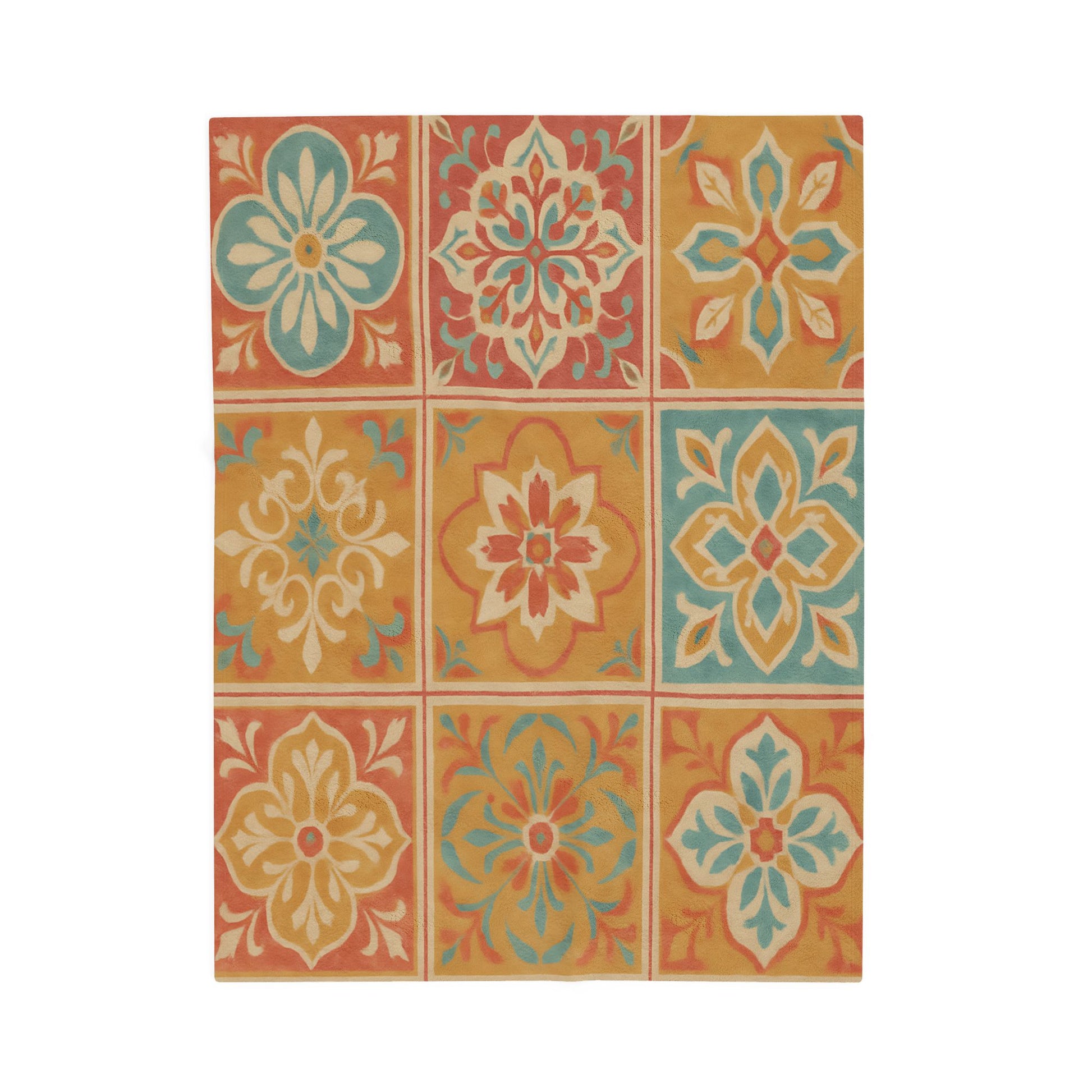 Bring warmth and vibrant style to your space with this Spanish Tile Pattern Velveteen Plush Blanket.