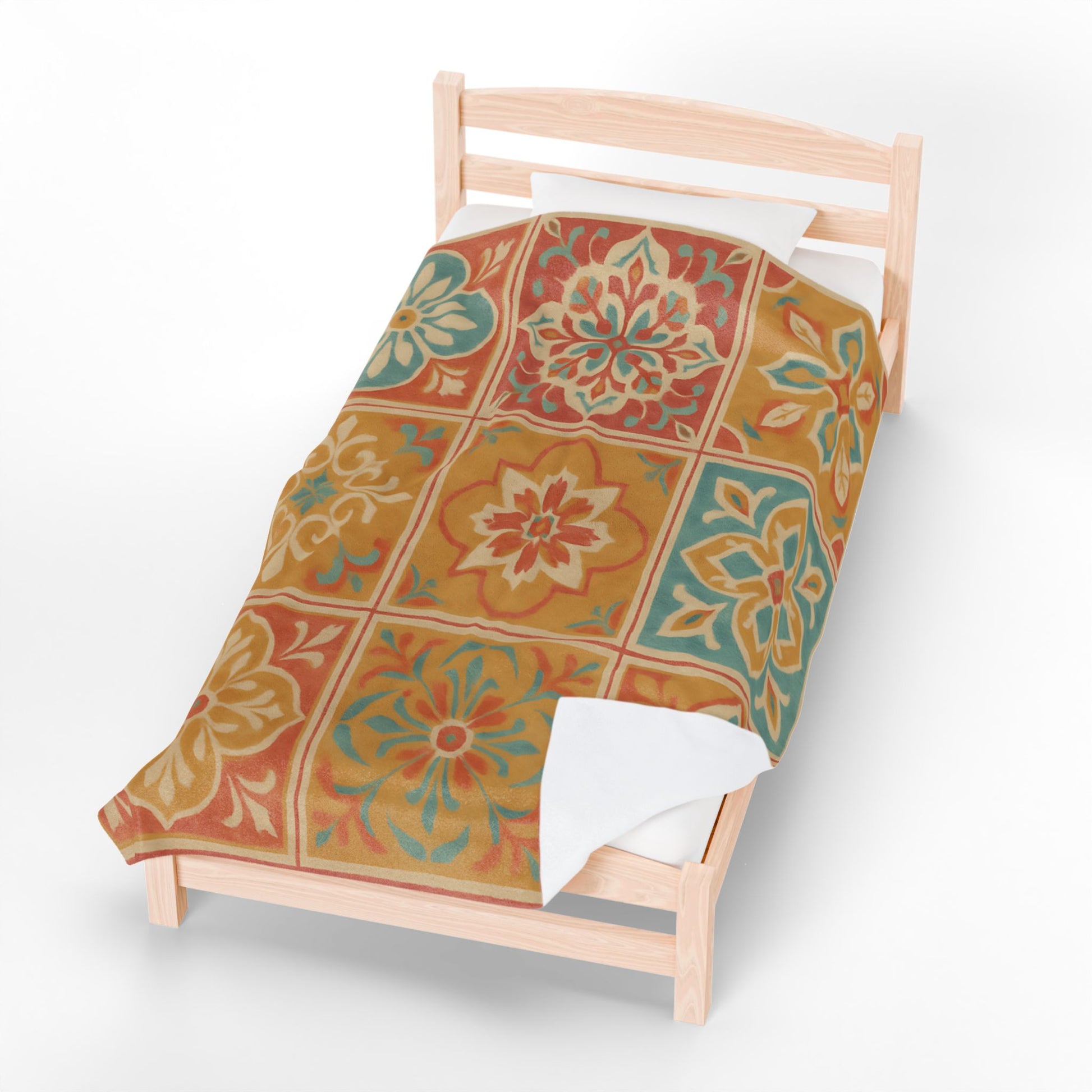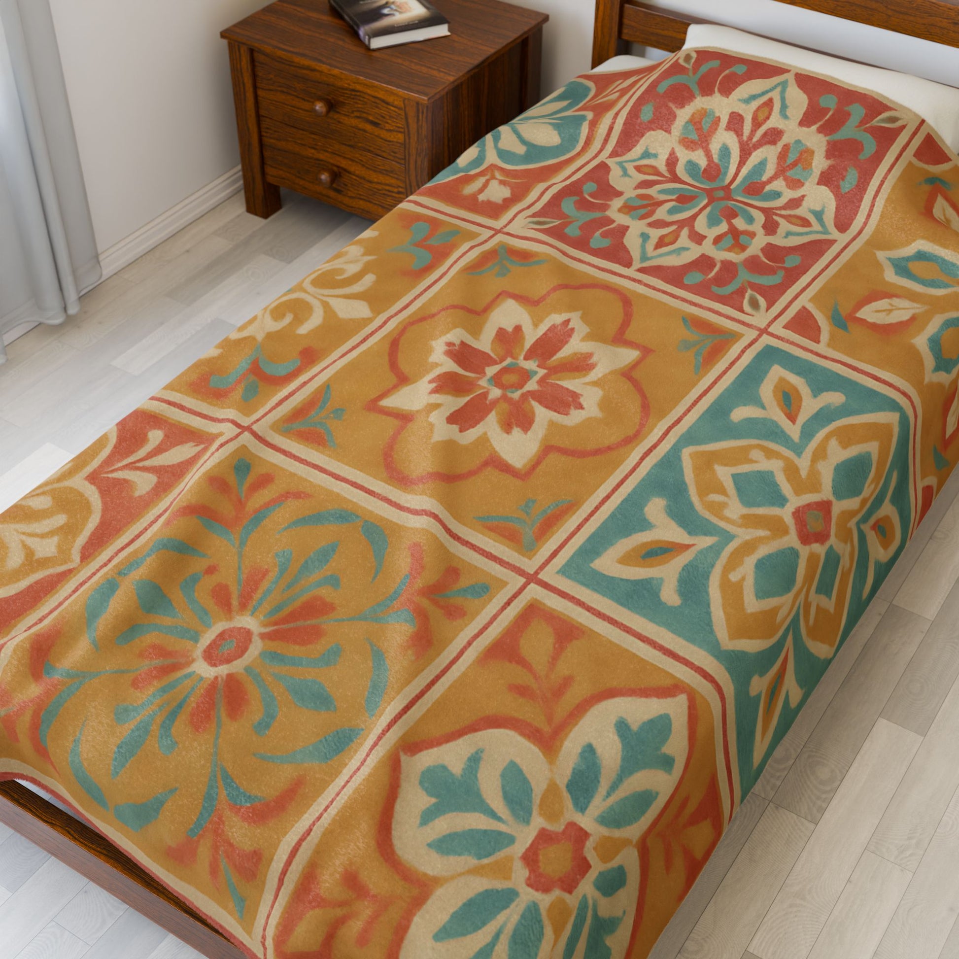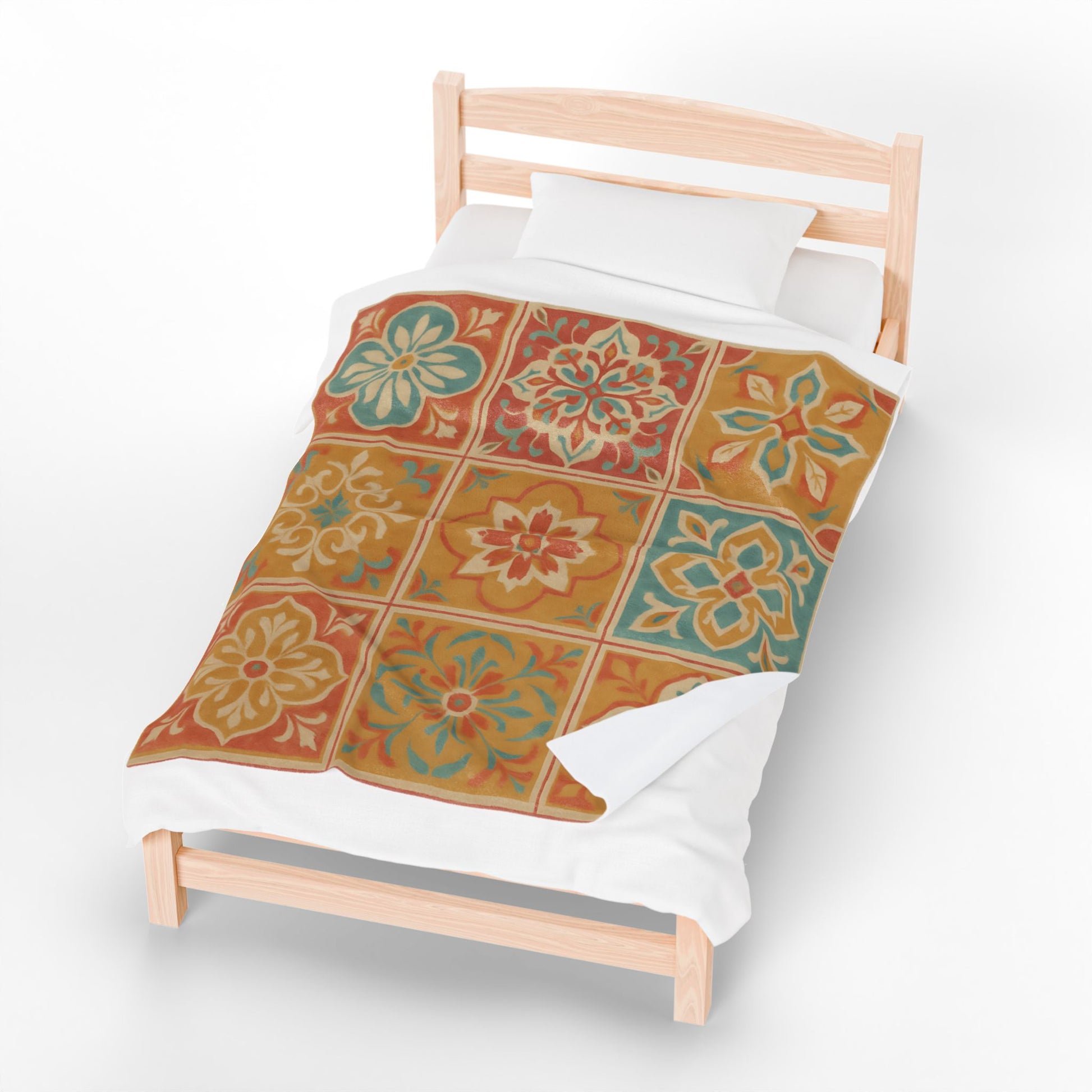 Bring warmth and vibrant style to your space with this Spanish Tile Pattern Velveteen Plush Blanket.