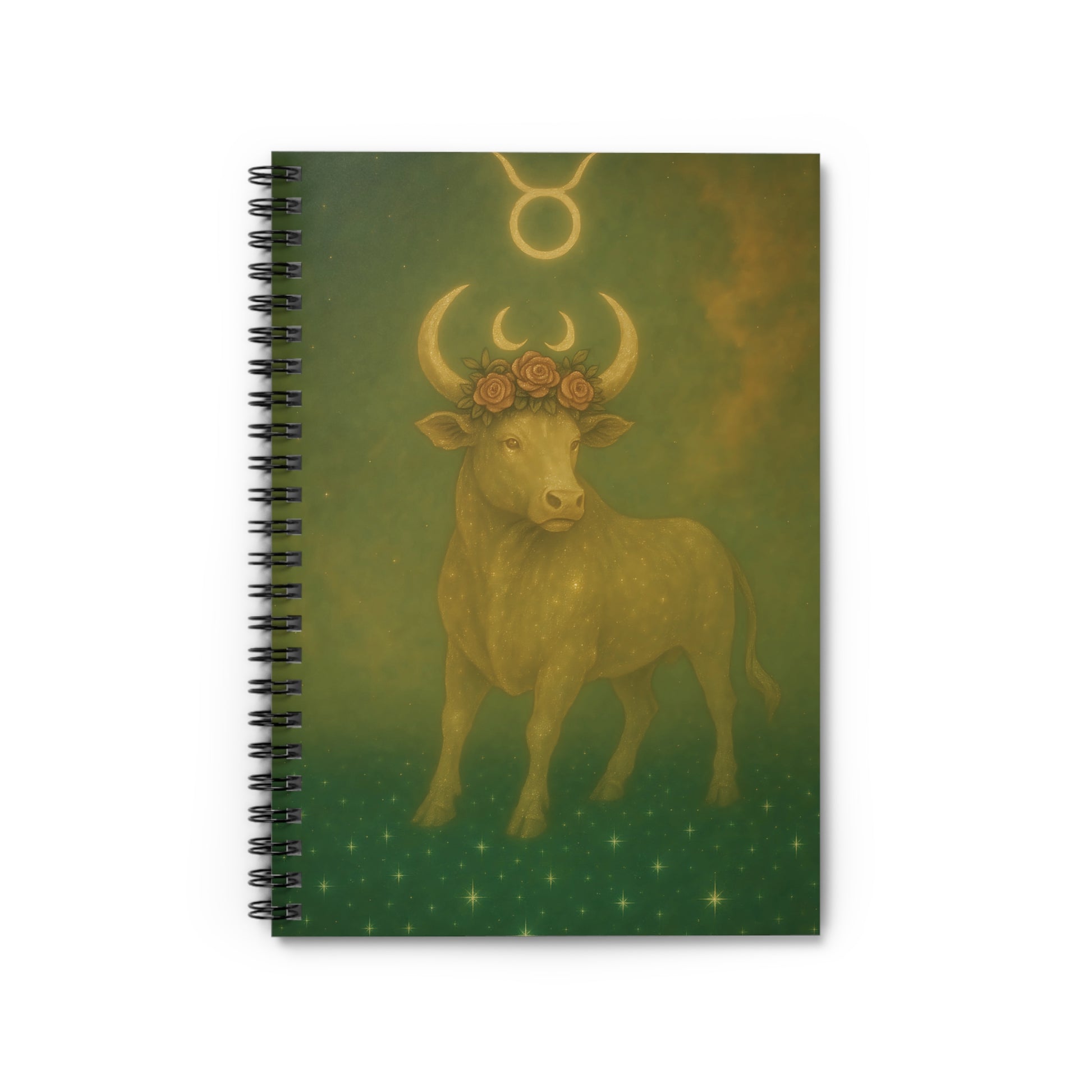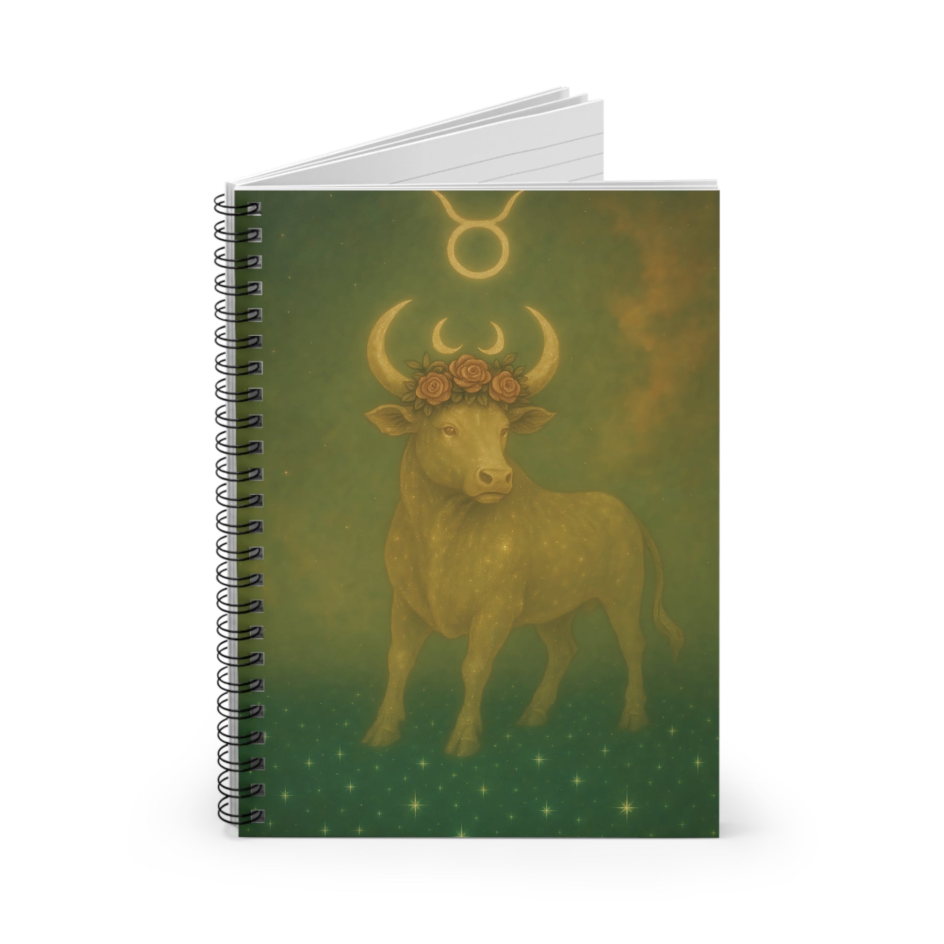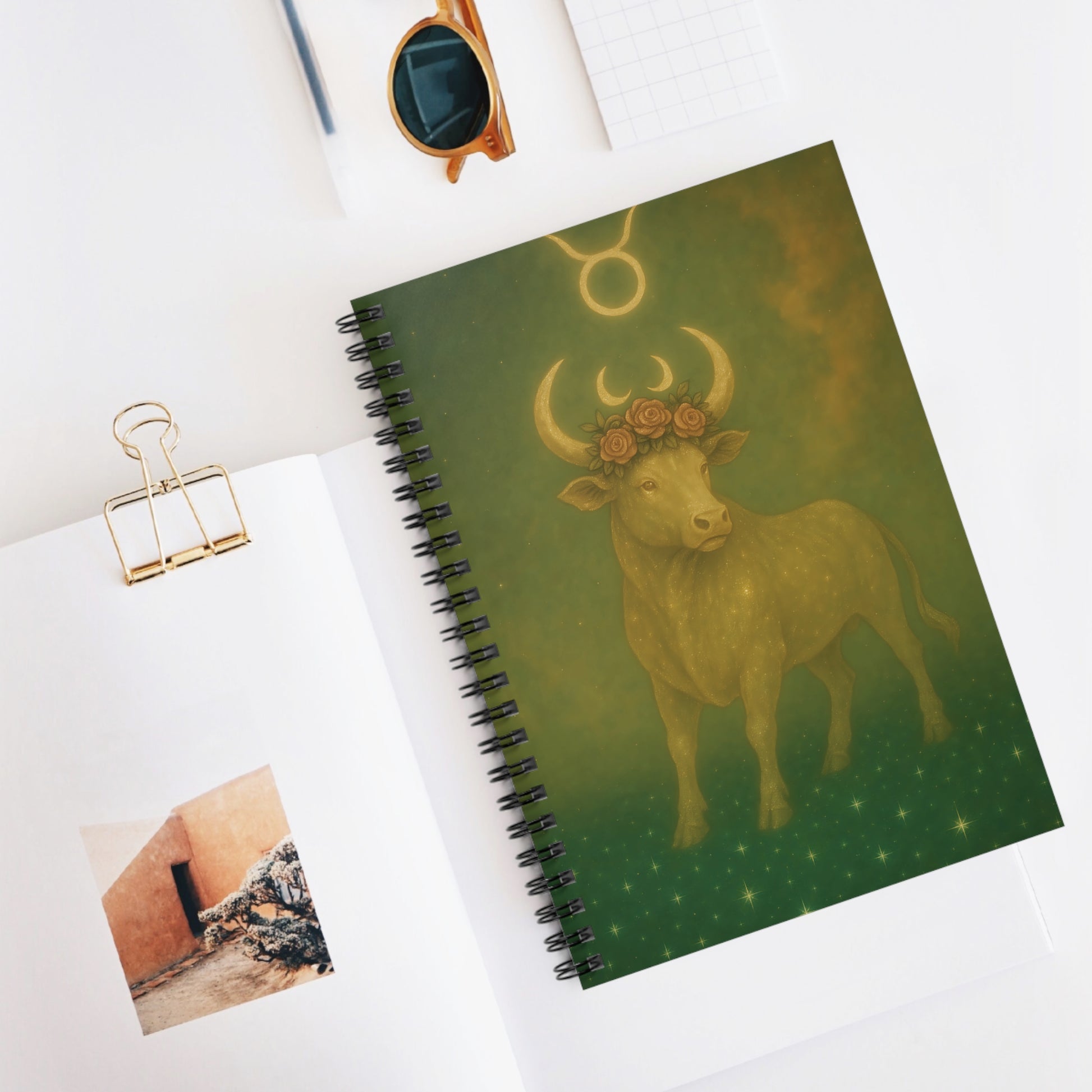 Embrace your grounded and determined Taurus nature with this Taurus Zodiac Galaxy Spiral Notebook, featuring a stunning celestial bull crowned with roses under glowing cosmic stars.