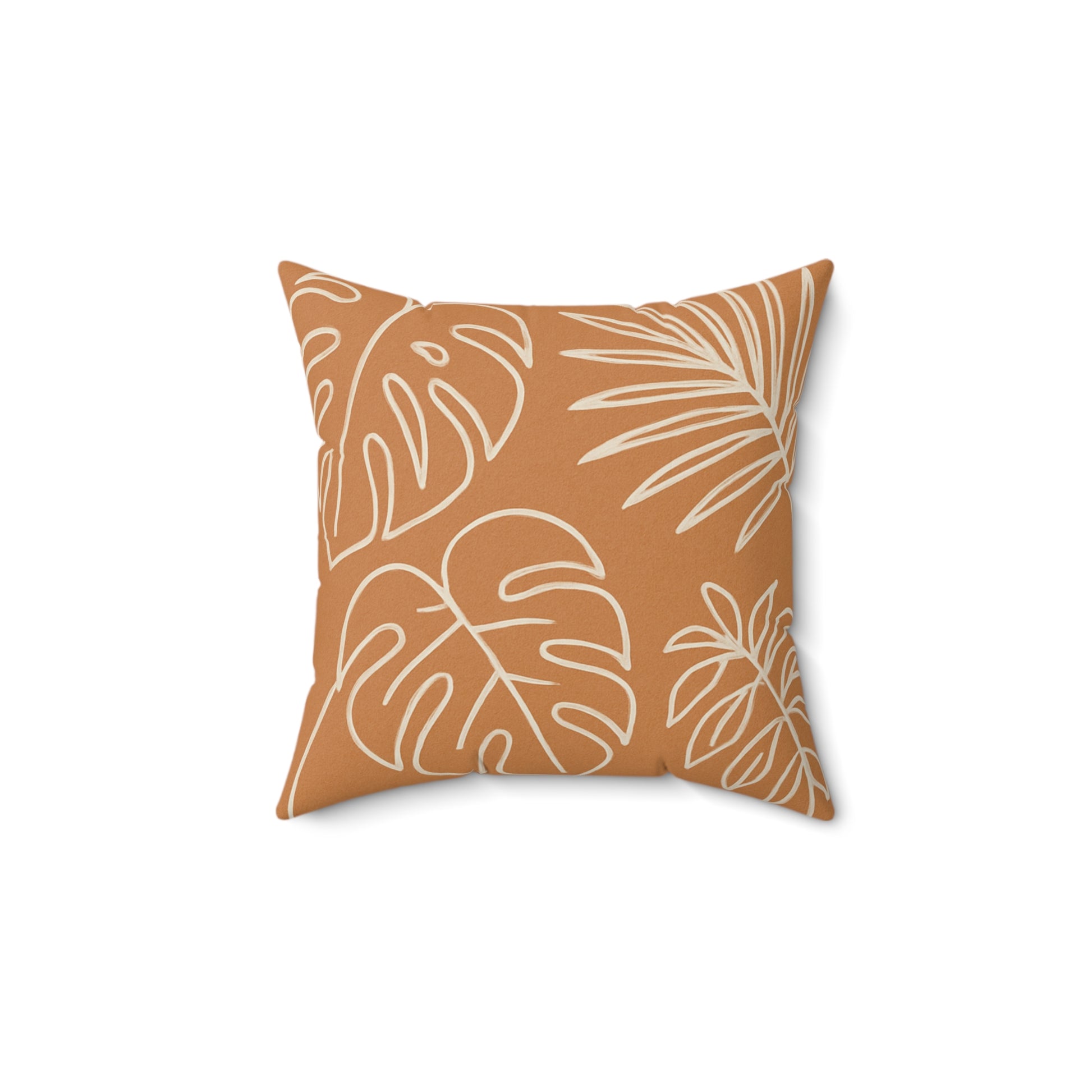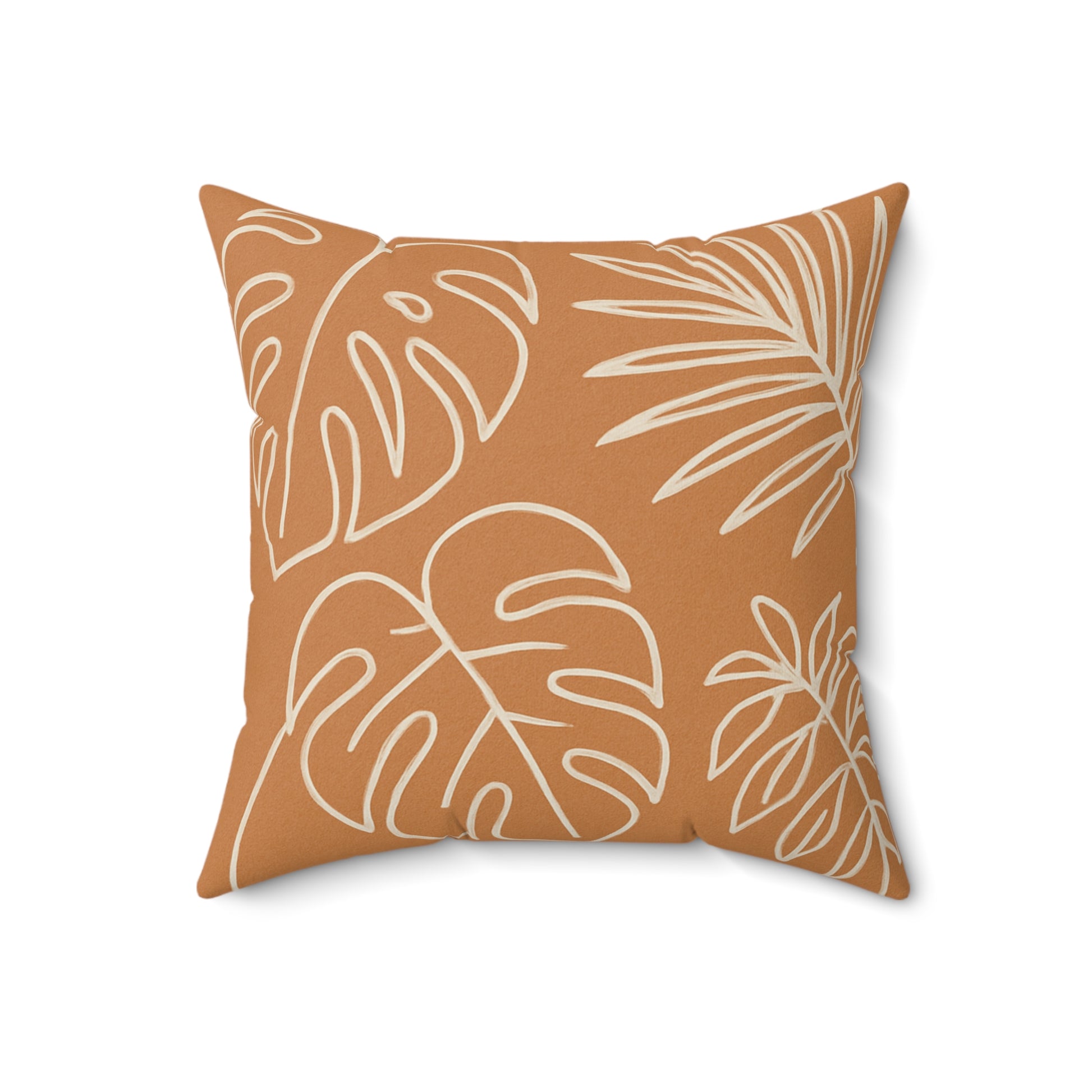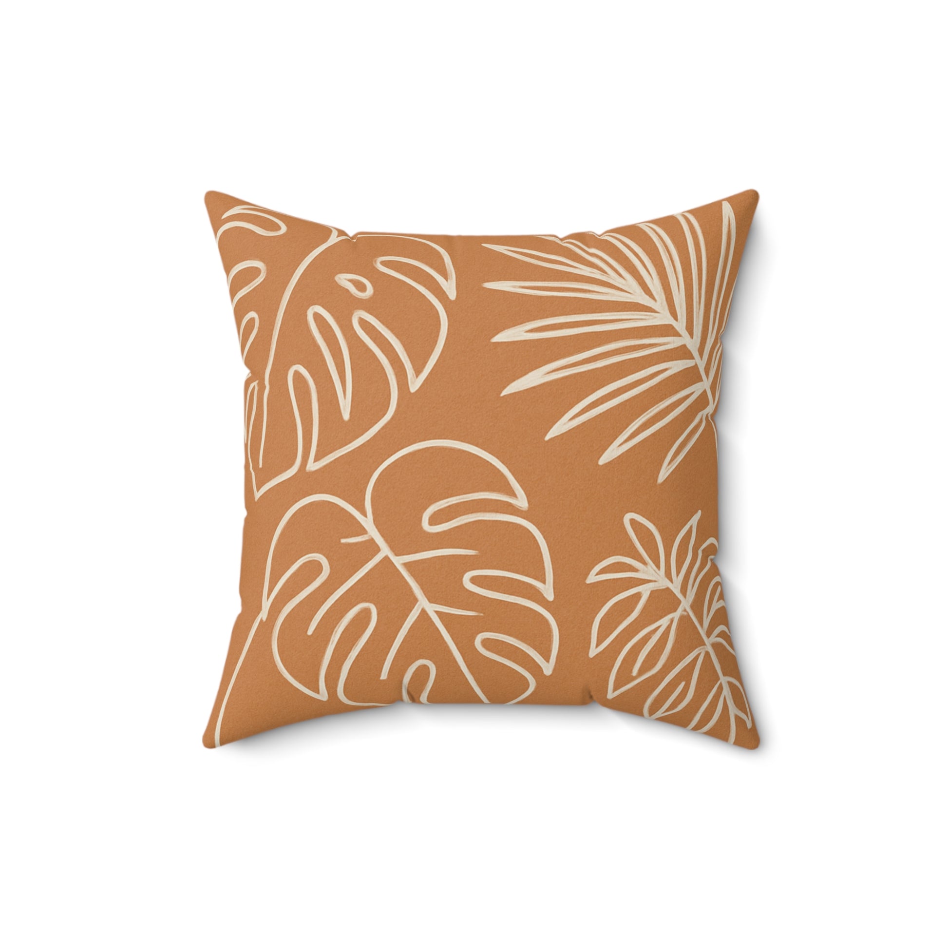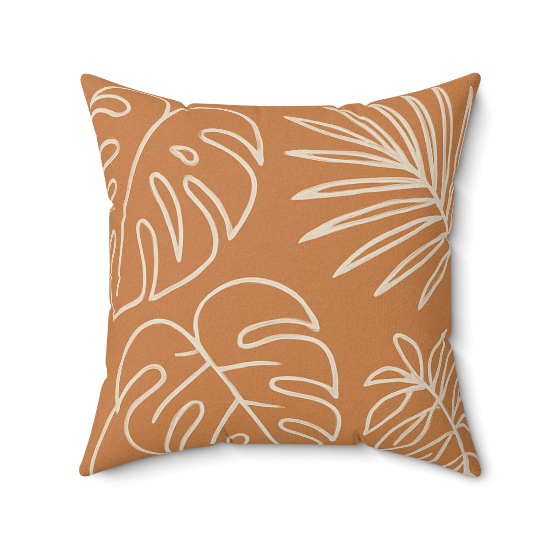 Terracotta Tropical Leaf Throw Pillow – Boho Botanical Cushion with Double-Sided Print.