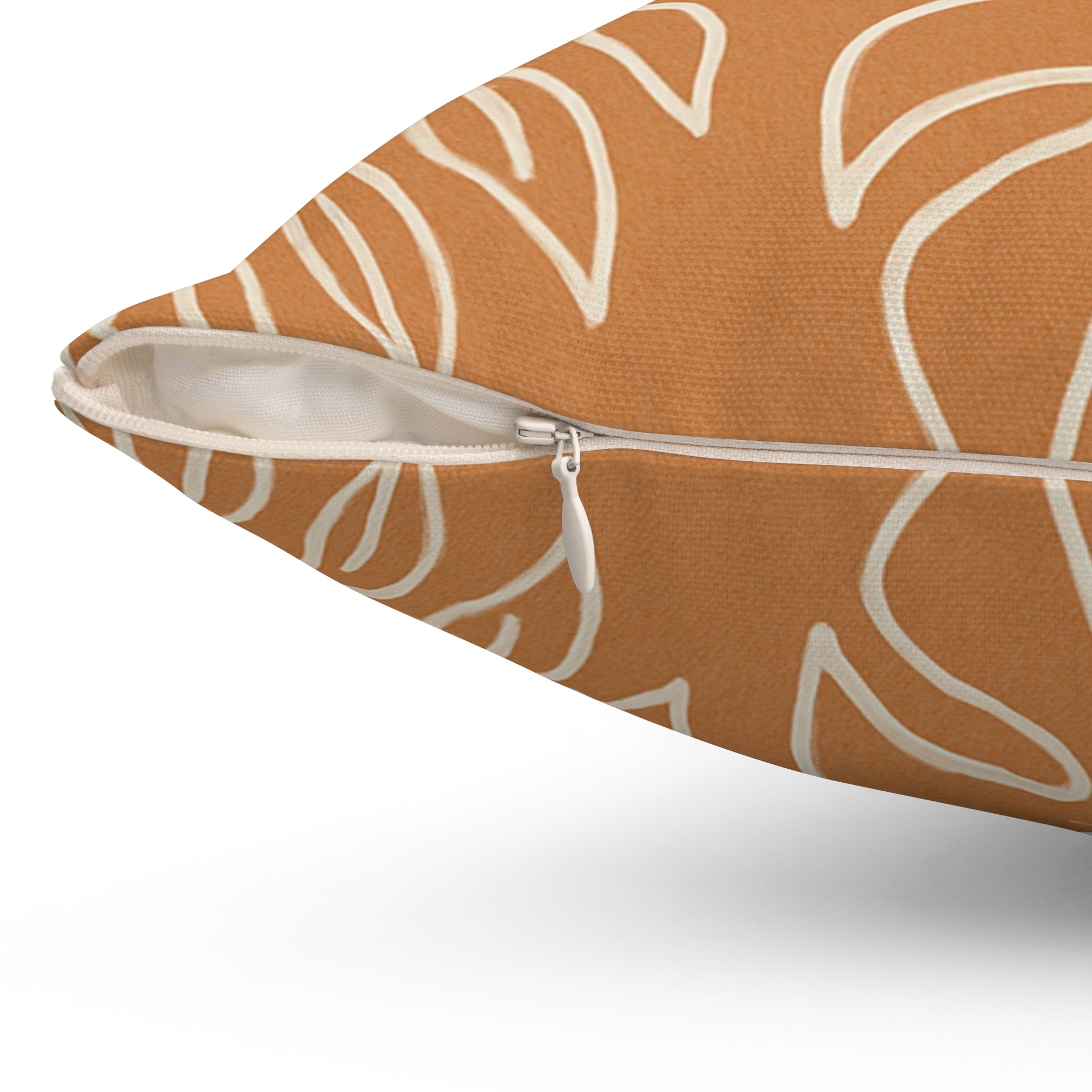 Terracotta Tropical Leaf Throw Pillow – Boho Botanical Cushion with Double-Sided Print