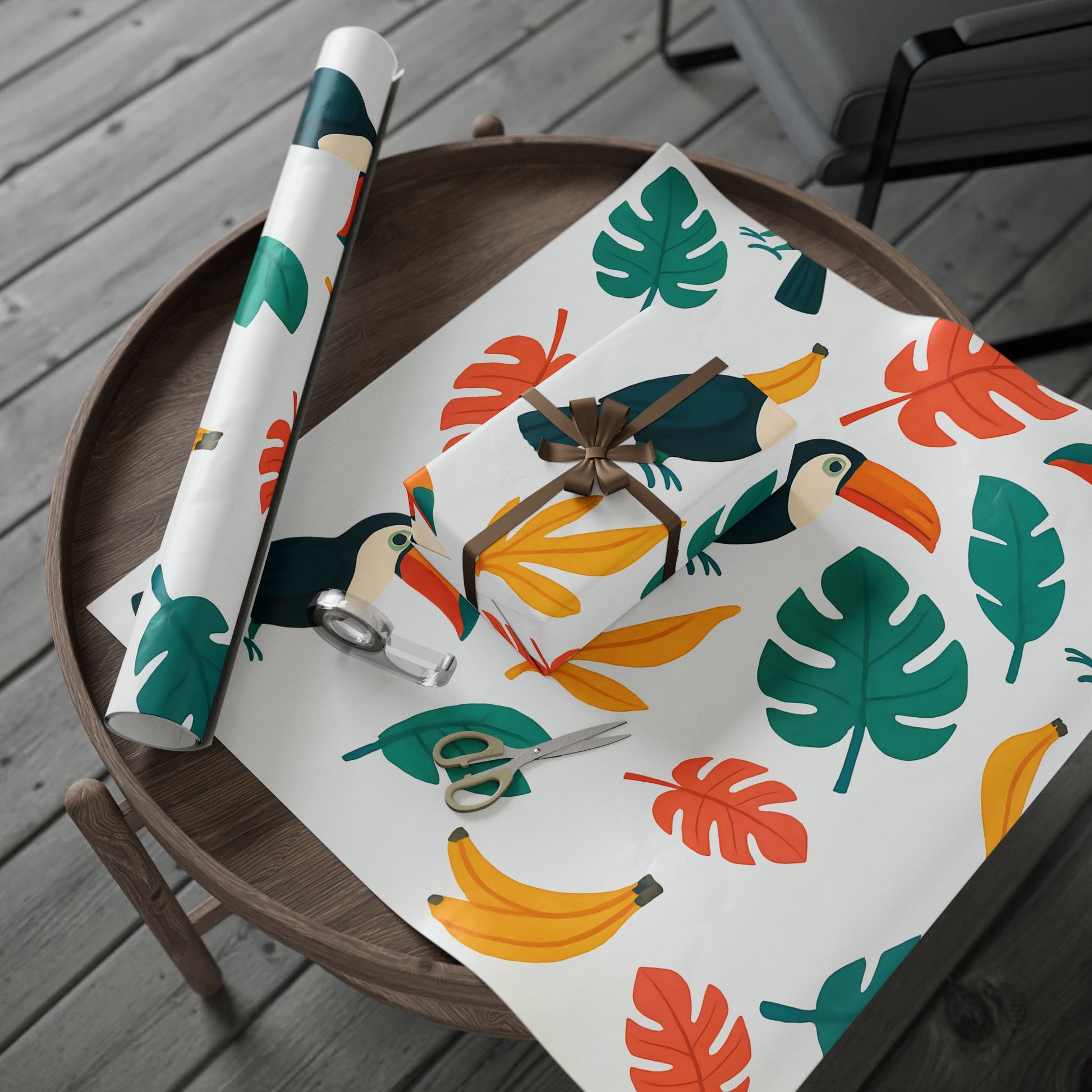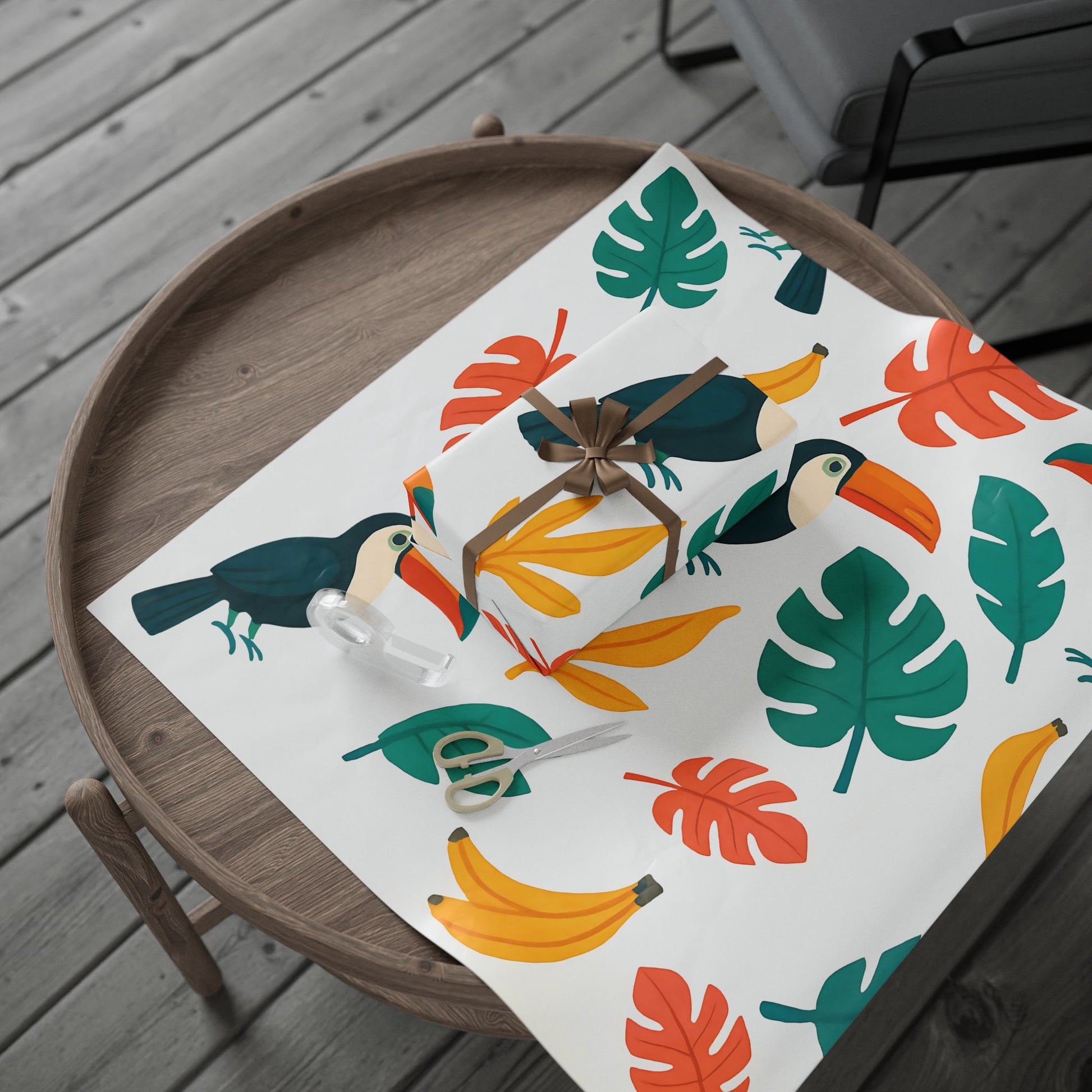 Tropical Toucan and Banana Wrapping Paper – Vibrant Jungle Leaf Gift Wrap