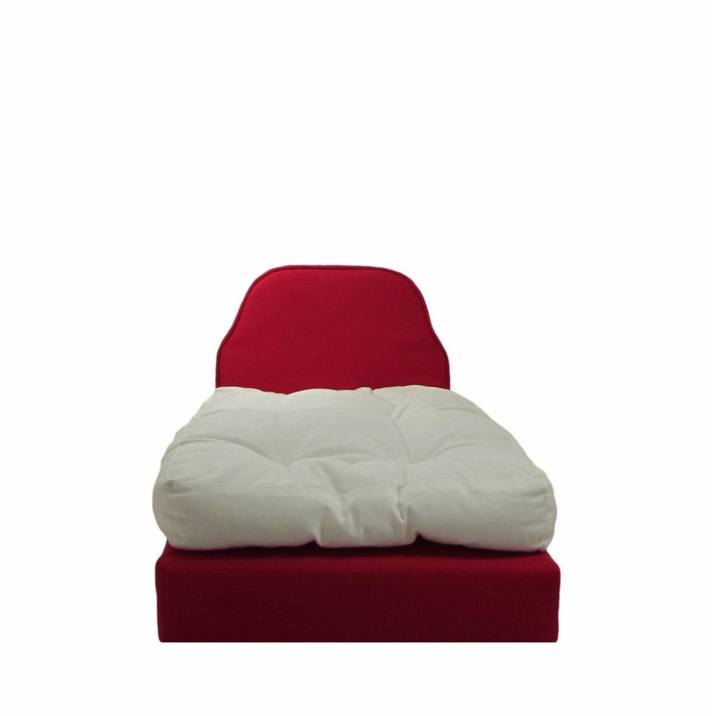 Upholstered Red Doll Bed for 18-inch dolls.