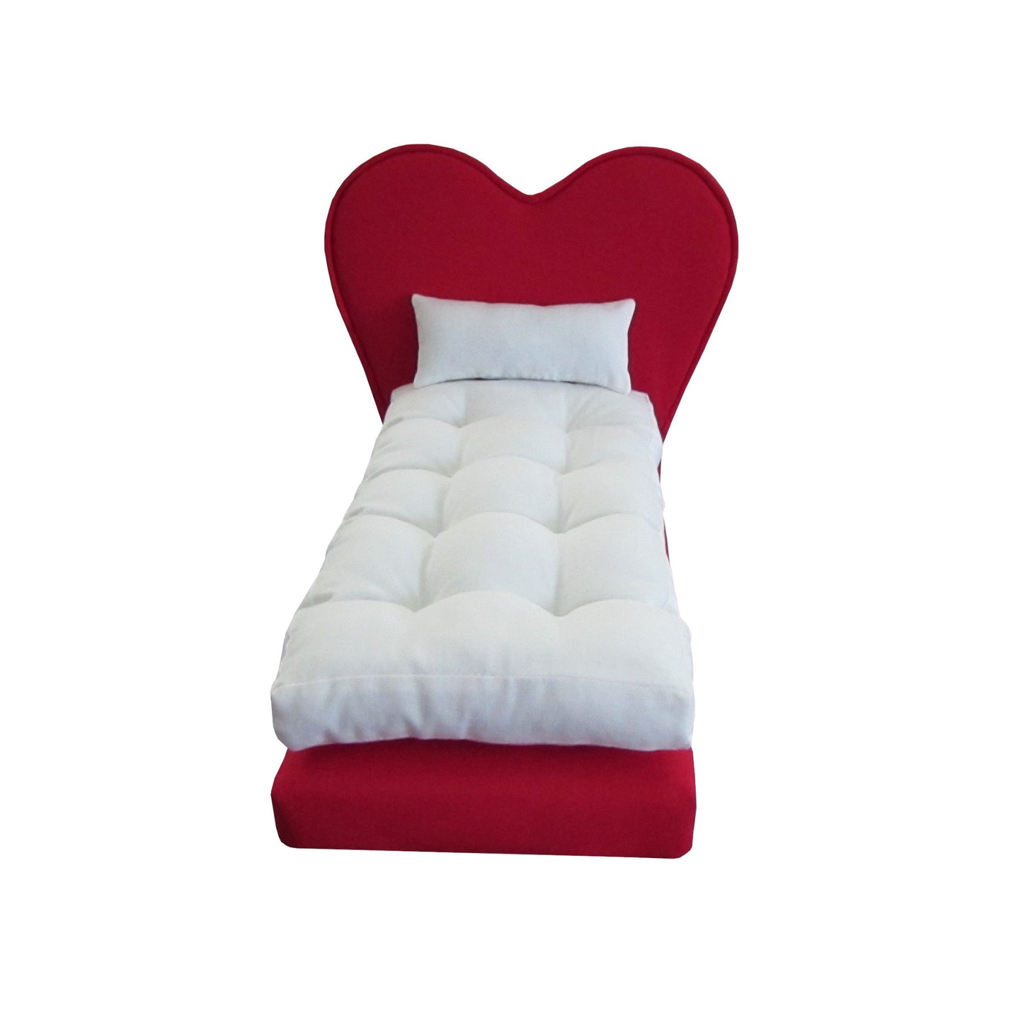 Upholstered Red Heart Doll Bed for 11 1/2-inch and 12-inch dolls.