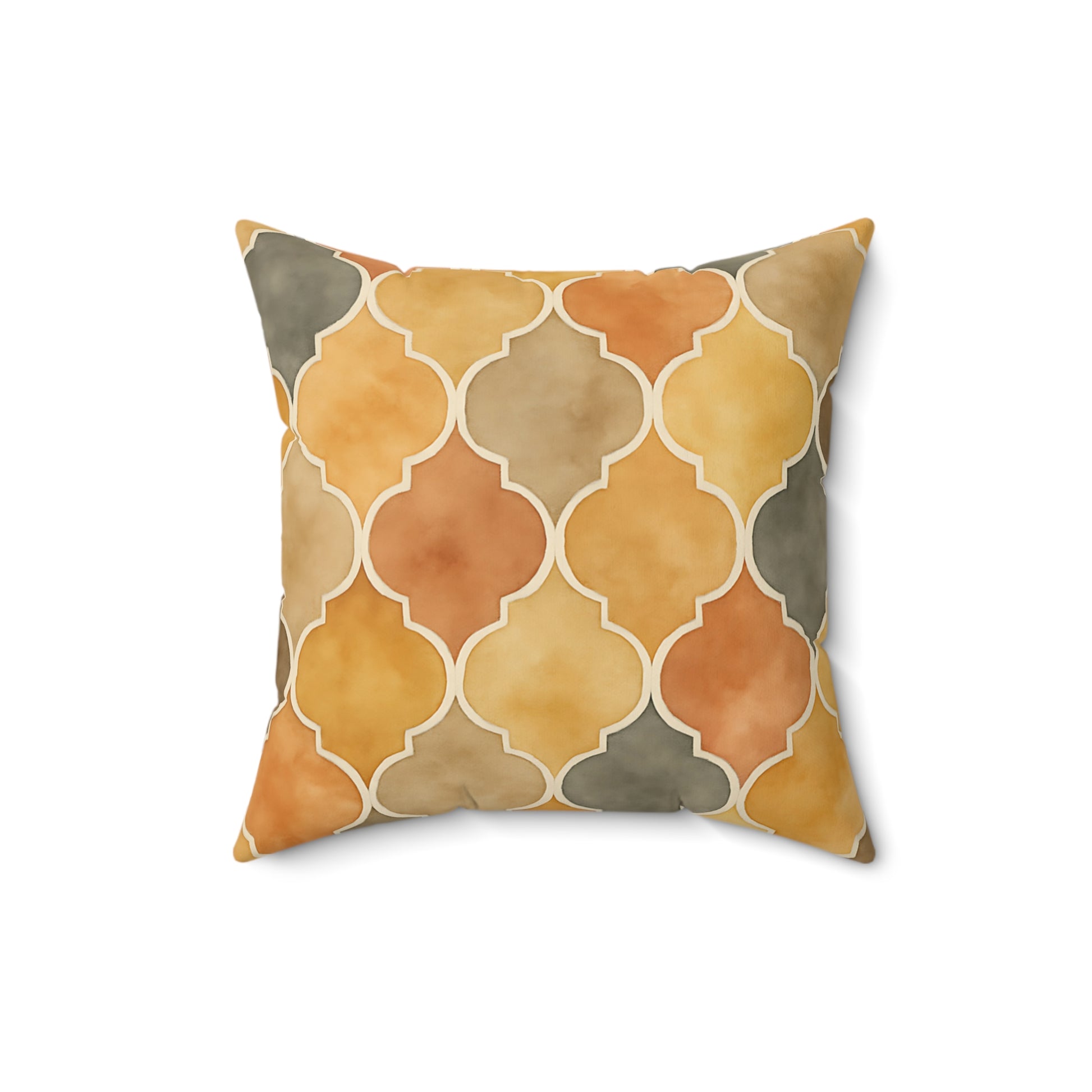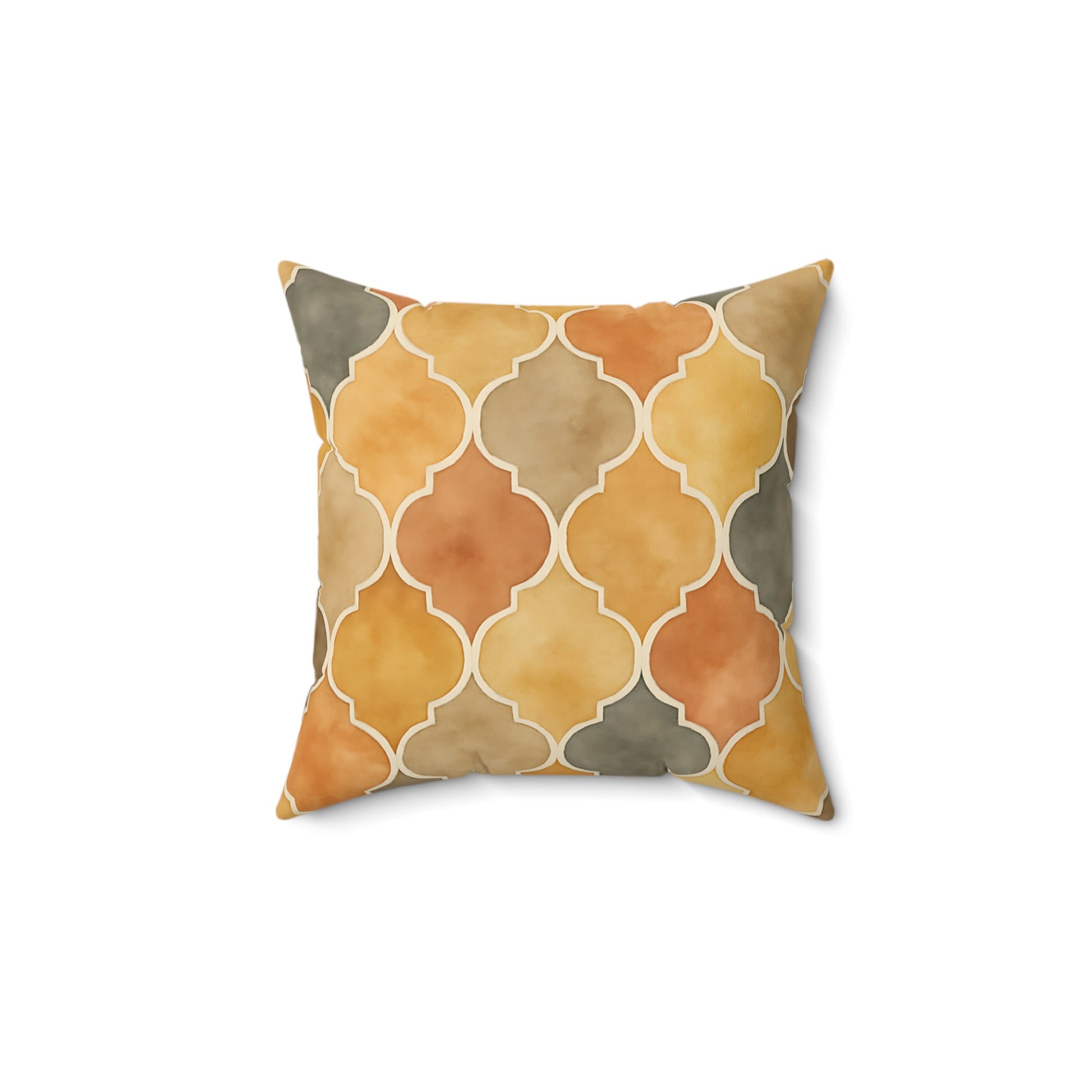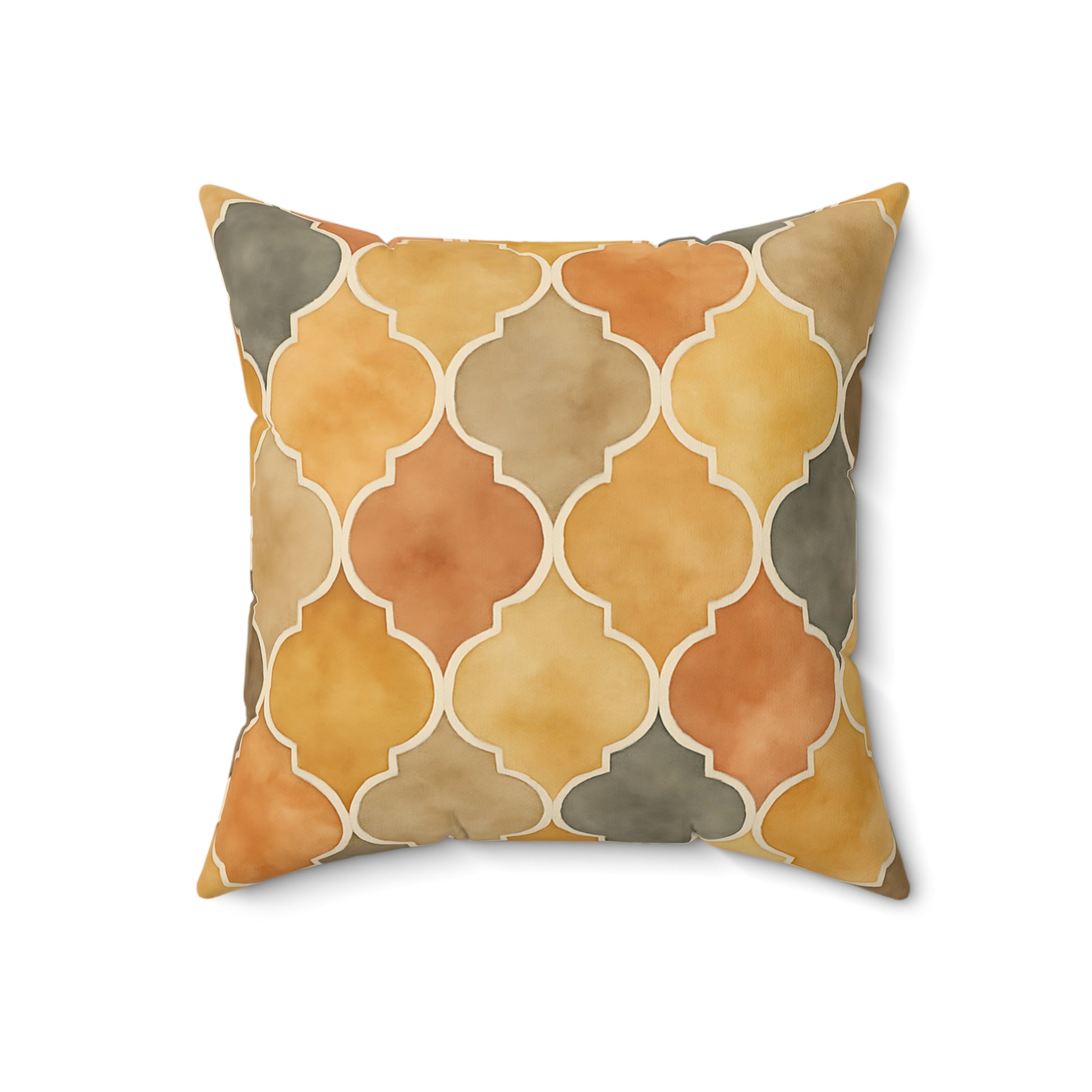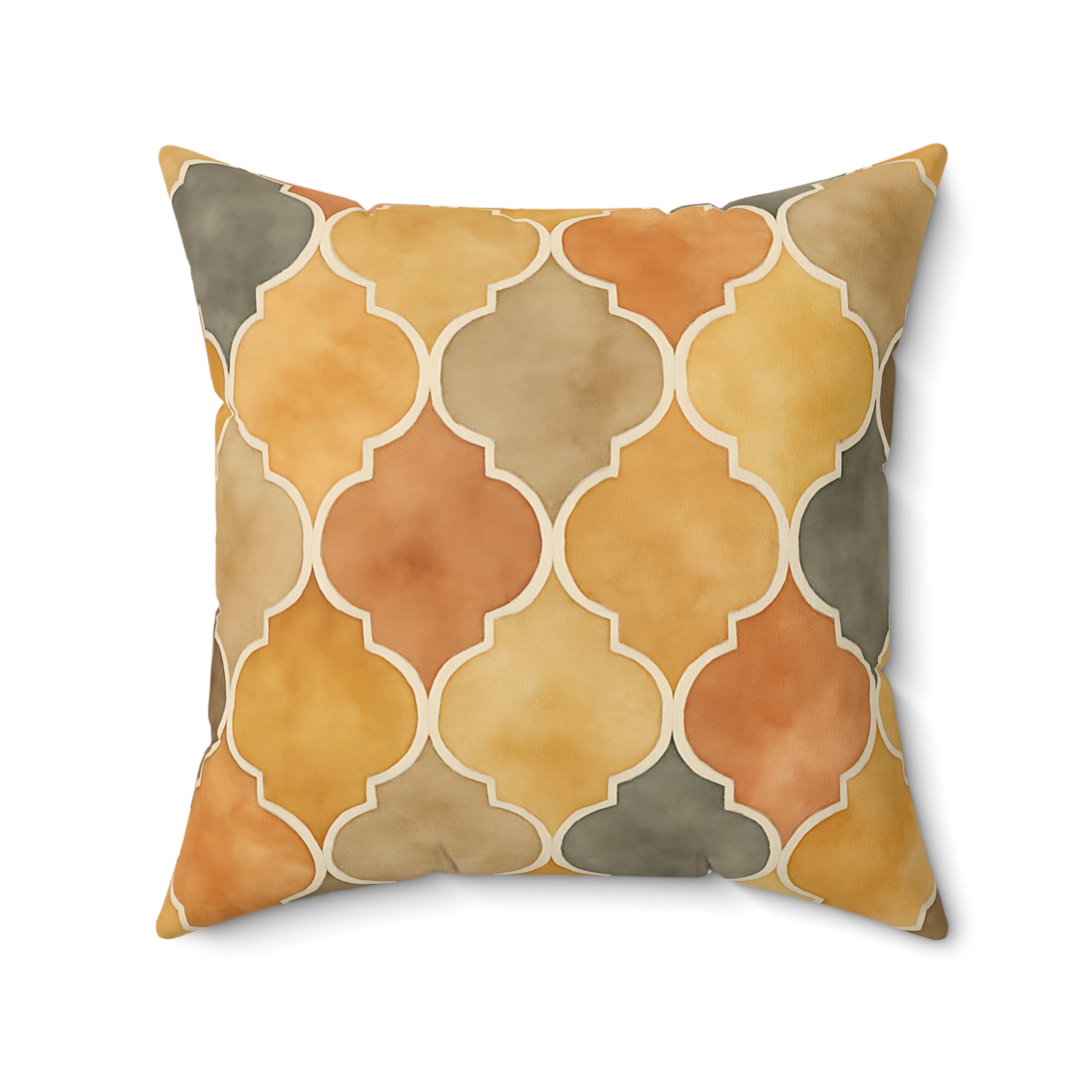 Warm Moroccan Tile Throw Pillow - Earth-Toned Decorative Cushion with Double-Sided Print.