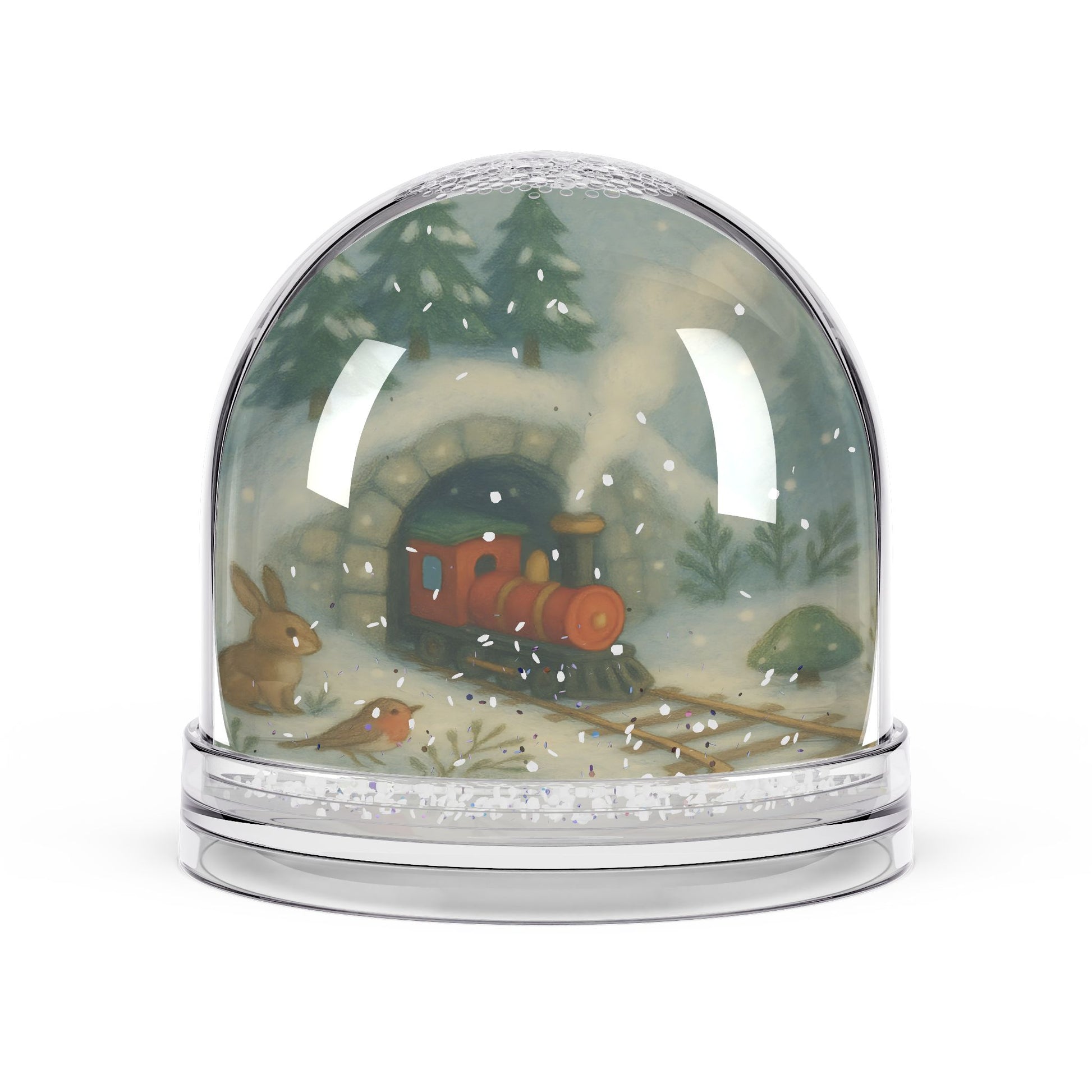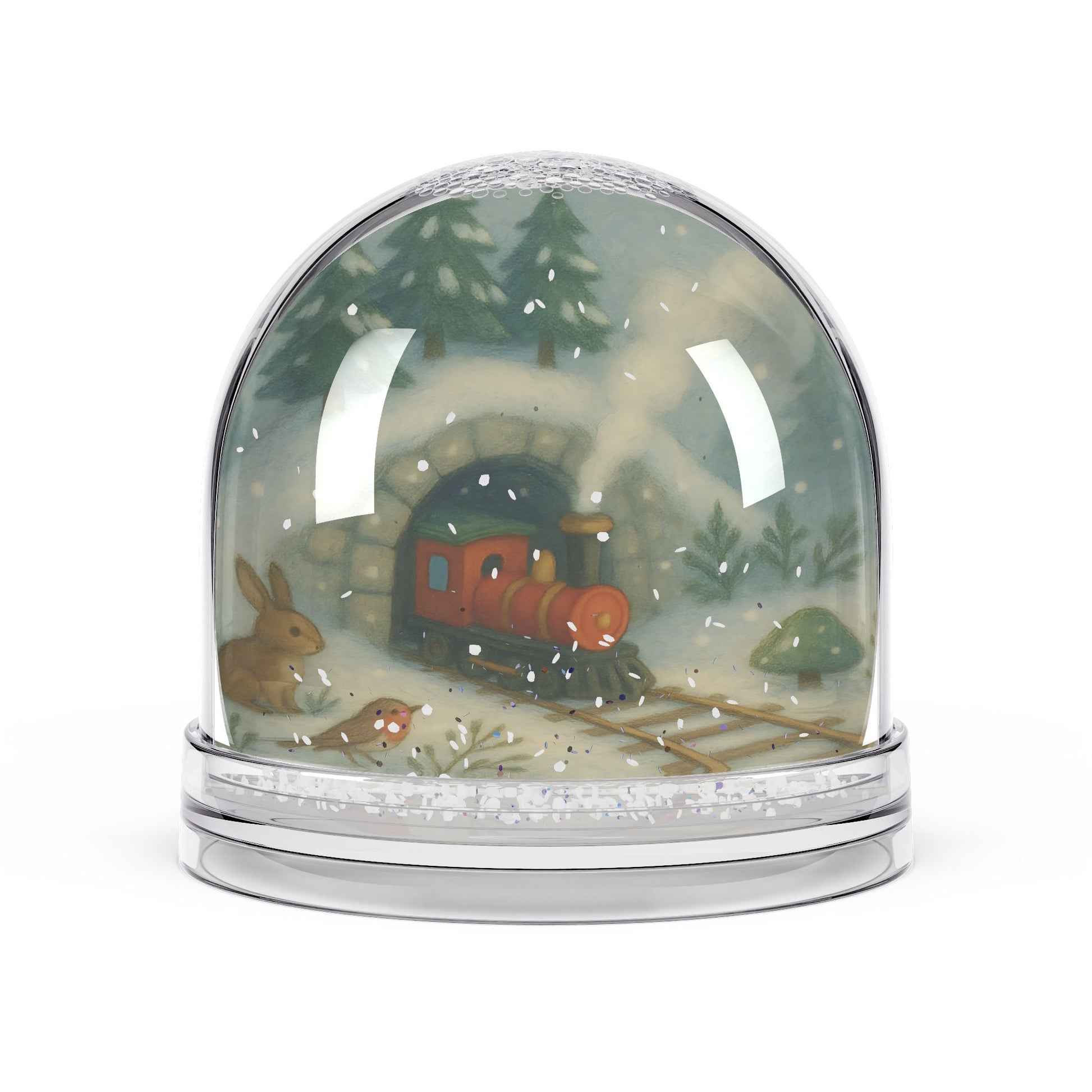 Whimsical Winter Train Snow Globe – Woodland Tunnel Scene with Forest Animals