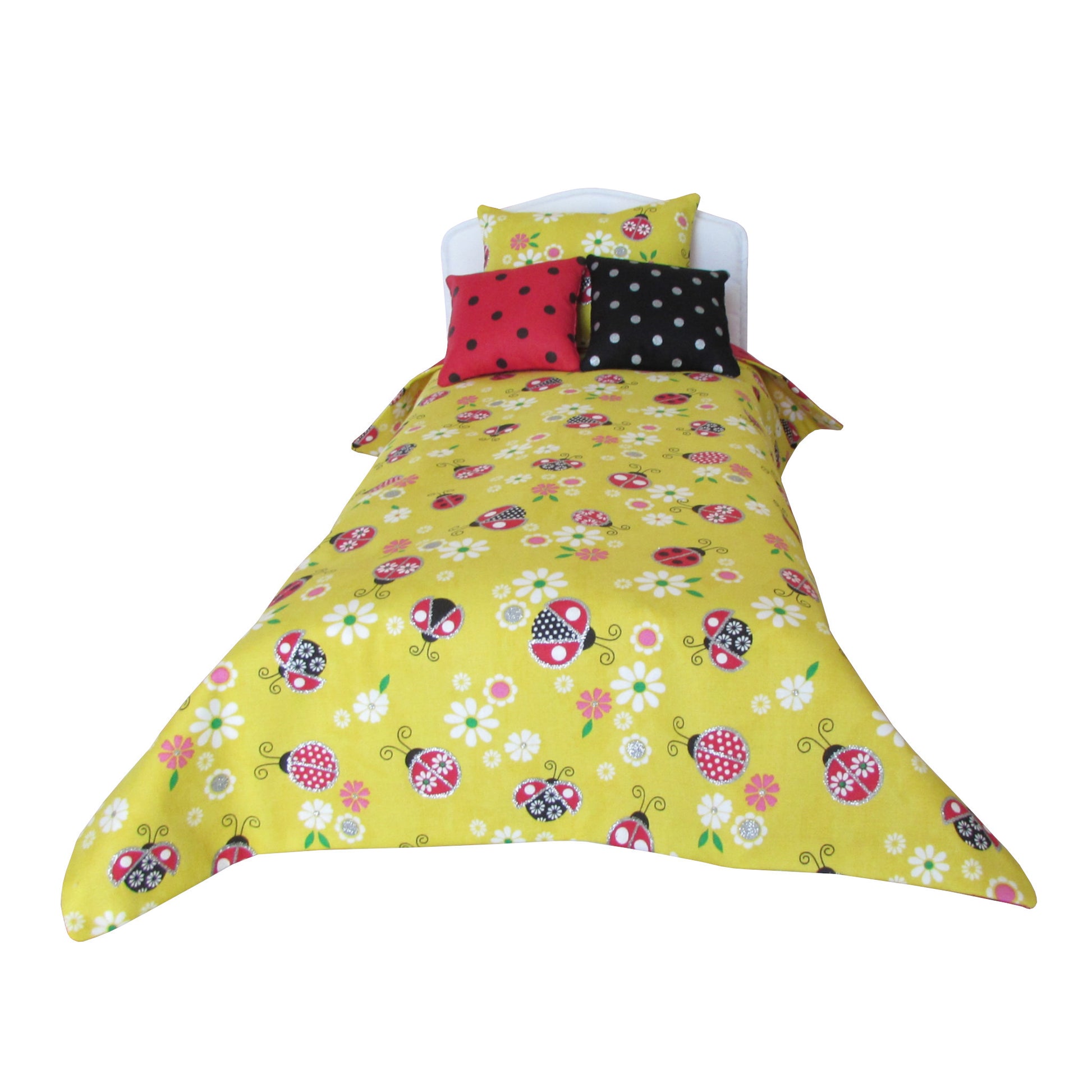 Yellow Floral Ladybug Black Dot Red Print Doll Bedding for 14 1/2-inch dolls